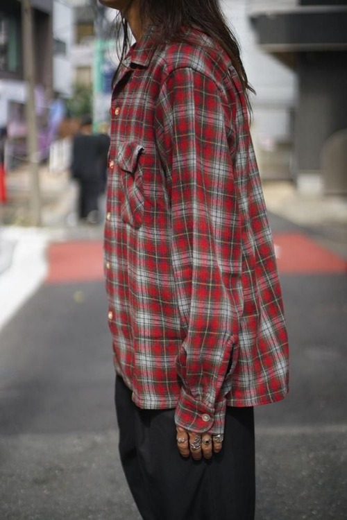 The retro check pattern creates a great atmosphere, and while it can be worn loosely and casually, the muted colouring unique to vintage items gives it a heavy feel.