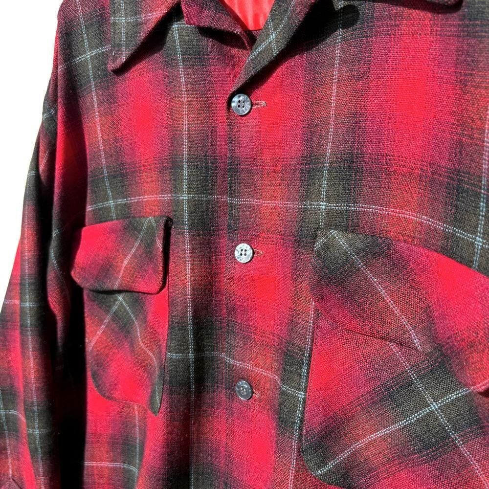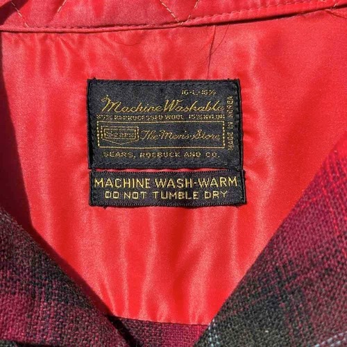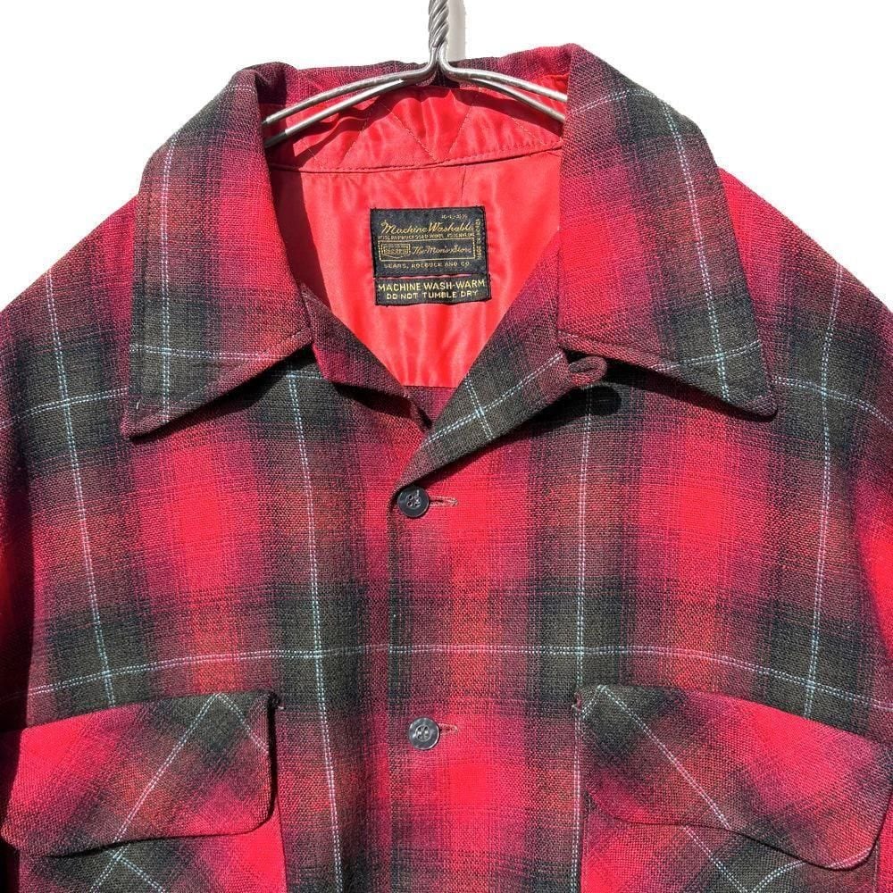 This is a vintage open-collar wool shirt made by Sears circa 1970s.