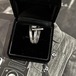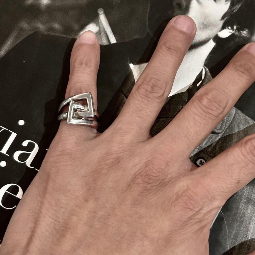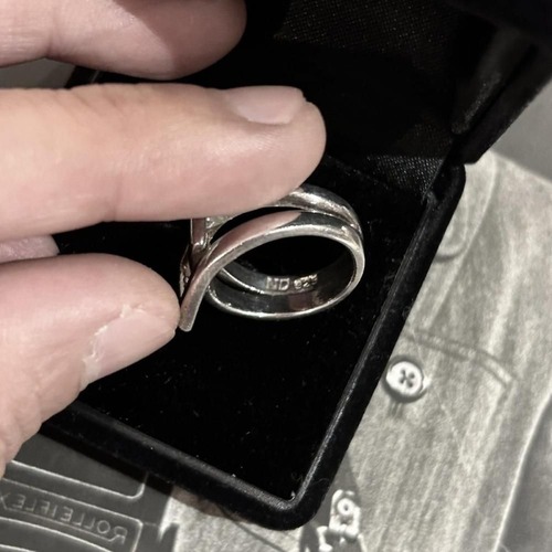 This vintage ring likely dates back to the 1980s. It features a minimalist design, with square rings at the ends forming an infinity-like structure. The small silhouette adds a touch of elegance. It is stamped ND (probably made in Norway) 925. As this is a vintage item, there may be some wear and tear. Please review the photos and understand the characteristics of vintage and antique pieces before purchasing.