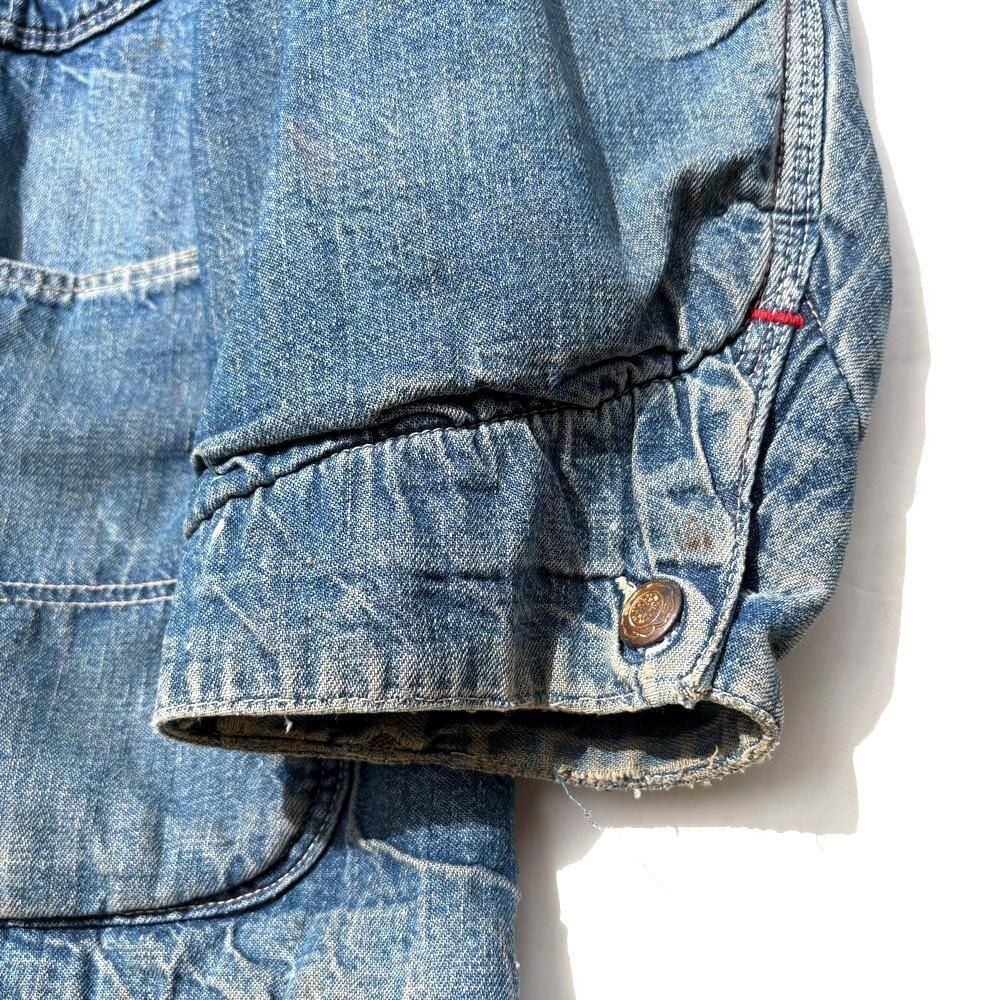 It has a unique texture and unevenness, as well as the beautiful vertical fading of genuine indigo that is unique to vintage items, and the tasteful repair marks and aging that come with age that are unique to antiques give it a one-of-a-kind presence.
