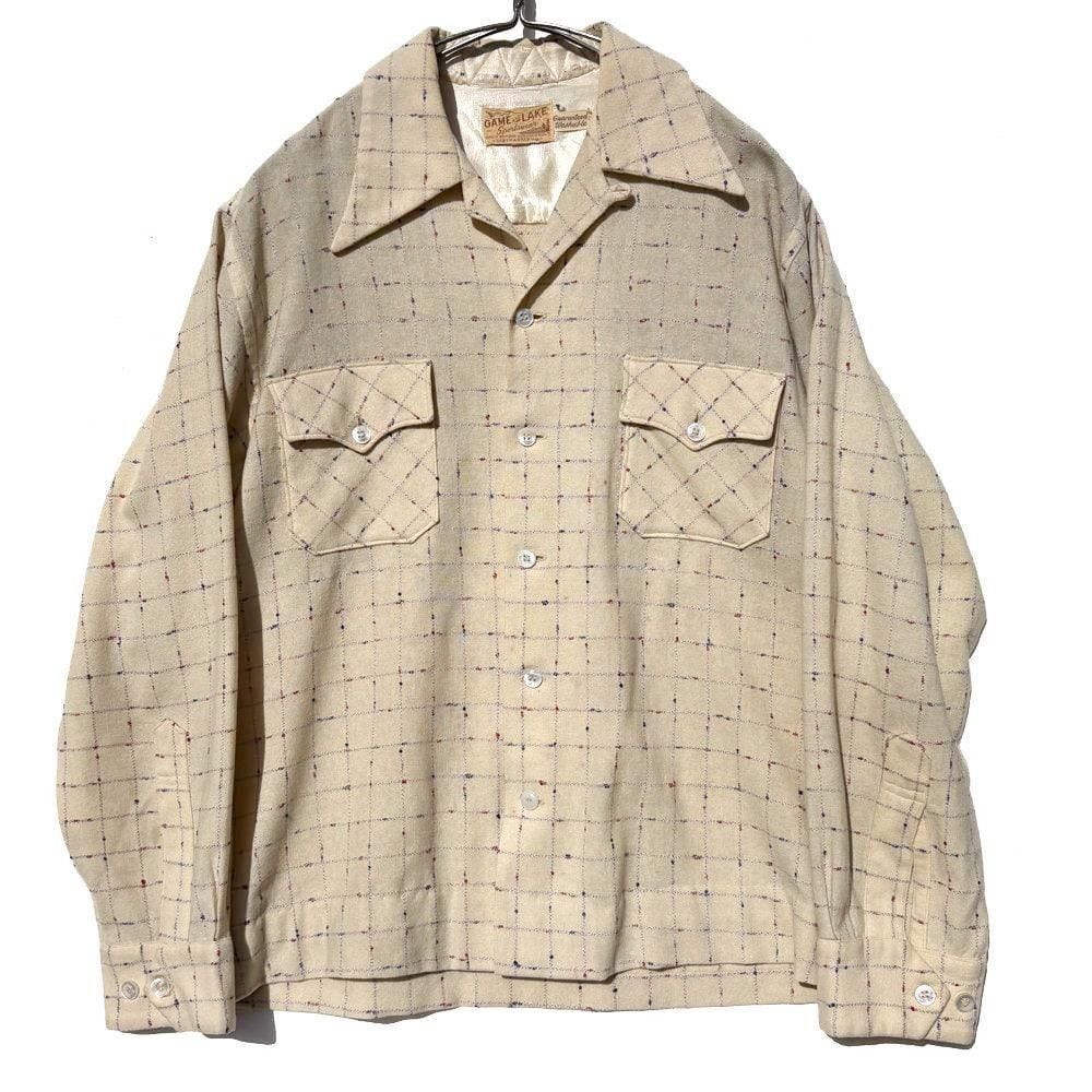 This is a vintage open-collar wool shirt made by GAME AND LAKE around the 1940s.