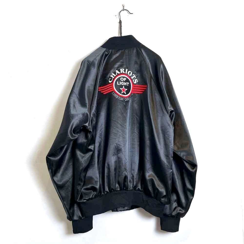 90s Chariots of Light Christian car club jacket. Easy to match with black nylon satin, the club logo embroidered on it creates a great look.