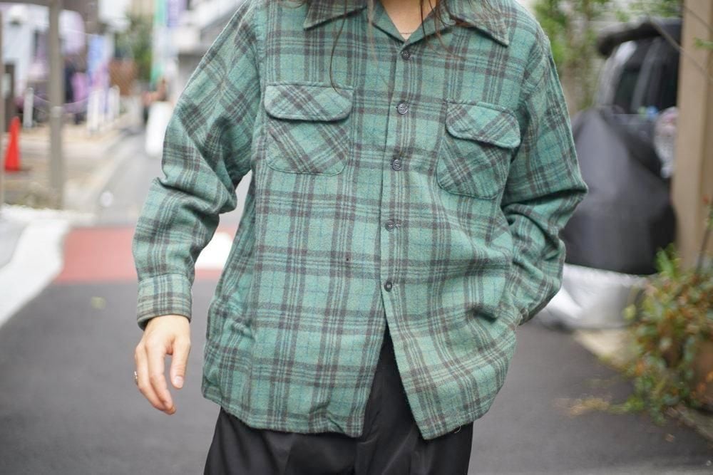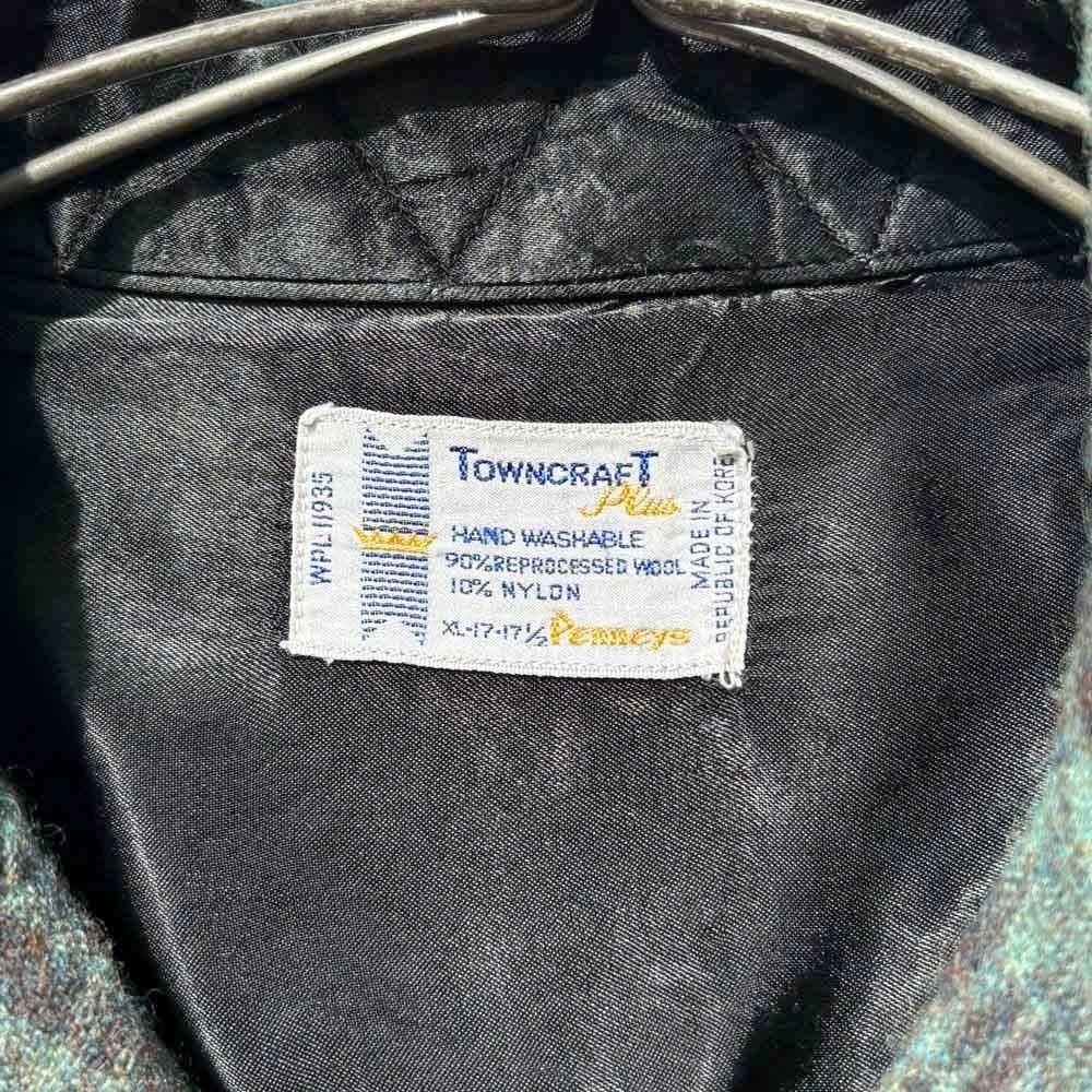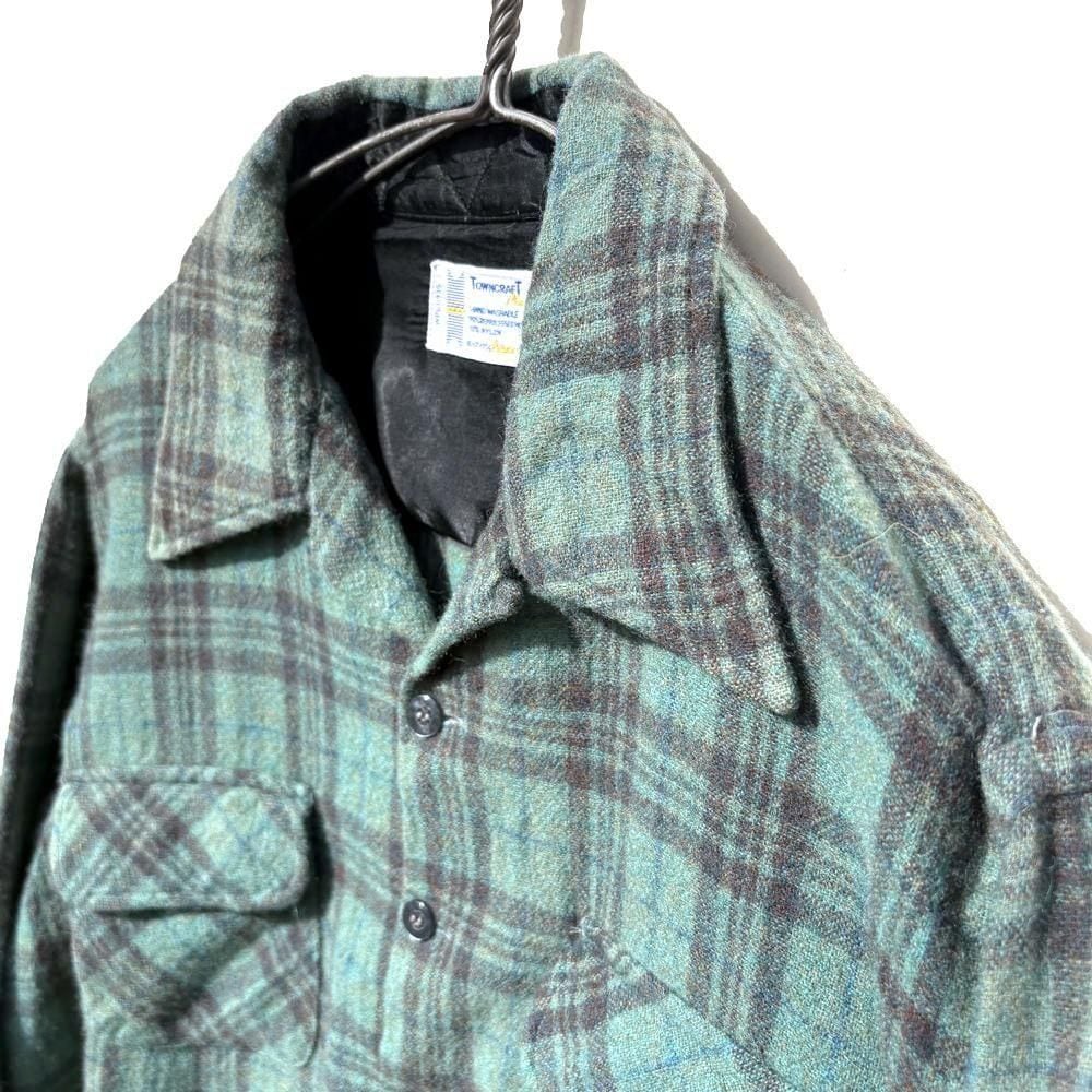 This is a vintage open-collar wool shirt made by TOWNCRAFT around the 1970s.