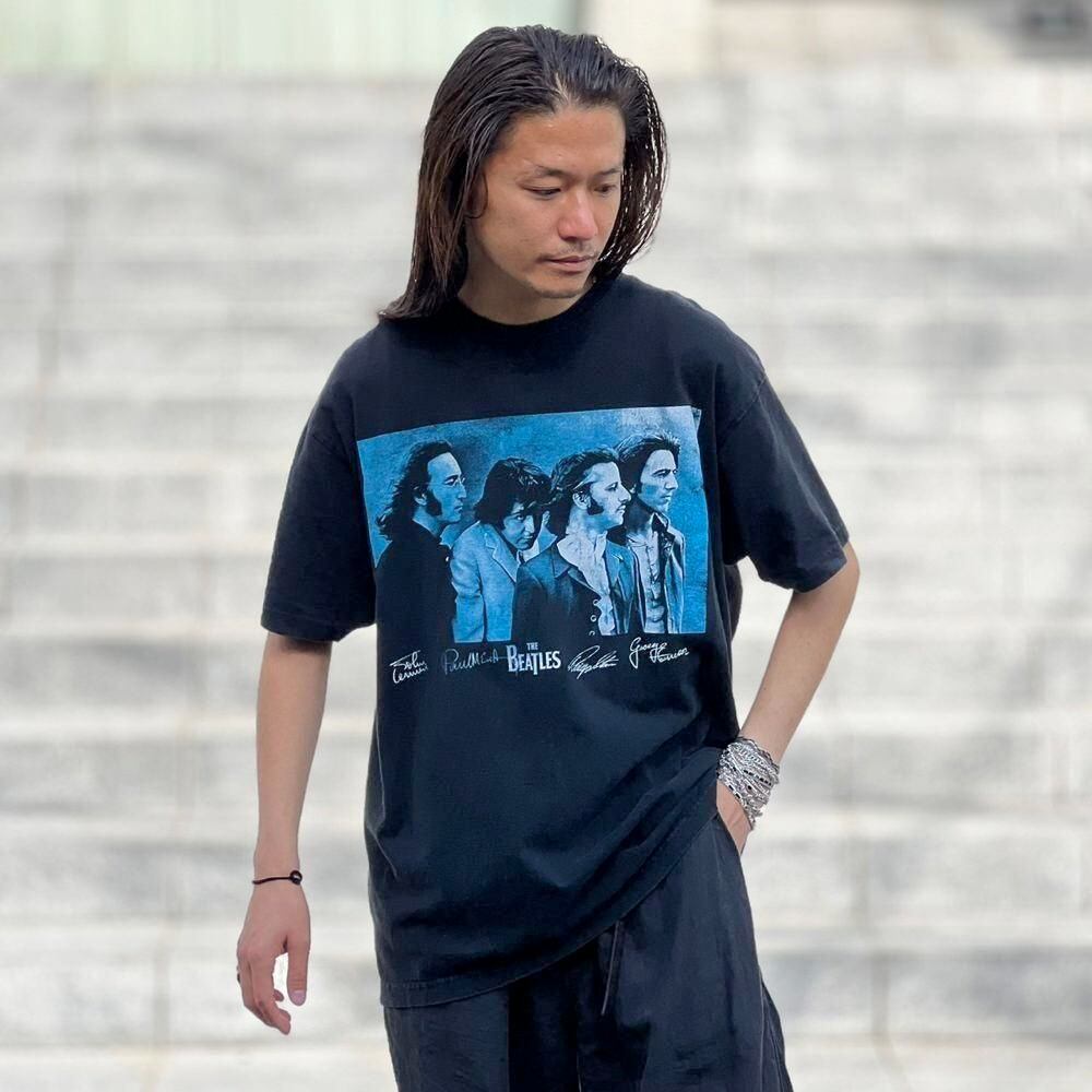 This Beatles photo print T-shirt from the 1990s-2000s features a nicely faded black color with a blue sepia photo print. The signatures of each member are also printed in a nice design. While the size is unclear, it fits comfortably in a comfortable fit.