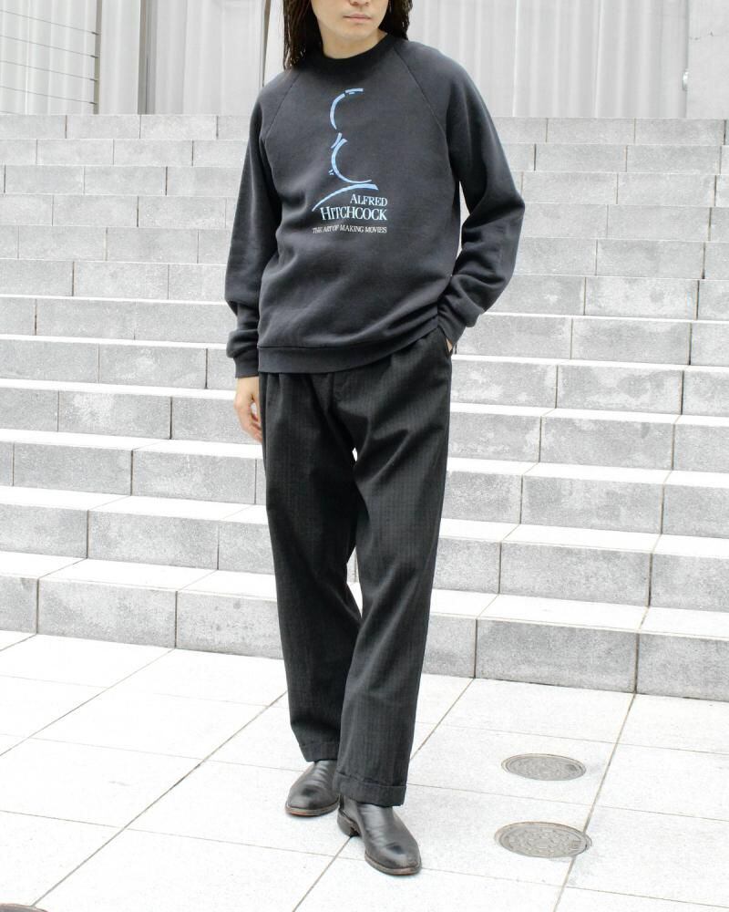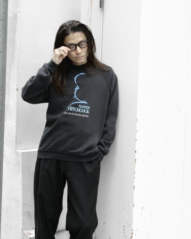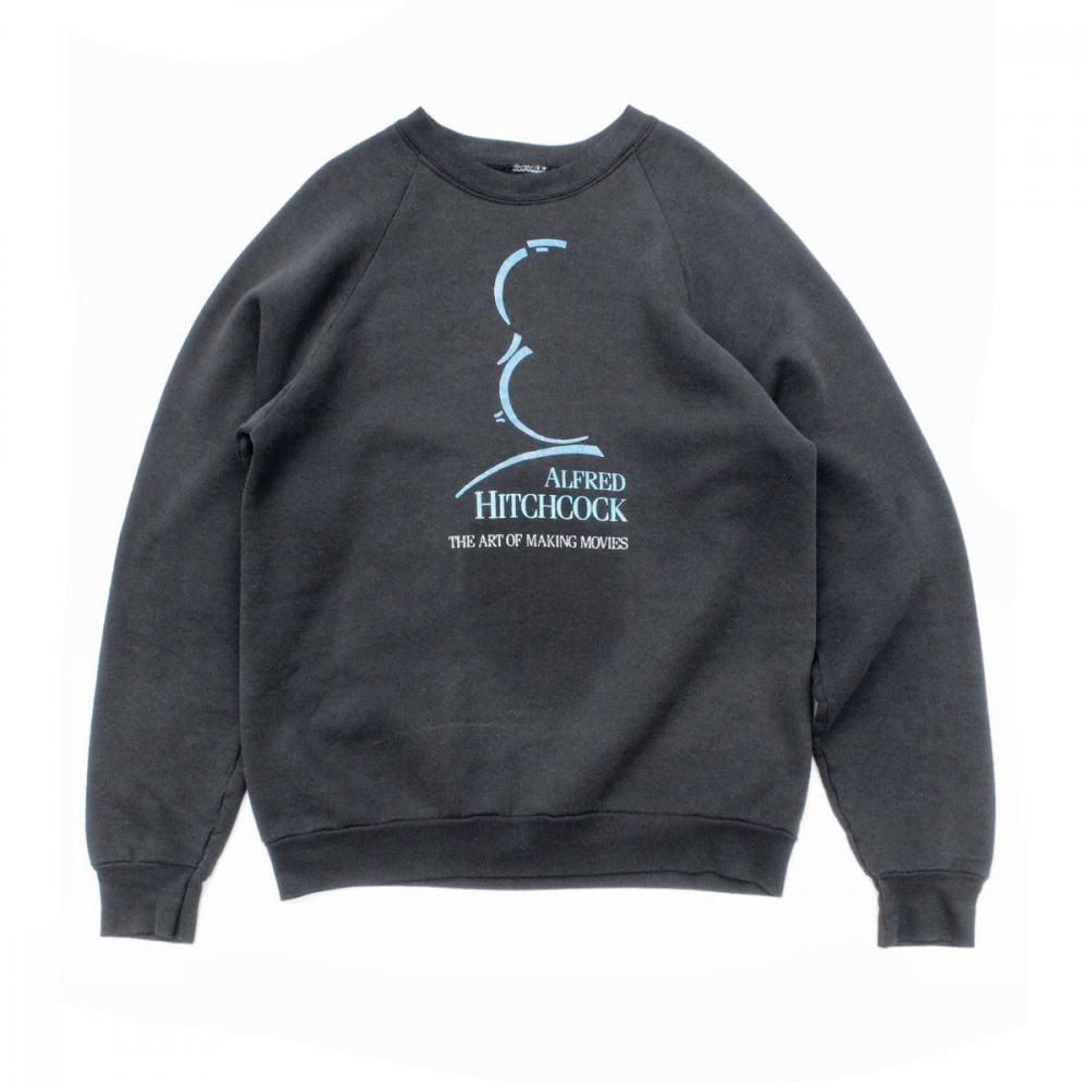 This 1990s souvenir sweatshirt commemorates 43 years of Universal Studios relationship with Hitchcock, both as an attraction and a film. This sweatshirt is extremely rare, featuring a 90s-inspired inky black body and a mint blue print for a minimalist yet striking design. It fits sizes L and up, offering a relaxed yet streamlined silhouette. As this is an old item, there may be some fading over time. Please review the photos and understand the unique characteristics of vintage items before purchasing.