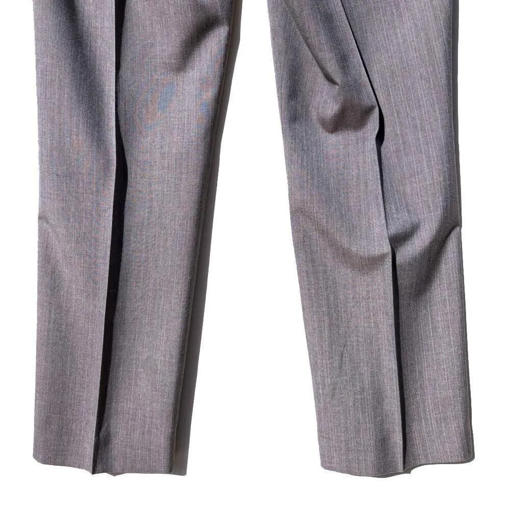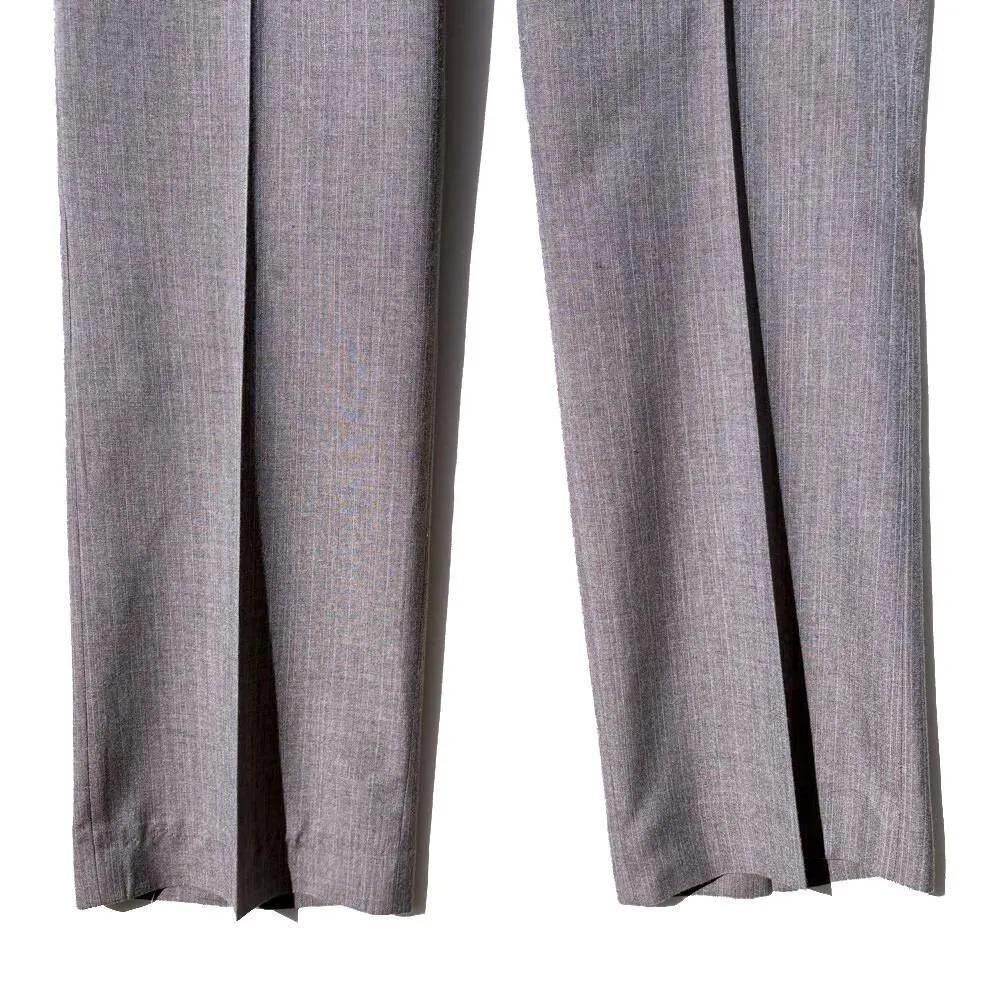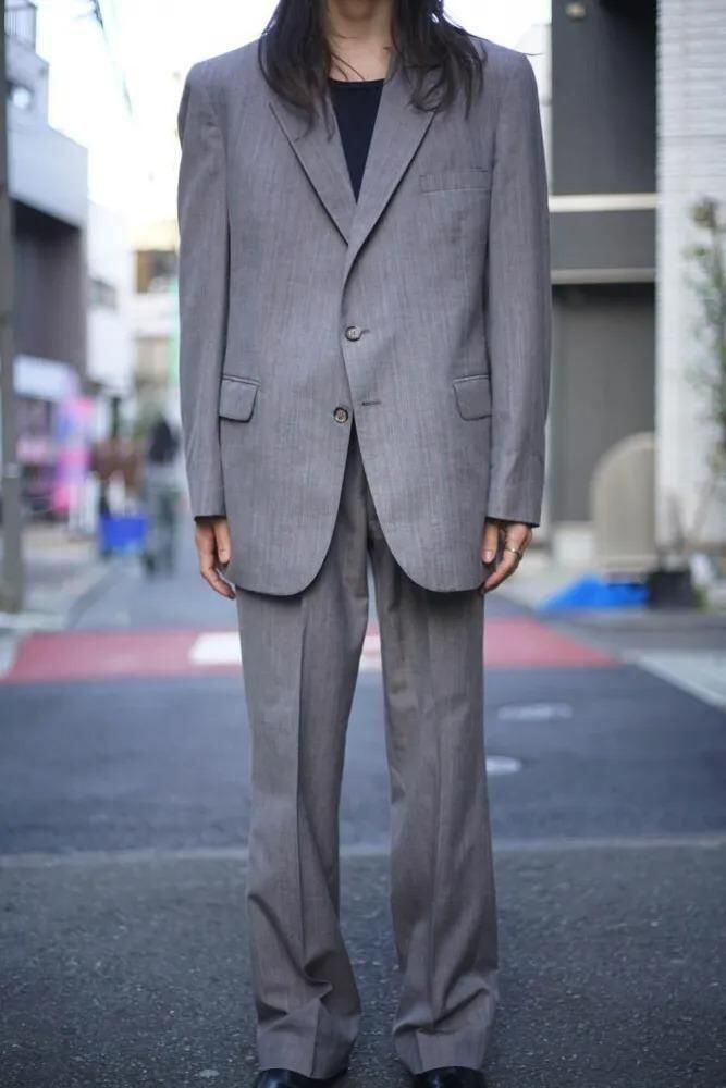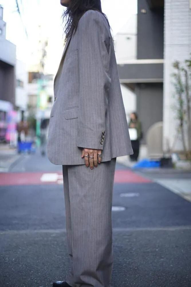 The jacket has two buttons for a vertical silhouette with just the right amount of shape, while the trousers have a straight silhouette with no pleats, creating a beautiful line that falls diagonally from the thighs, making the legs look long and beautiful.