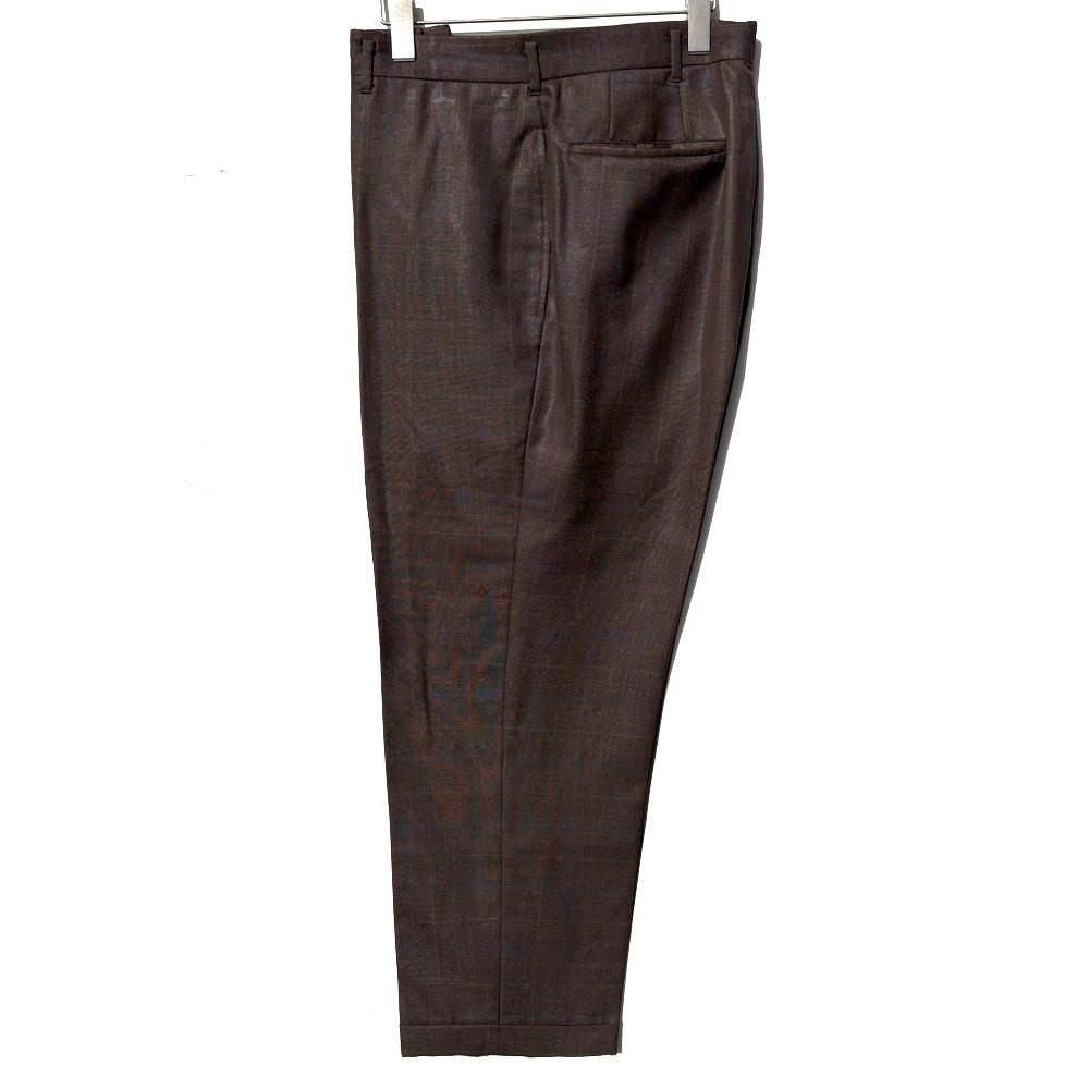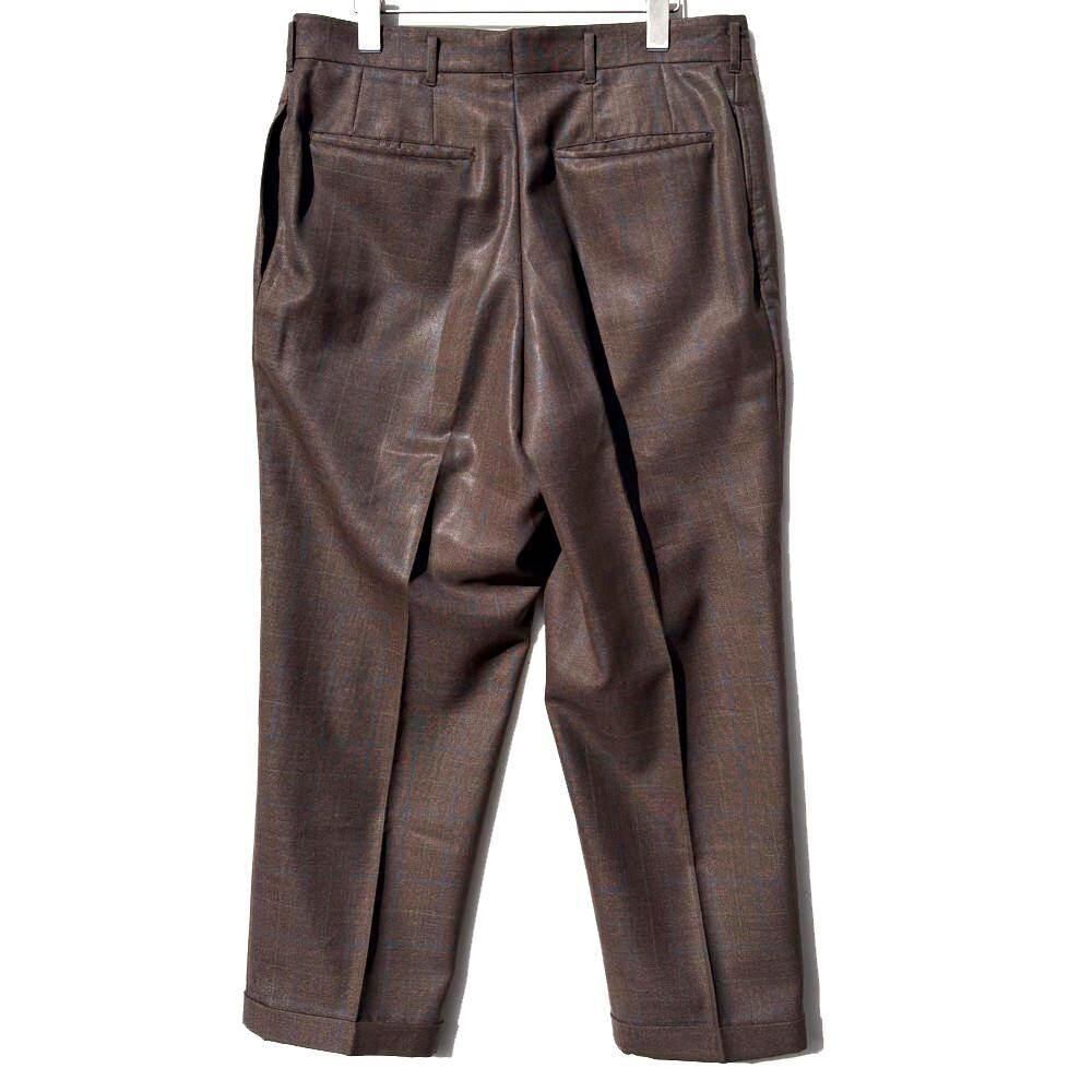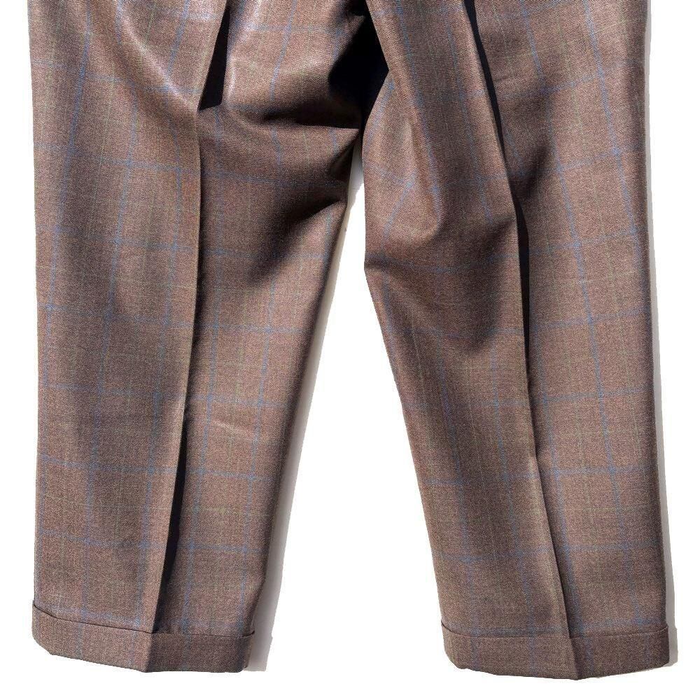The two-button design features voluminous lapels, a narrow V-zone, a center vent, and a shaped silhouette that retains the masculine feel of the time while also featuring soft lines that follow the shoulders.The trousers are no-tuck, giving a clean waistline, and the relaxed, straight silhouette gives it an American classic look.