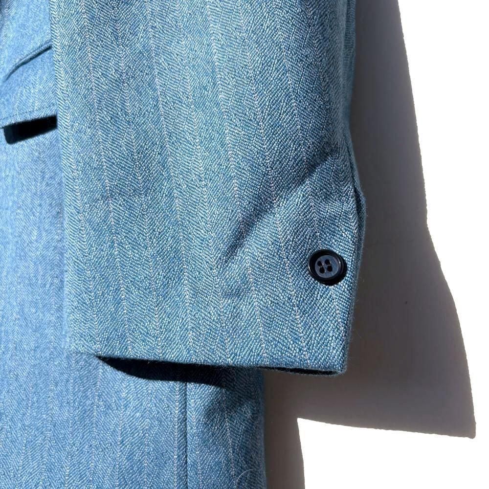 It is made of light wool fabric with a dry texture, and the faint stripes in the woven pattern give it an elegant impression.