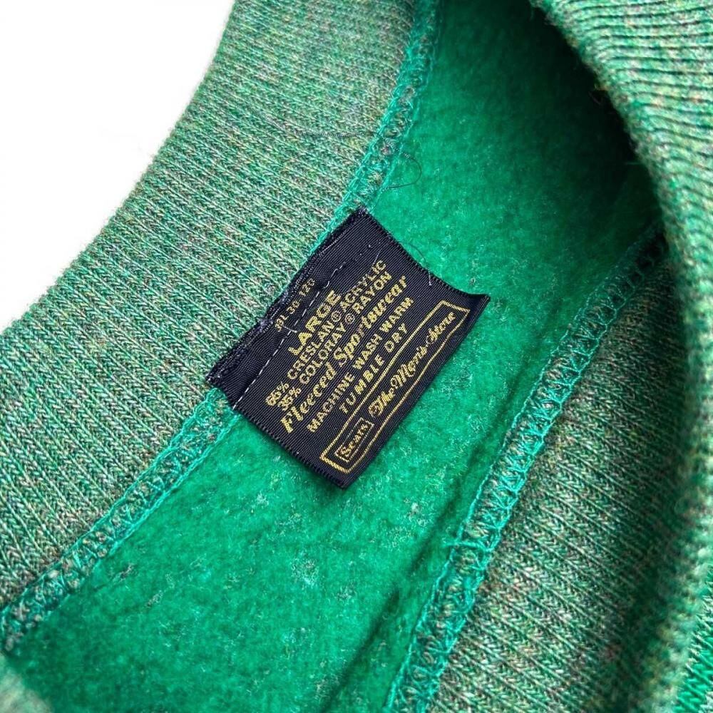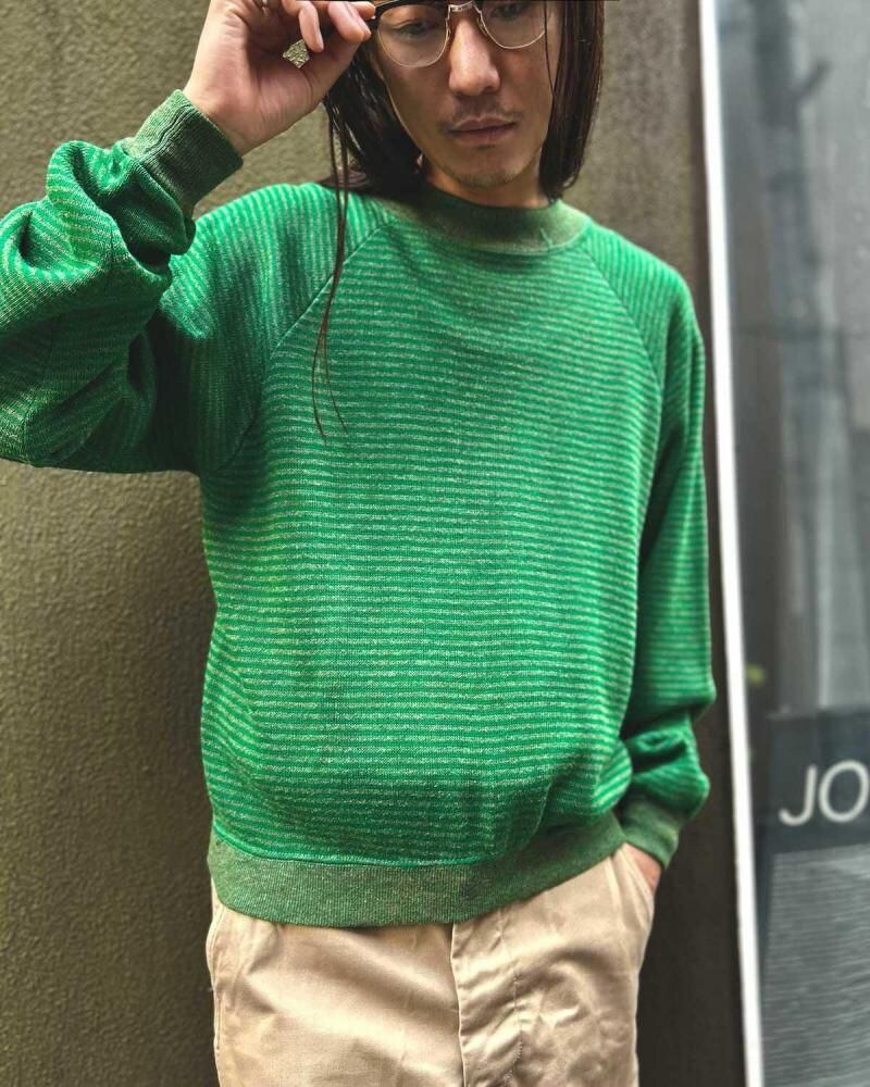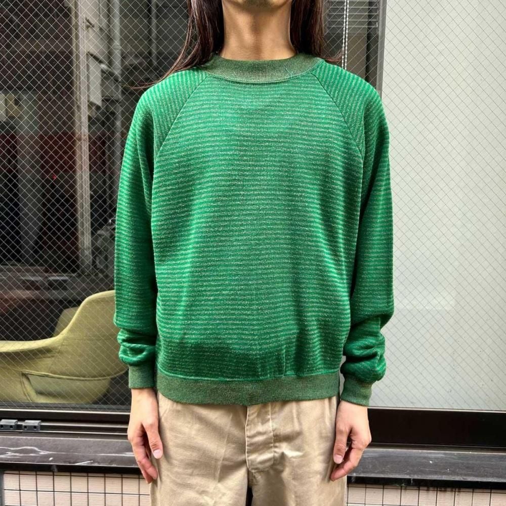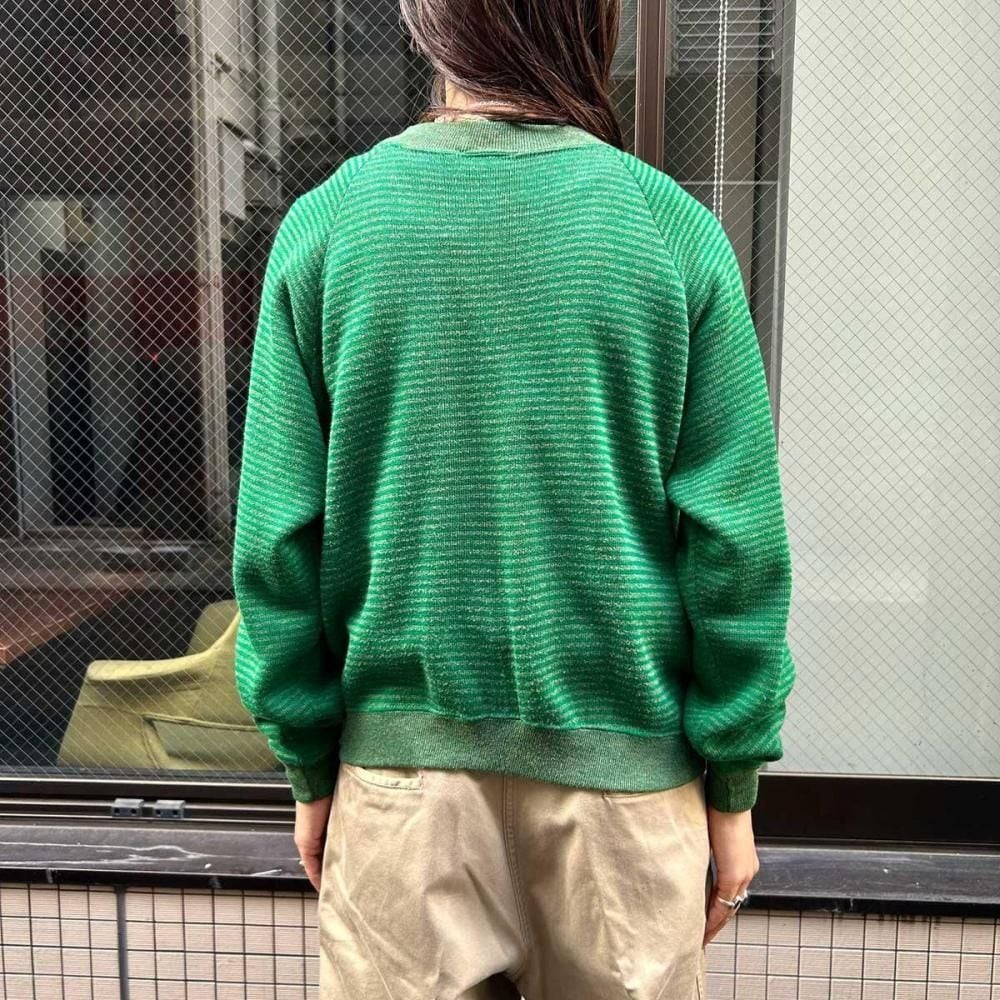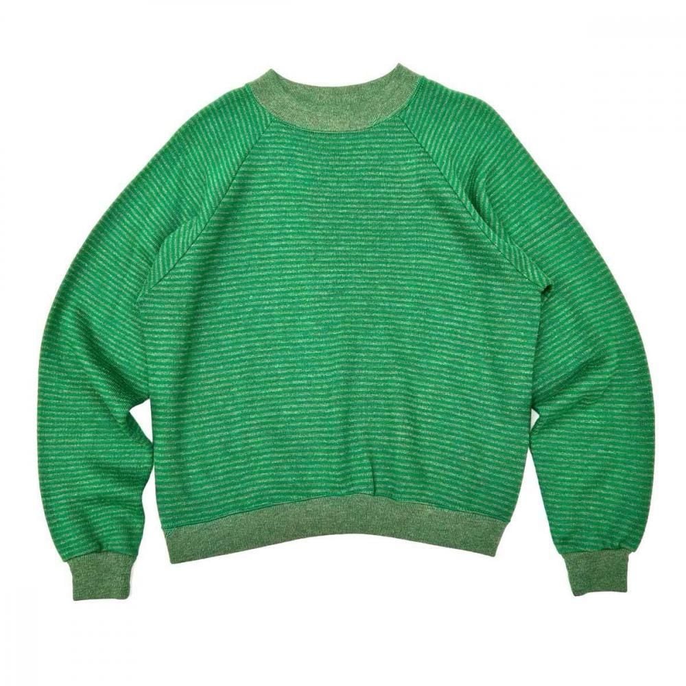 This is a Sears striped knit from the 1960s. Its soft acrylic/rayon body and delicate stripe pattern are characteristic of the retro 60s and 70s. The knitted surface and pile back create a design somewhere between a knit and a sweatshirt, and the ribbing, made with various colored yarns, adds depth to the design. While many of these are small, this one has a moderately relaxed silhouette. As this is an old item, there may be some fading over time. Please check the photos and understand the characteristics of vintage items before purchasing.