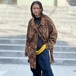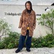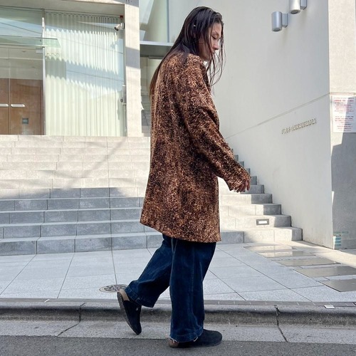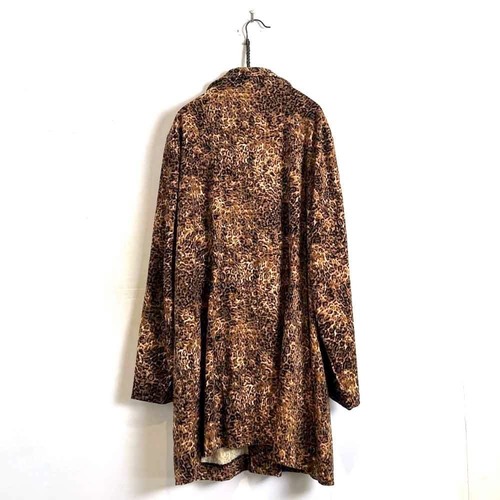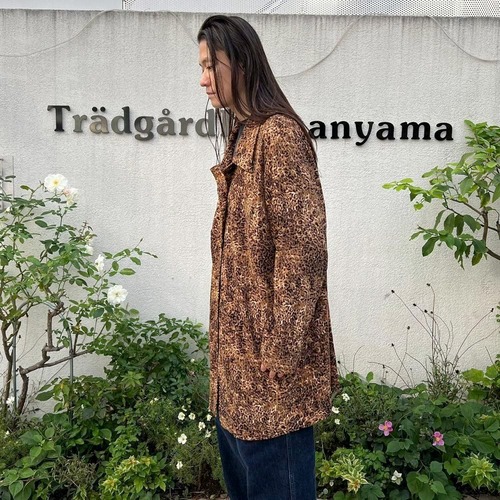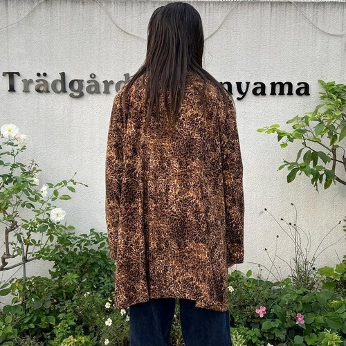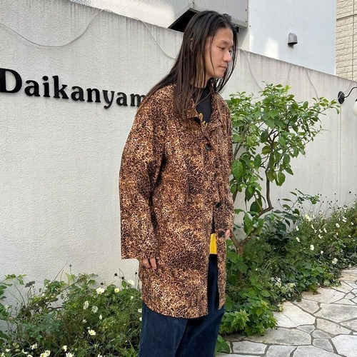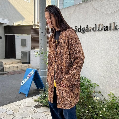 This leopard print shirt coat from the 90s is a popular item that has made a comeback this season. This loose-fitting coat is perfect for layering and is easy to wear. The polyester fabric is made of brushed peach skin for a smooth feel.