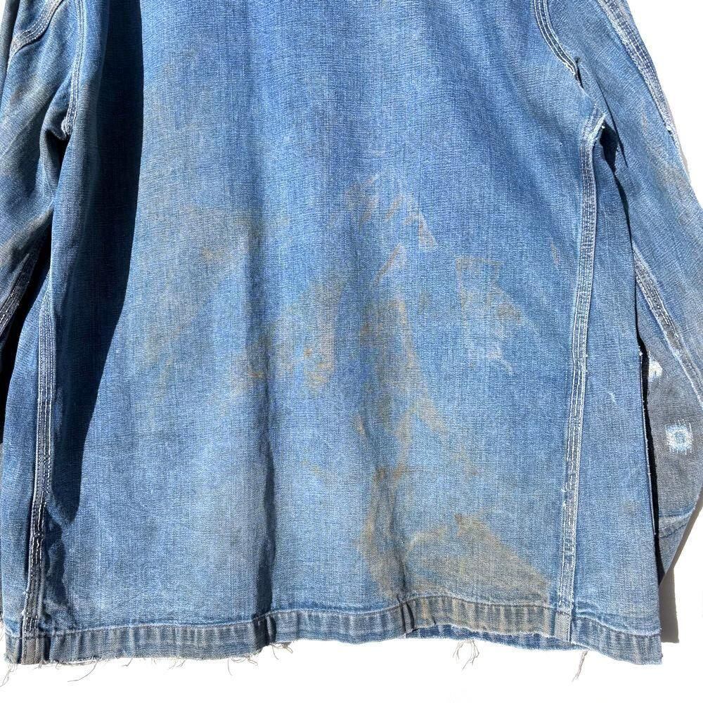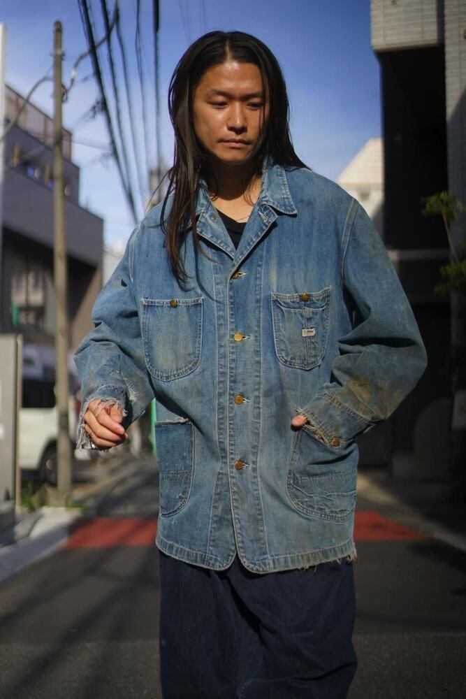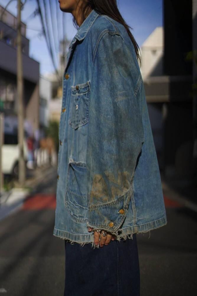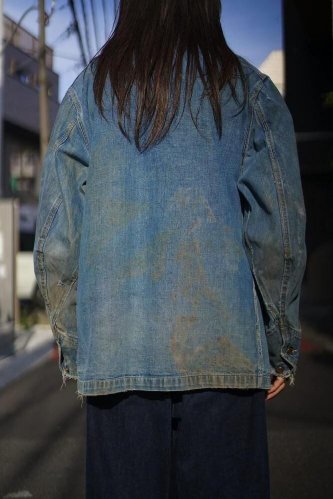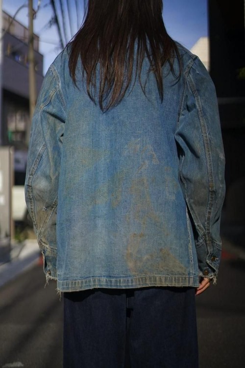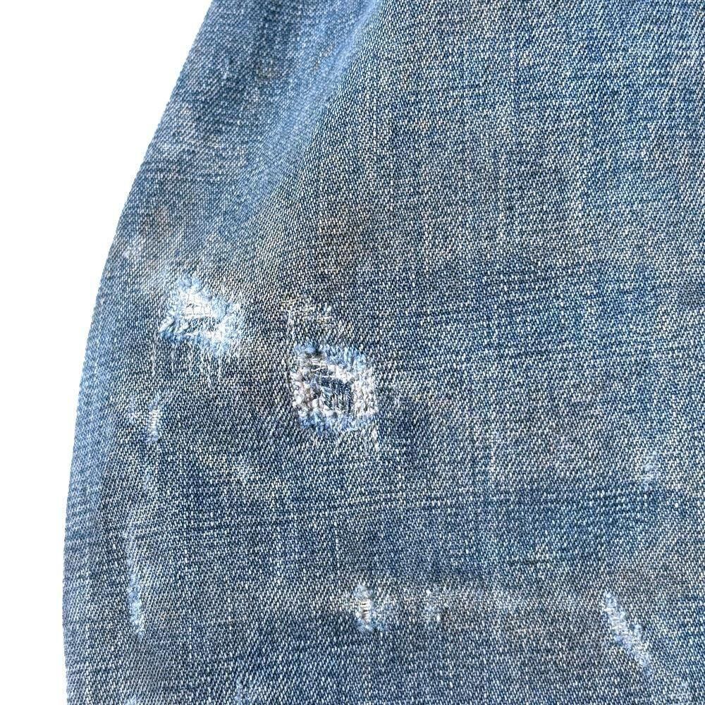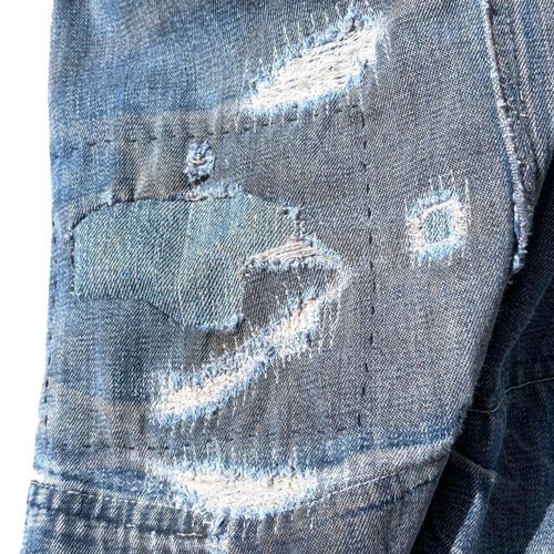 It has a unique texture and unevenness, as well as the beautiful vertical fading of genuine indigo that is unique to vintage items, and the tasteful repair marks and aging that comes with age give it a one-of-a-kind presence.