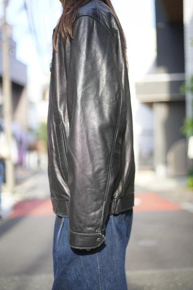 The simple, minimalist design creates a luxurious atmosphere, with a moderately loose silhouette and softly falling shoulder lines, giving it a relaxed and light impression without compromising the weightiness of the leather.