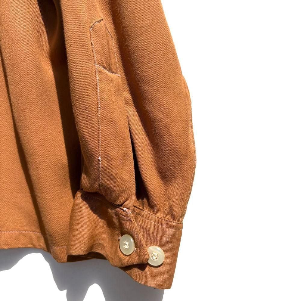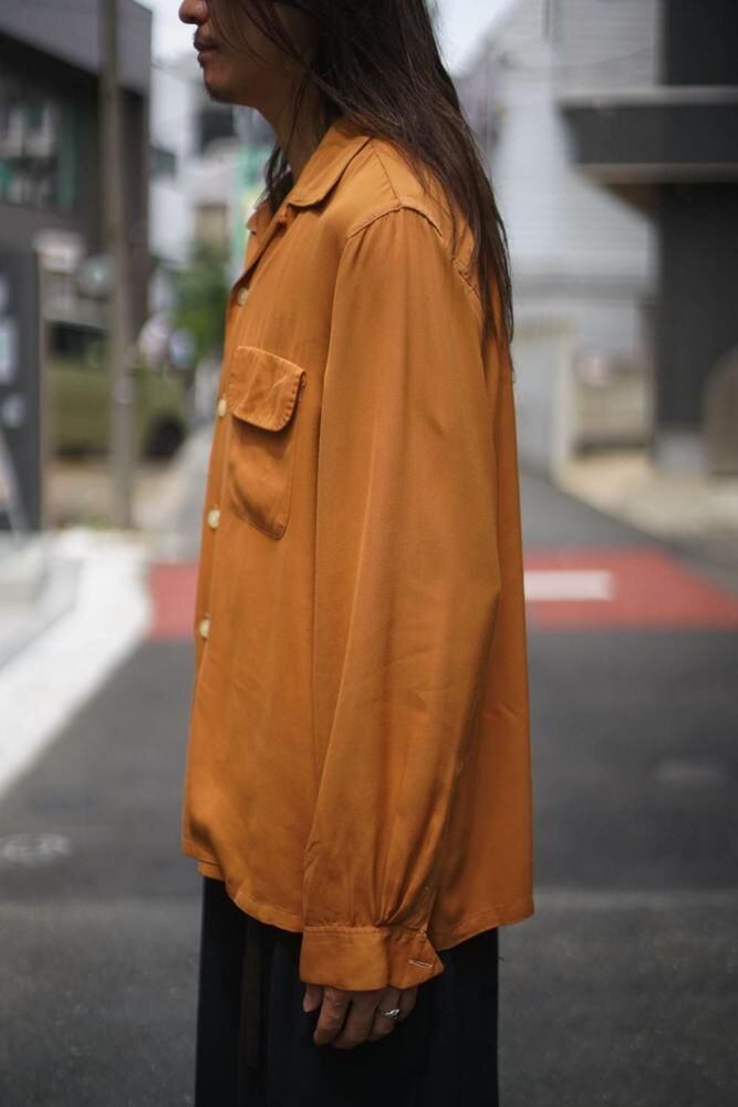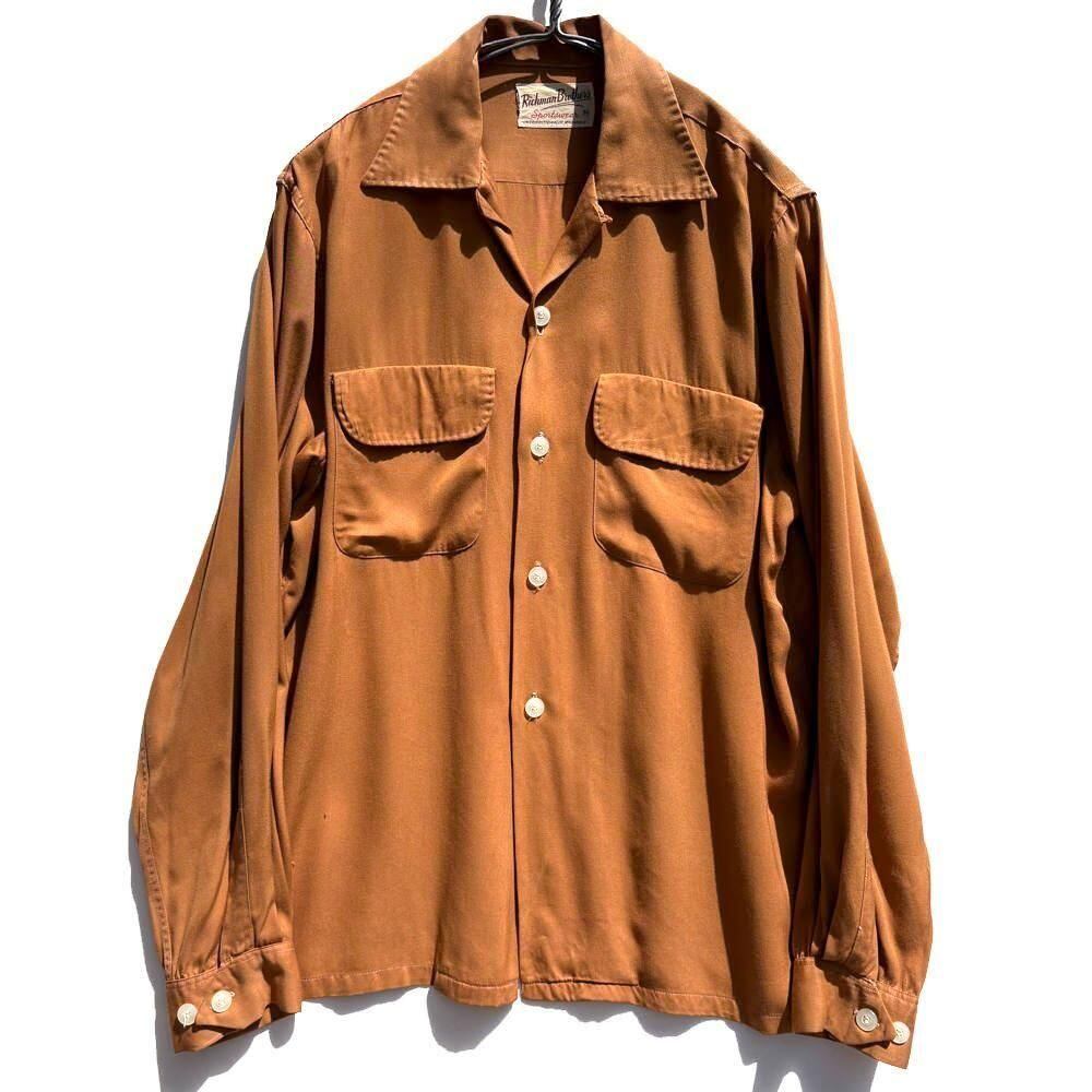 This is an open-collar rayon shirt made by Richman Brothers around the 1950s.