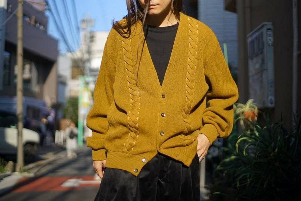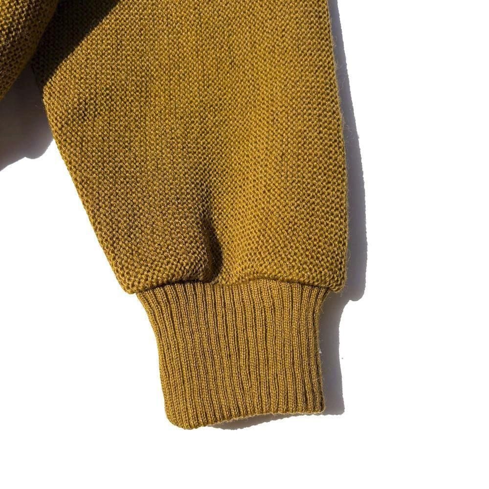 The narrow V-zone is a classic design reminiscent of the 60s, and it is knitted with medium-weight, sturdy wool yarn, giving it the feel of a lettered cardigan, and the texture will become softer and smoother with age.