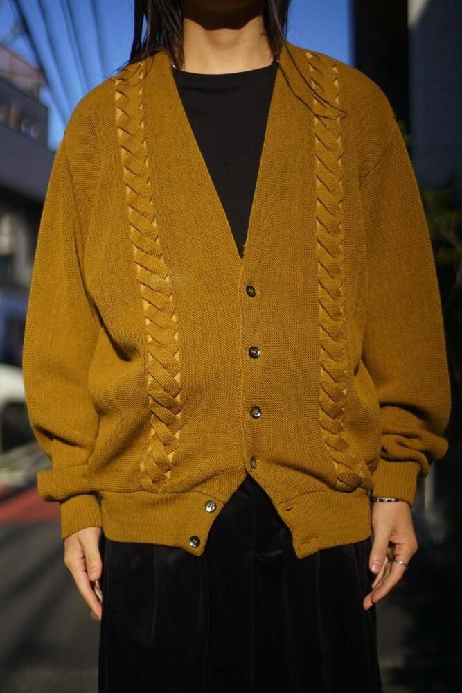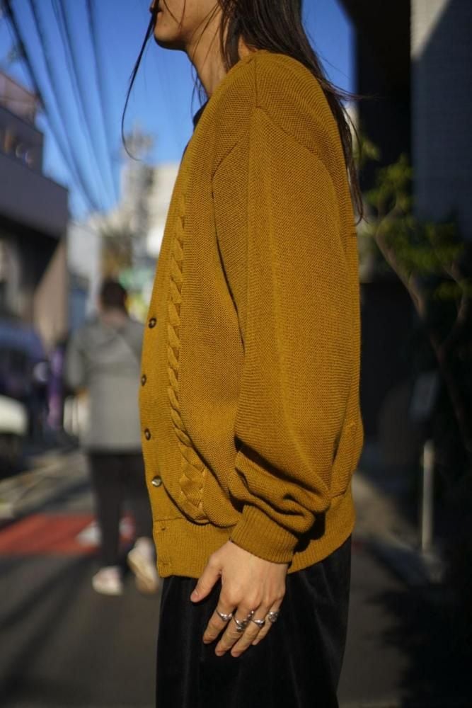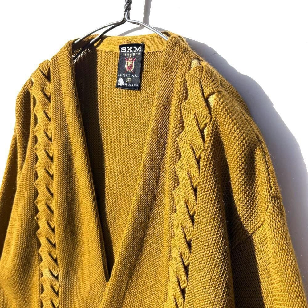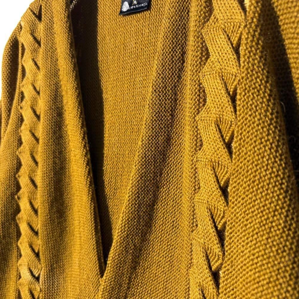 The vintage-like muted mustard color gives it an elegant look, and the contrasting cable knit is the highlight.