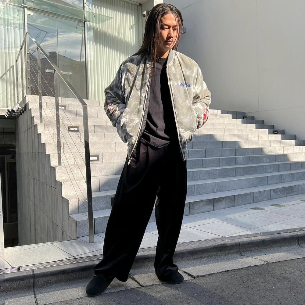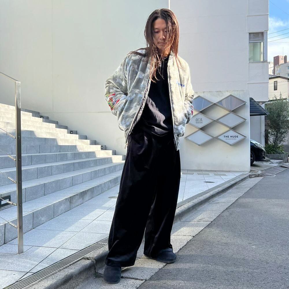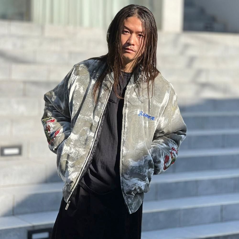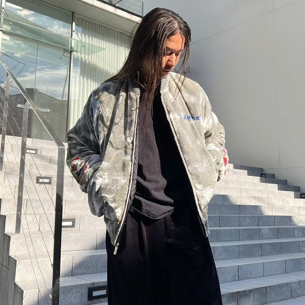 This 1980s Oregon velvet souvenir jacket features a striking silver-gray color and dragon embroidery on both sleeves and back. Its relaxed fit makes it a vintage souvenir jacket.