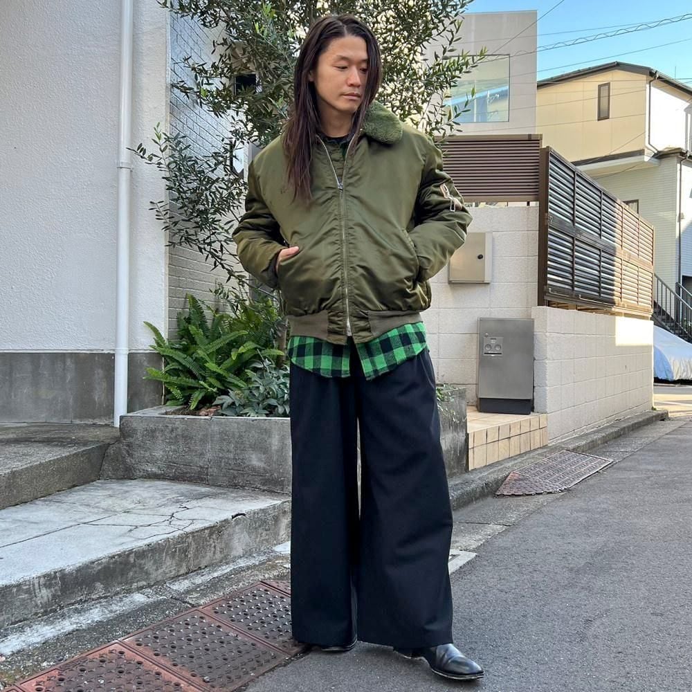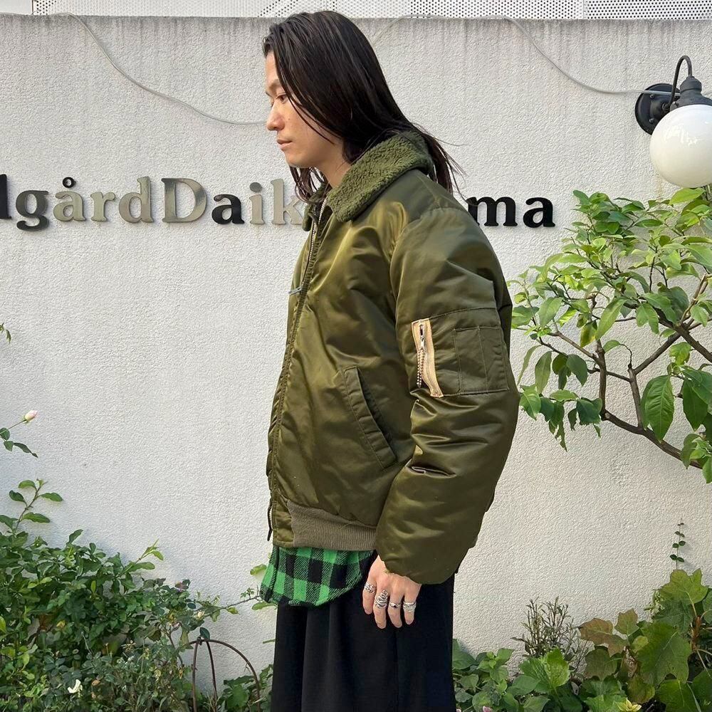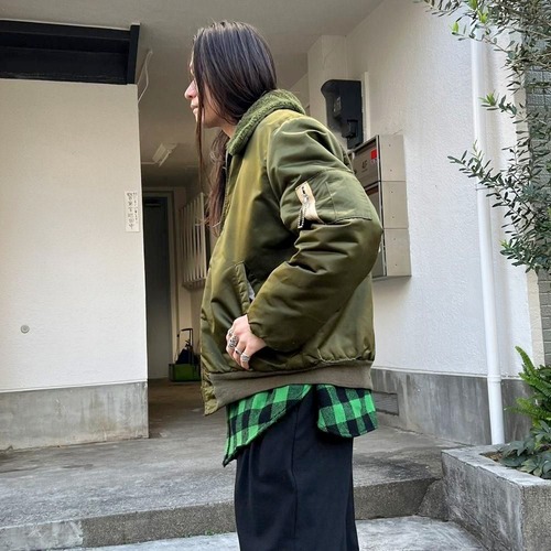 This vintage B-15 flight jacket from the 60s and 70s is crafted from a vibrant olive-colored nylon satin fabric with a masculine boa collar. Its a comfortable fit and comfortable silhouette, a rare find for a vintage flight jacket. Its also well-padded for excellent cold protection.