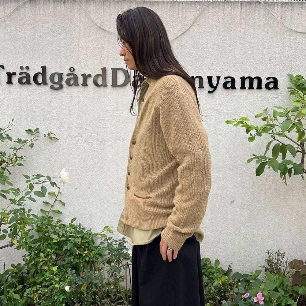 This 1960s golf cardigan features a tasteful beige colorway with subtle hints of pink and green. The knit is striped and the pockets feature leather piping, creating a stylish design. While golf cardigans tend to be slim-fitting, this one has a comfortable, relaxed fit.