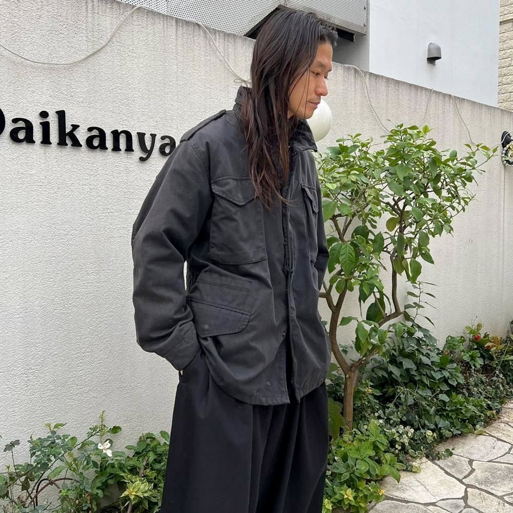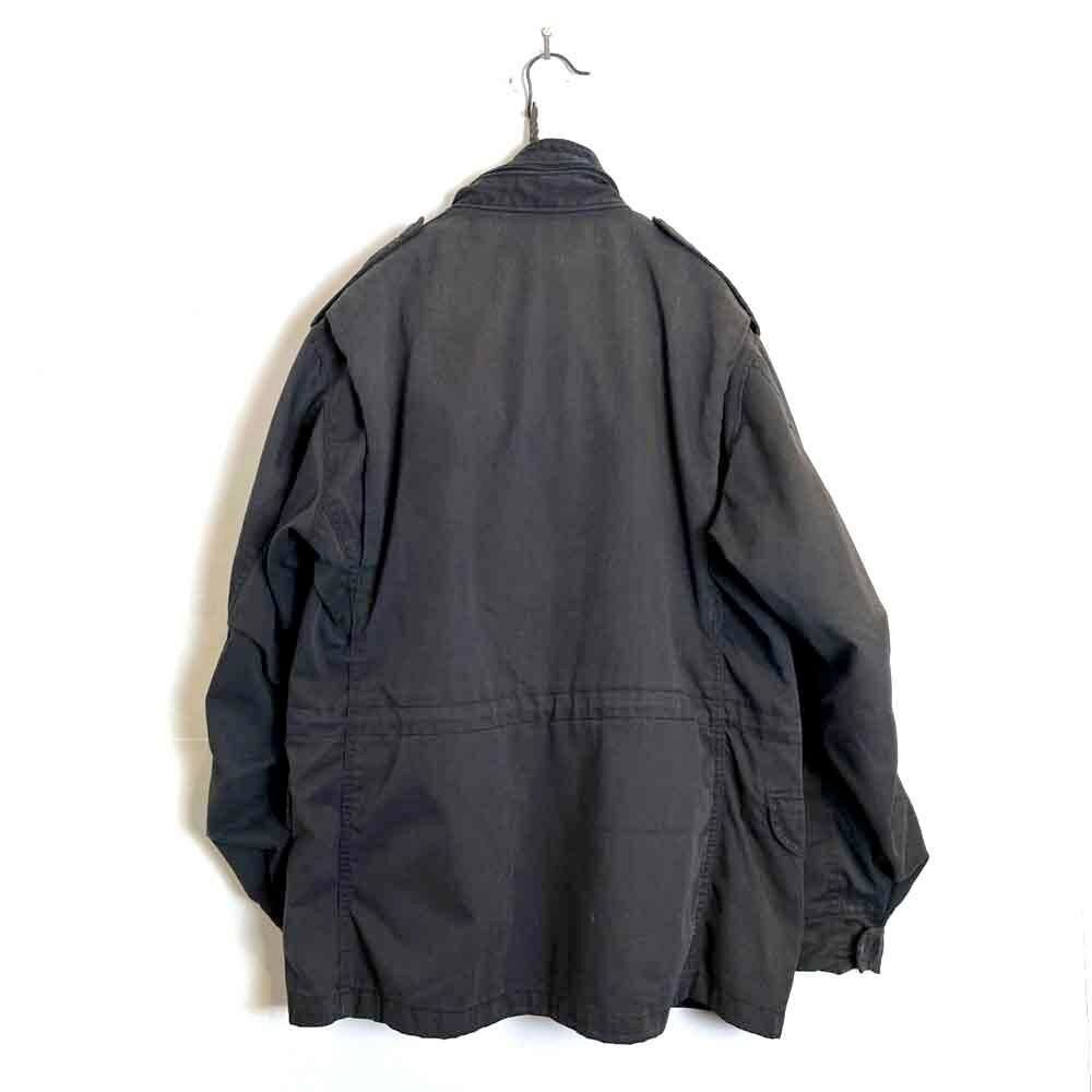 This M-65 jacket was made in 1993. The black color has faded to a darker shade over time, giving it a sophisticated look. Its a comfortable fit and a good silhouette with just the right amount of room. Made from a 50/50 cotton/polyester blend, its a lightweight, comfortable classic military outerwear piece perfect for spring.