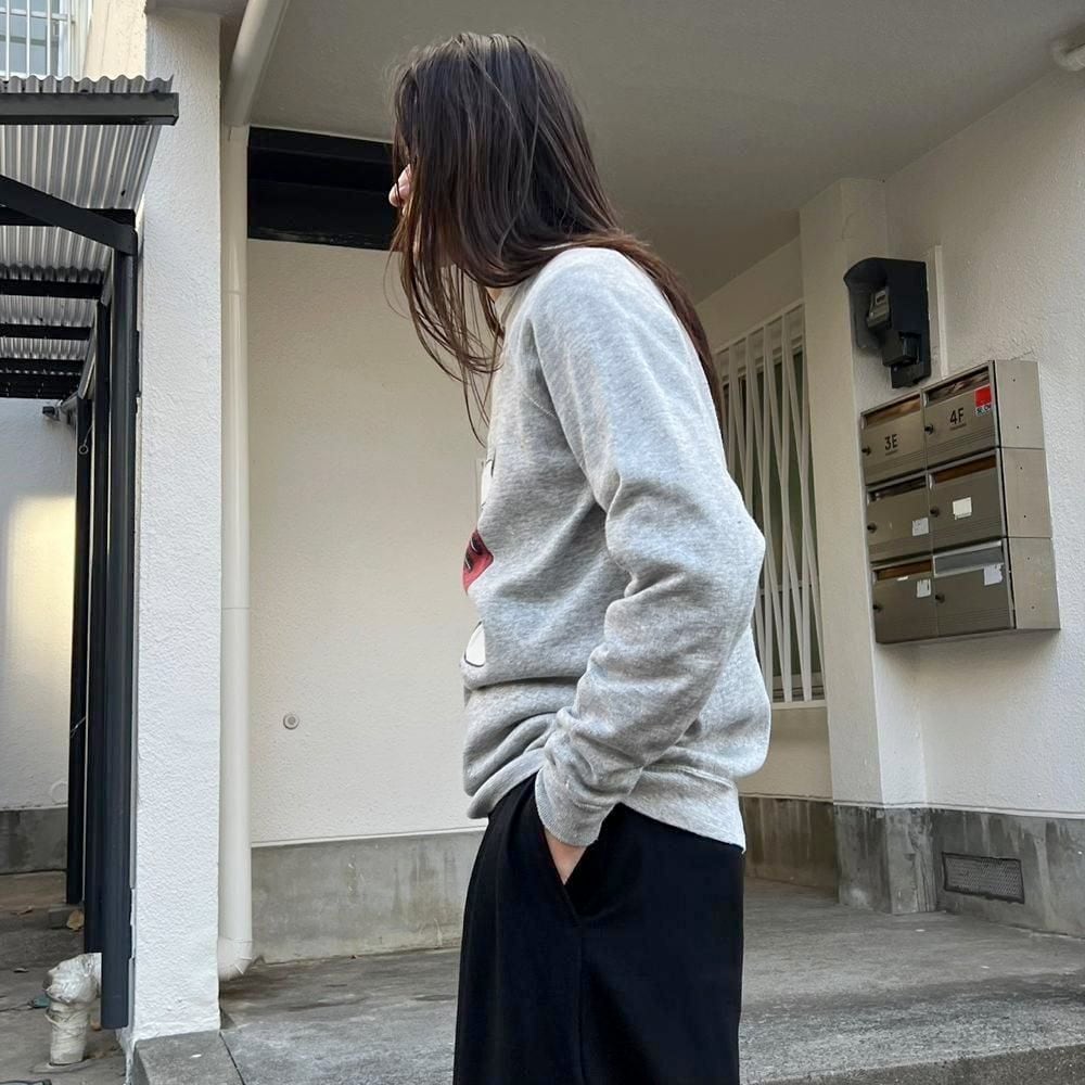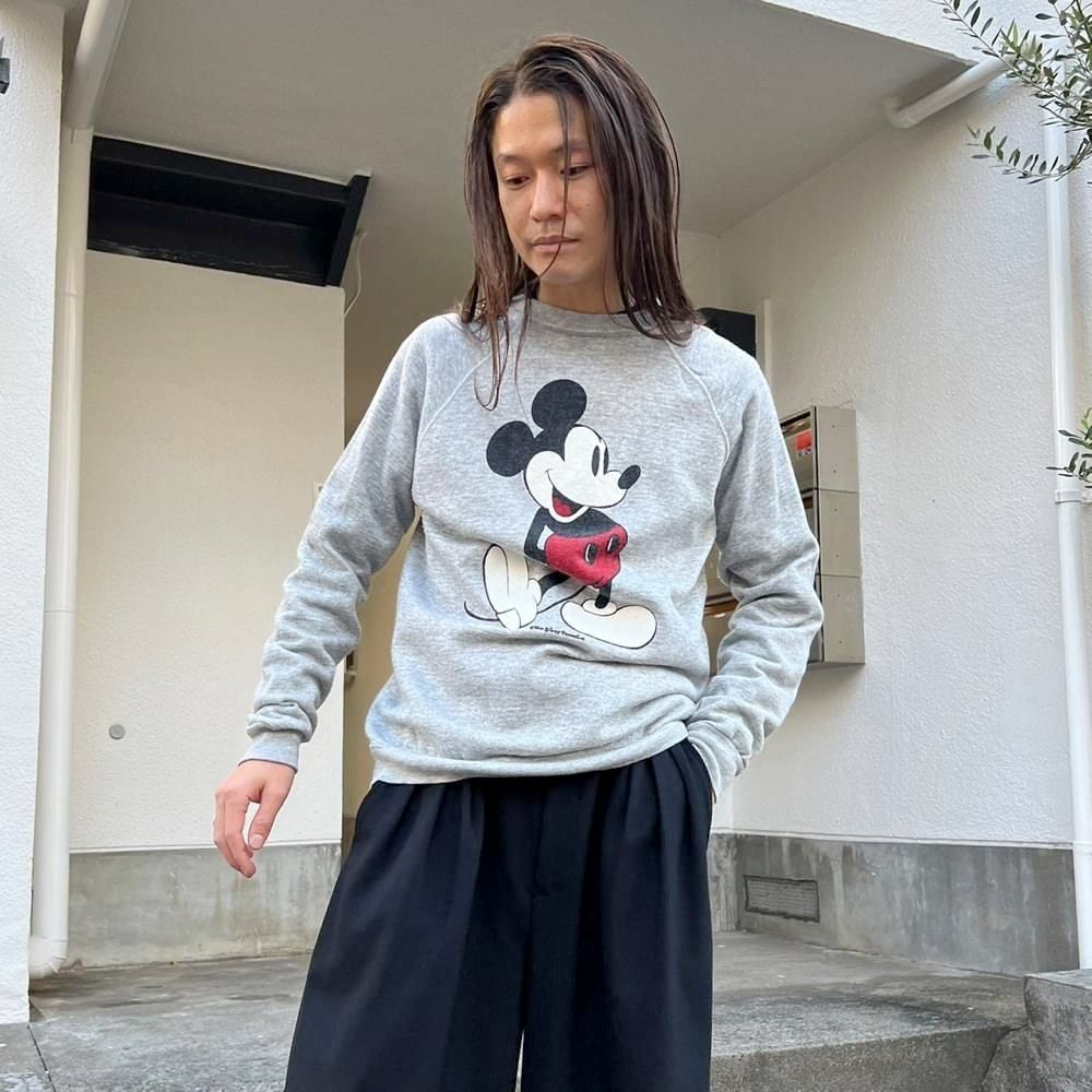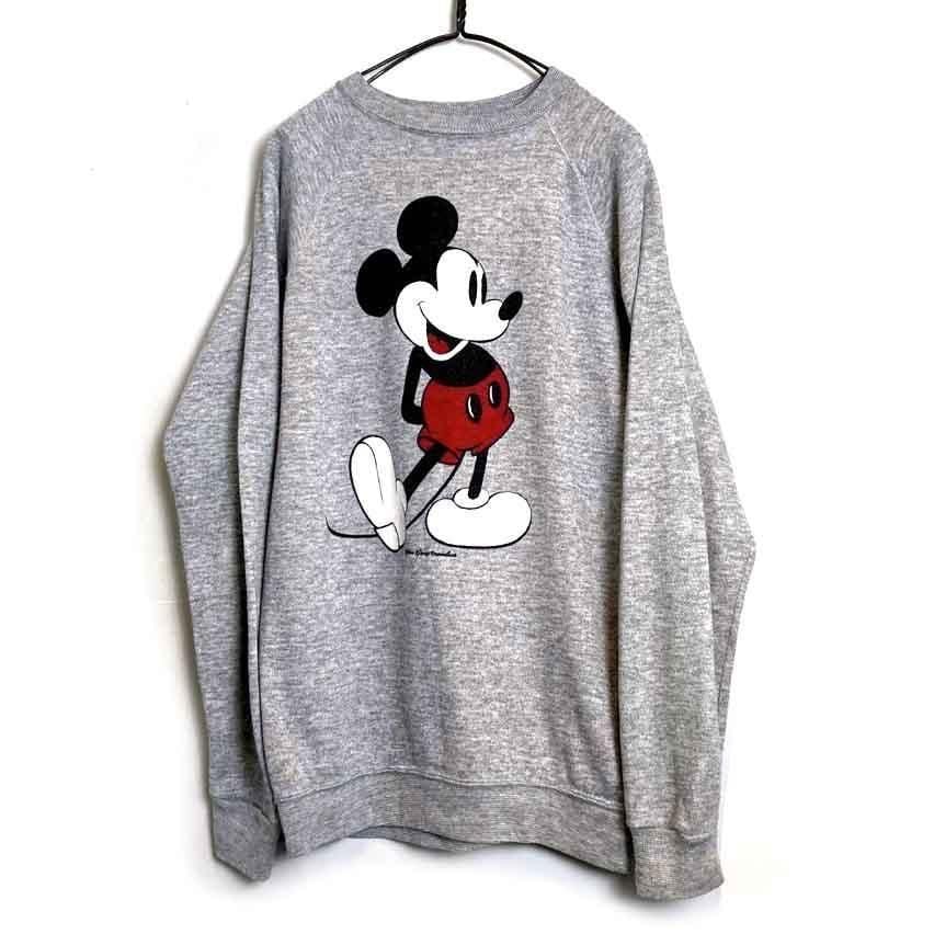 This is an official Disney Mickey Mouse sweatshirt from the 1980s. The fabric has thinned over the years, making it more like a long-sleeved T-shirt than a sweatshirt. Its lightweight and comfortable, and the size is listed as XL (kids size). Its a loose fit for a vintage Mickey Mouse sweatshirt.