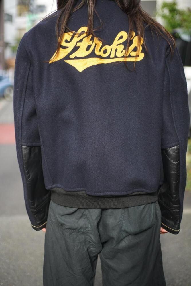 This zip-up type is rare for a varsity jacket, and has a silhouette that fits the body well.
