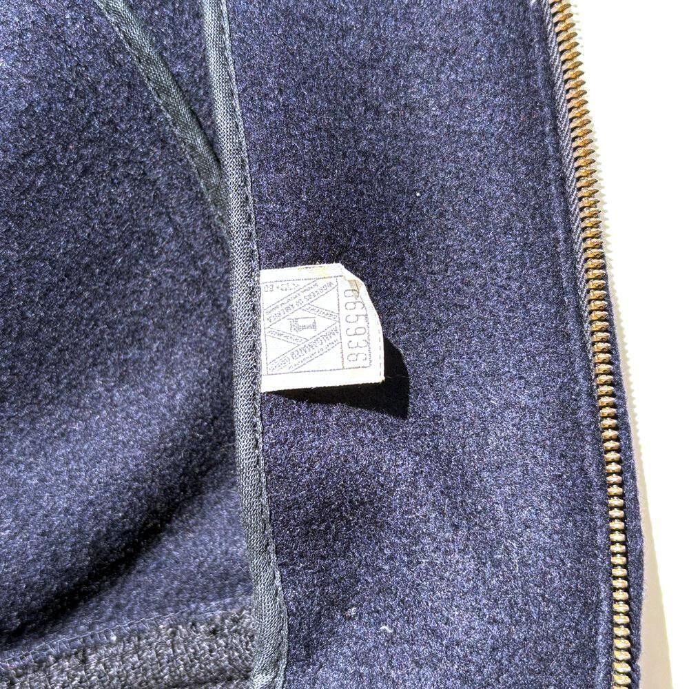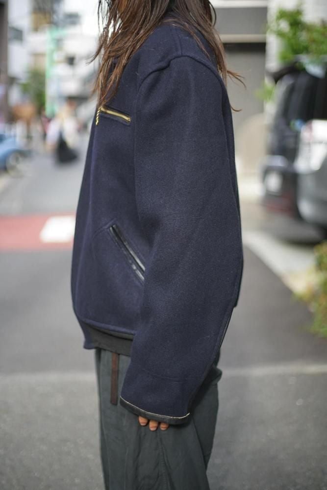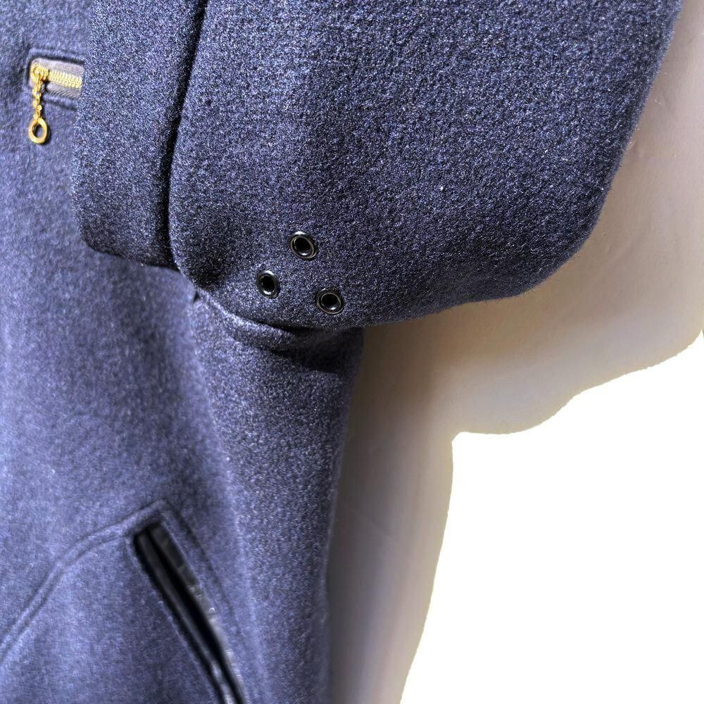 The body is made of Melton wool, which becomes softer with age, and the cuffs and pockets are trimmed with leather piping, while the leather lining on the sleeves gives it a luxurious feel.