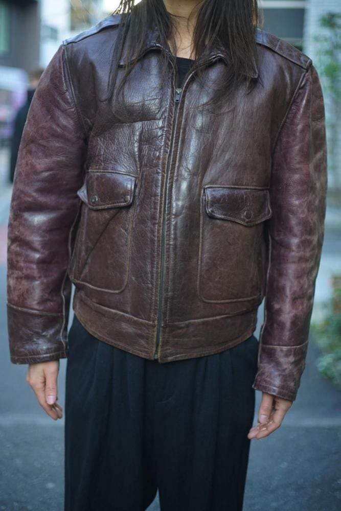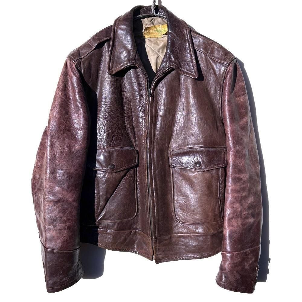 This is an A-2 type leather jacket made in California by Montgomery Ward, a private brand of the 1940s.