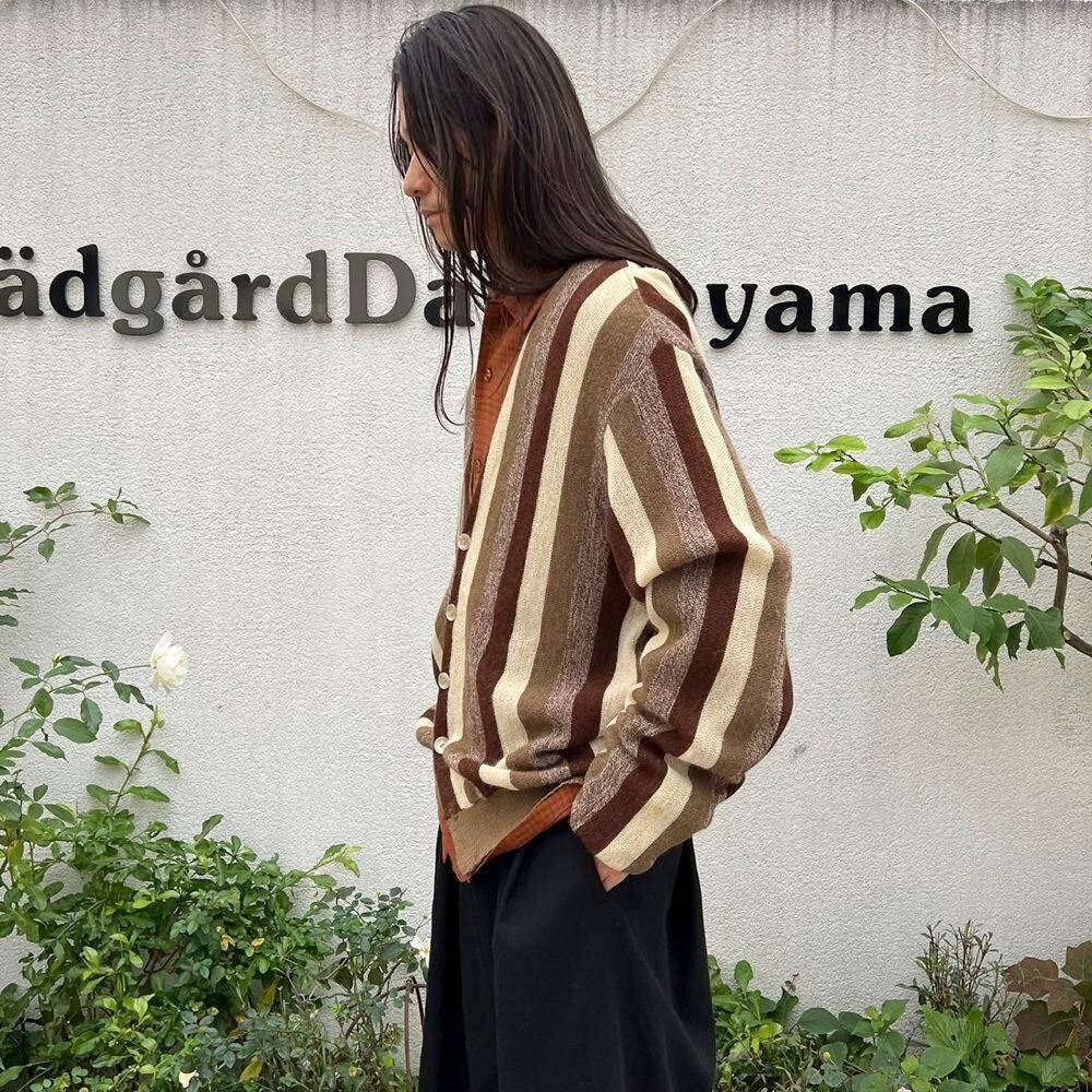 This 1960s Jansen alpaca golf cardigan is a high-quality alpaca blend knit with brown, beige, and khaki stripes for a tasteful look. While golf cardigans tend to be slim-fitting, this one has a relaxed fit.