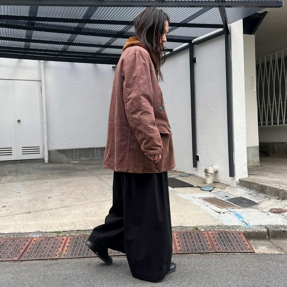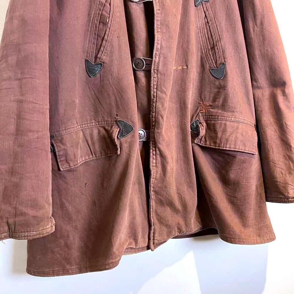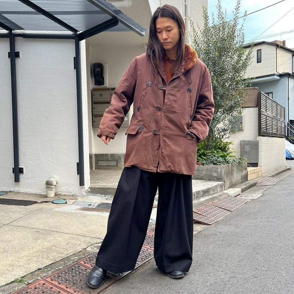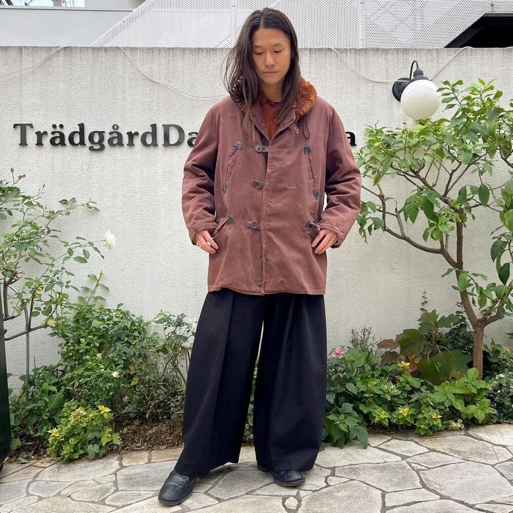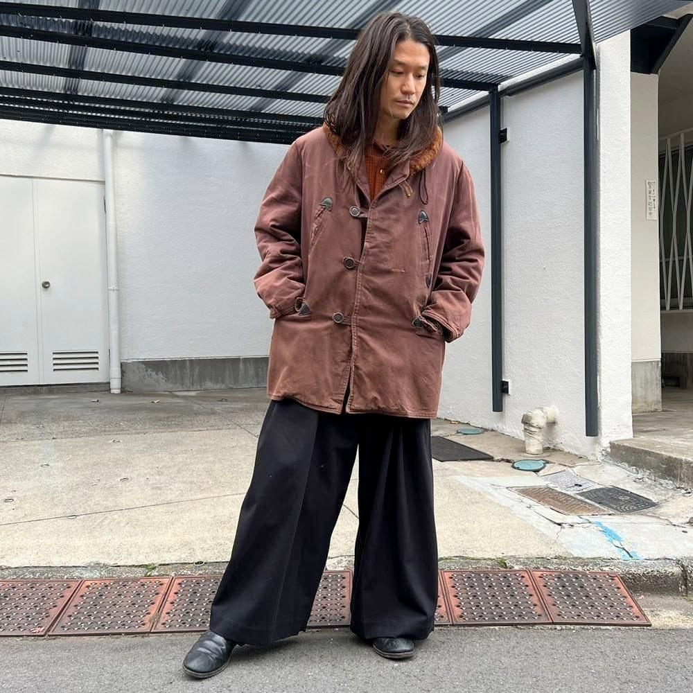 This 1950s Sears Mackinaw coat has faded to a russet brown over time, creating a sophisticated, understated look. The boa collar and lining are made of 100% real sheepskin, providing excellent protection against the cold. Its lighter than it looks, making it comfortable to wear. Its rare to find such a lightweight, warm coat from the 1950s. It has a comfortable, relaxed fit and a beautiful silhouette with naturally dropped shoulders.
