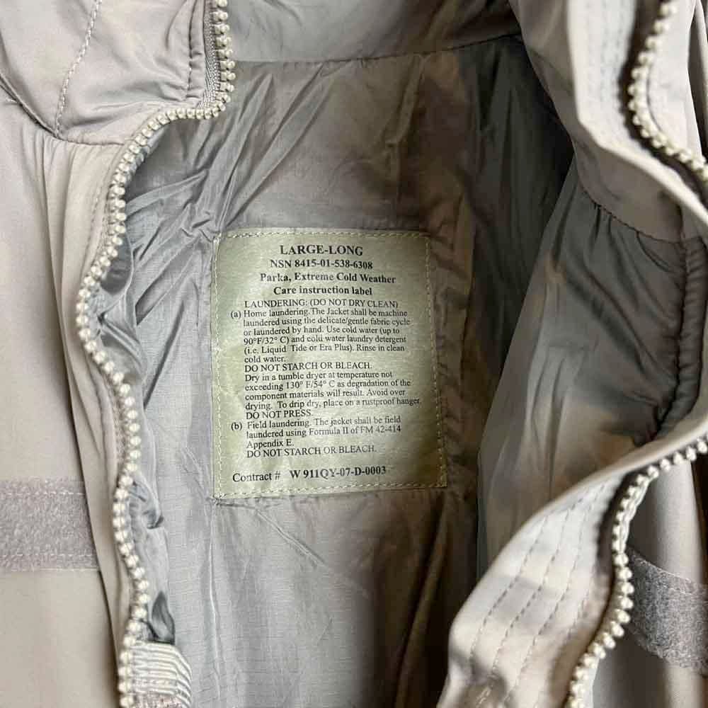 The US militarys third-generation Equax Level 7 jacket is filled with Primaloft, a high-performance insulation developed for sleeping bags. Its warmth rivals that of goose down, providing excellent cold protection. Its also easy to care for, being machine washable. The jacket is sized Large-Long, with a relaxed fit.