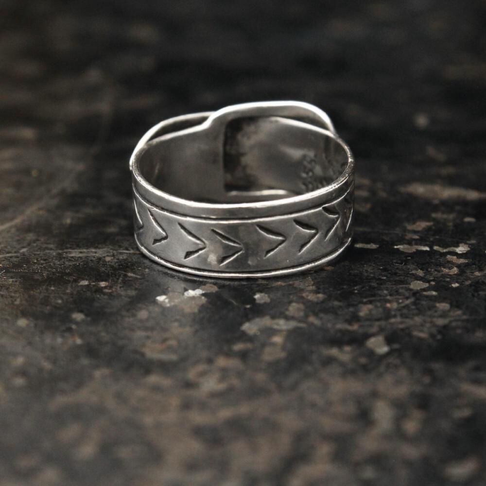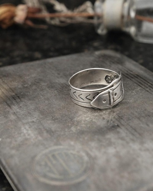 This vintage Taxco, Mexico-made piece features an engraved eagle mark, a design popular during the Victorian era at the end of the 19th century. The buckle belt motif evokes a kitschy yet classic aesthetic, while the carved hoop design evokes a unique, earthy, native feel, lending it a vintage look. It features an adjustable strap and likely fits sizes 14-15.5. The hallmark dates it to the 1960s to early 1970s, and the number is likely a factory number. Its made of sterling silver. As a vintage item, there may be some wear and tear. Please review the photos and understand the characteristics of vintage and antique items before purchasing.