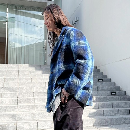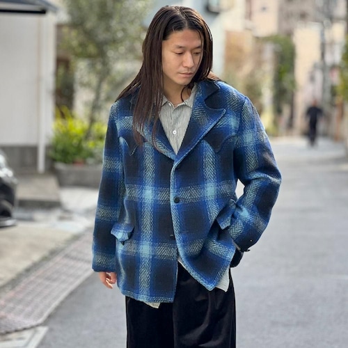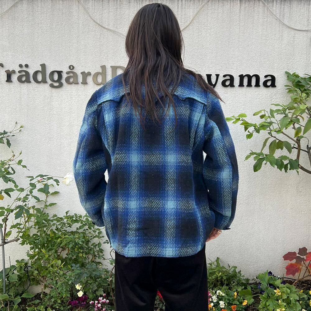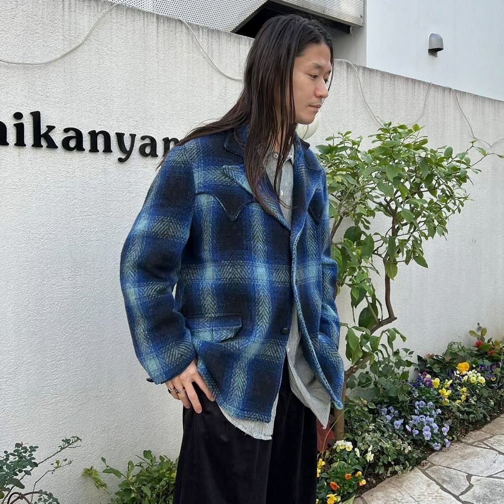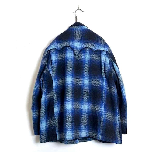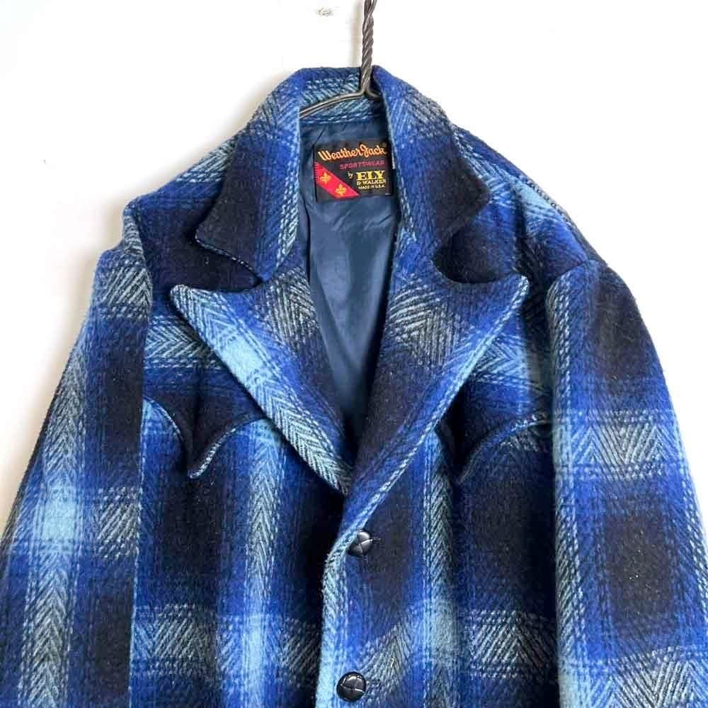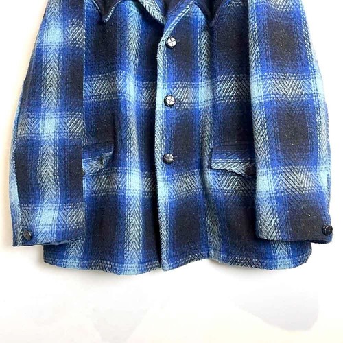 This vintage jacket from the 70s features a vibrant blue ombré check and a western-inspired yoke. The soft, lightweight wool and cotton fabric makes it comfortable to wear. Its a comfortable vintage jacket with a relaxed fit and a great silhouette.
