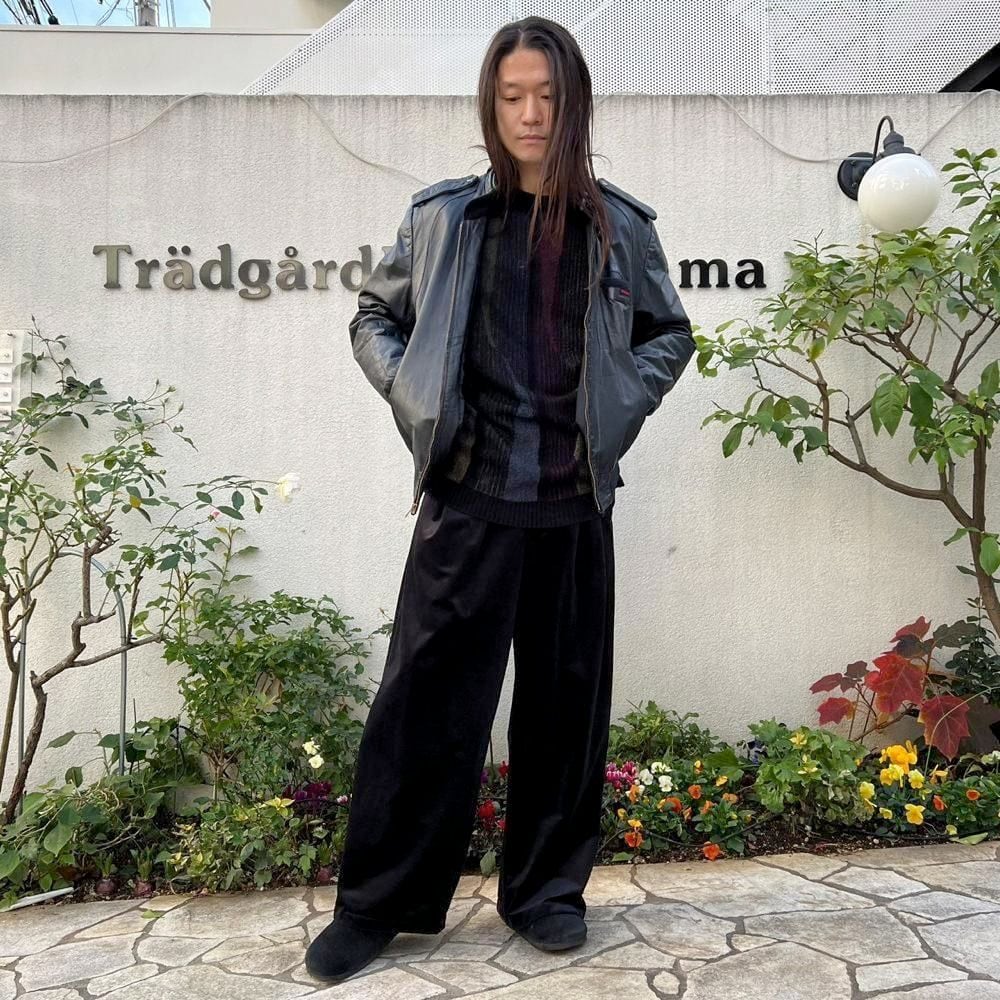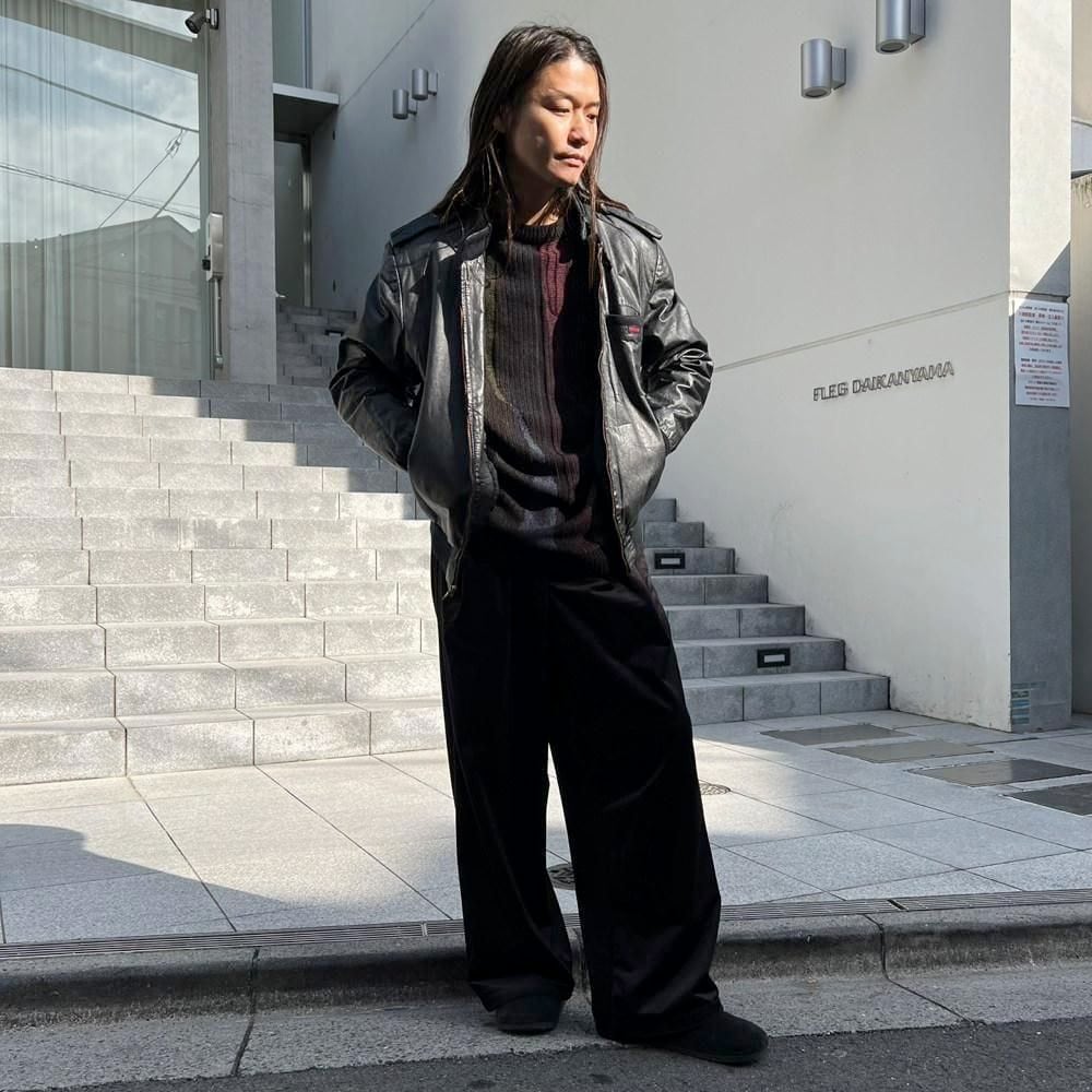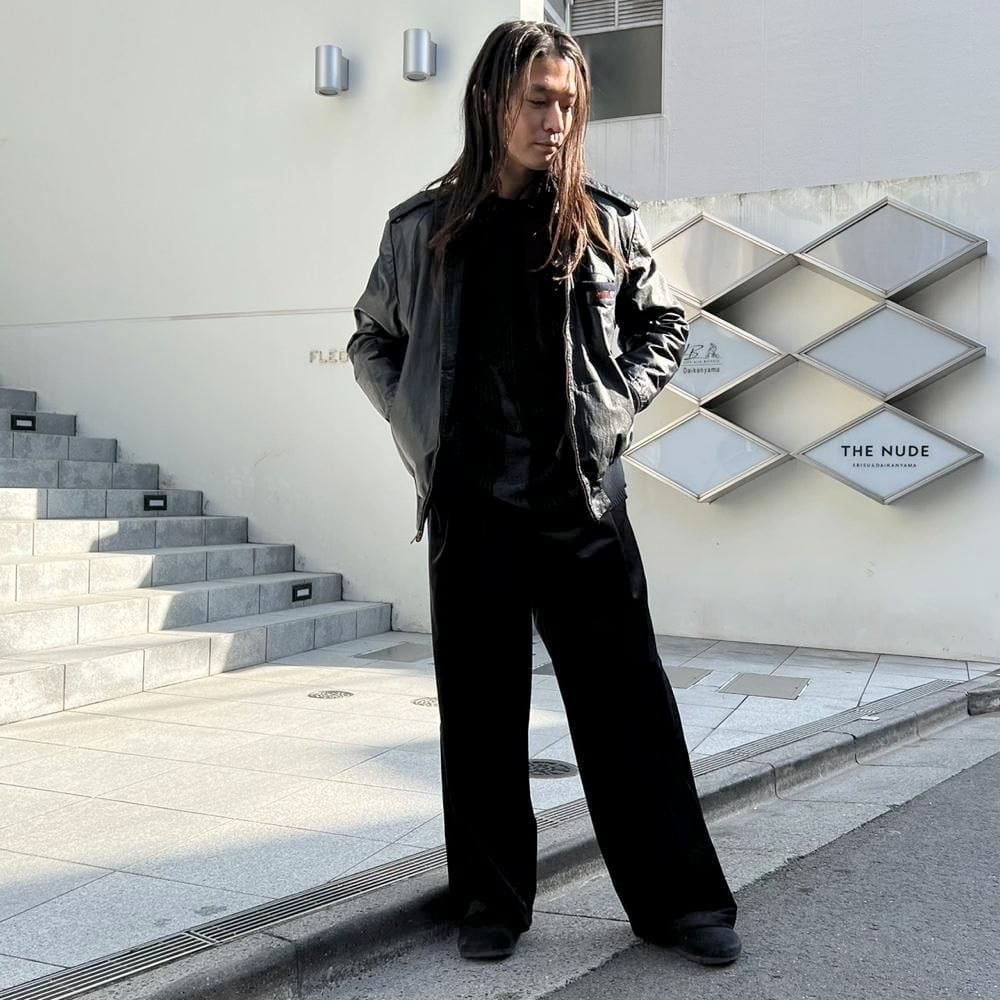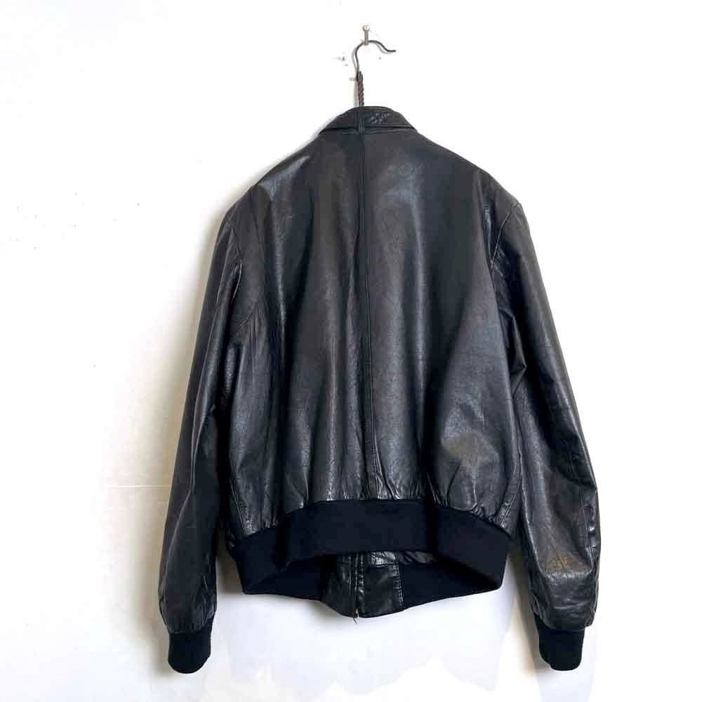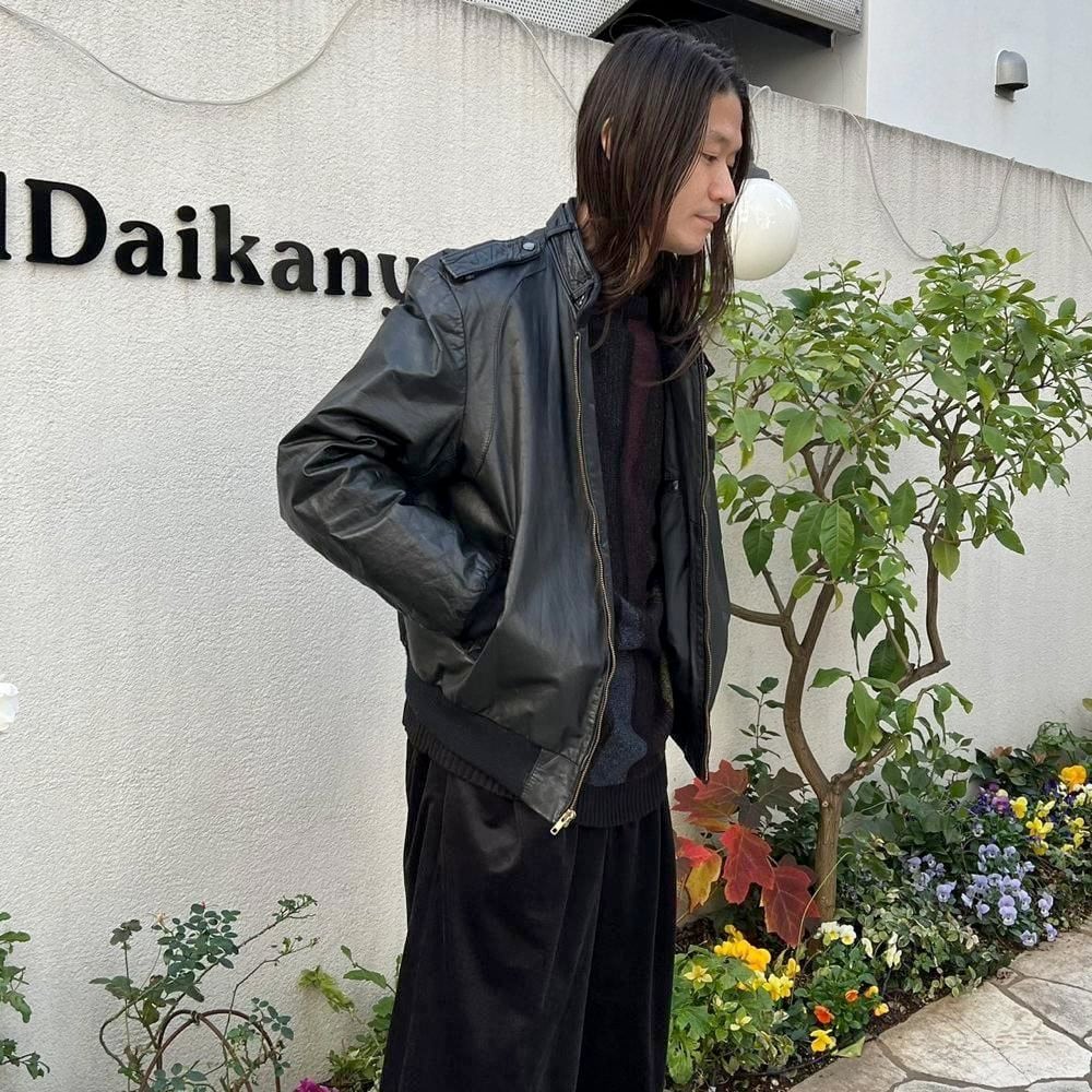 This 80s leather jacket is a racing jacket-style jacket reminiscent of Members Only. The epaulettes and belted collar create a cool look. The size is 48, and it fits comfortably with a comfortable fit.