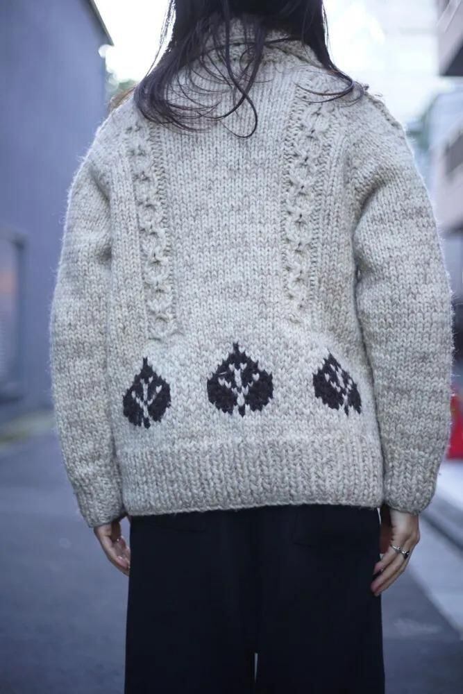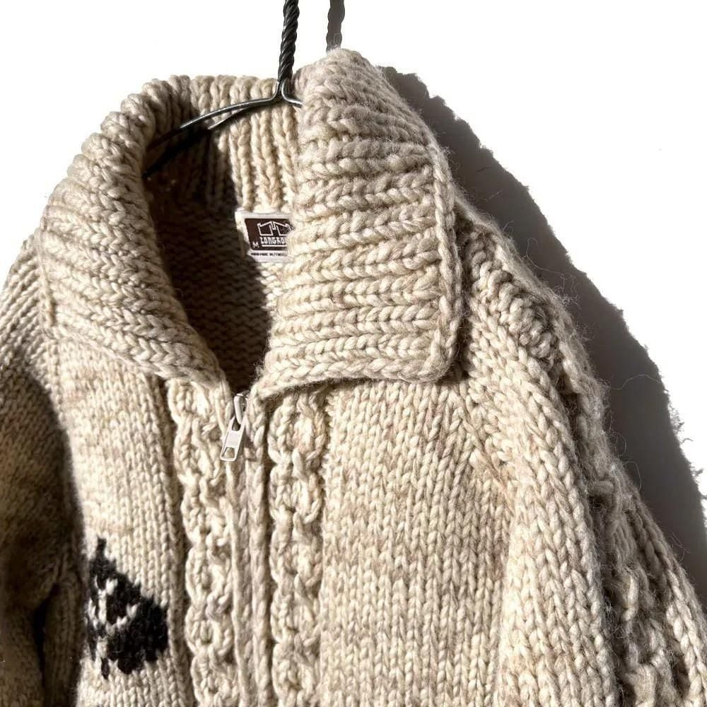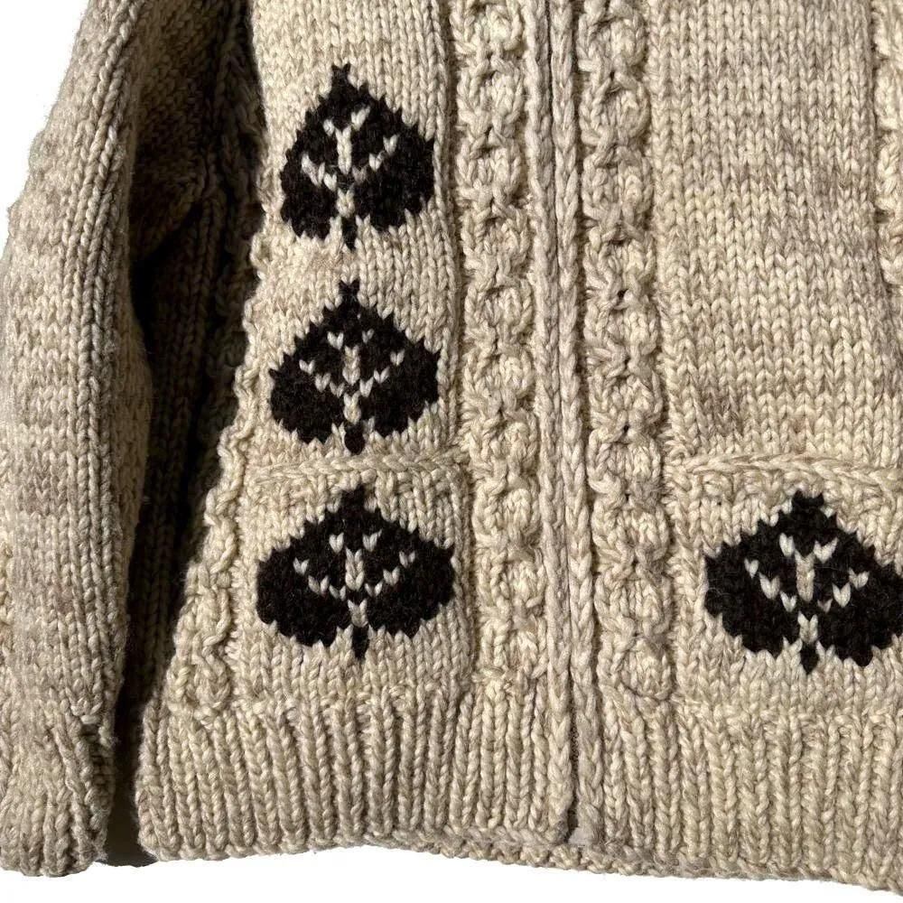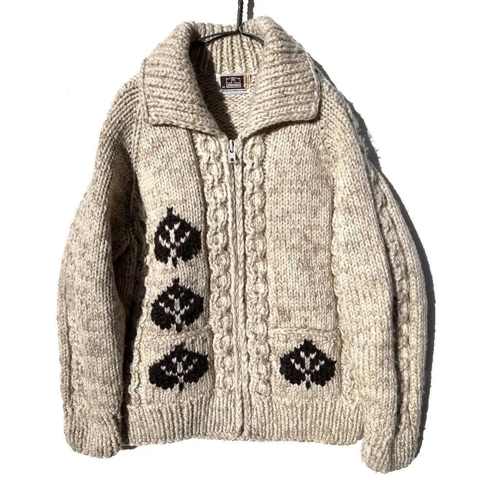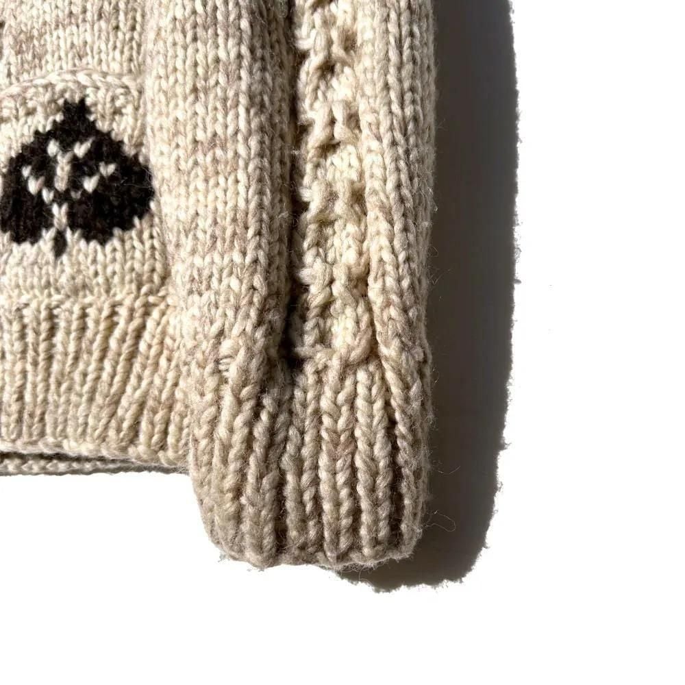 This is a vintage Cowichan sweater made by LONGHOUSE around the 1980s.