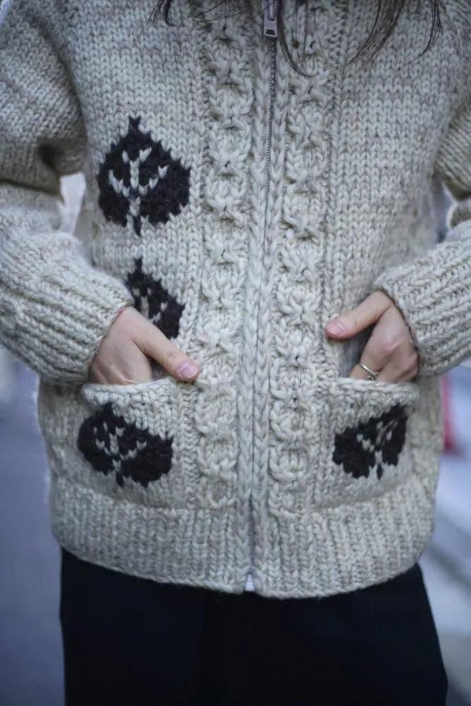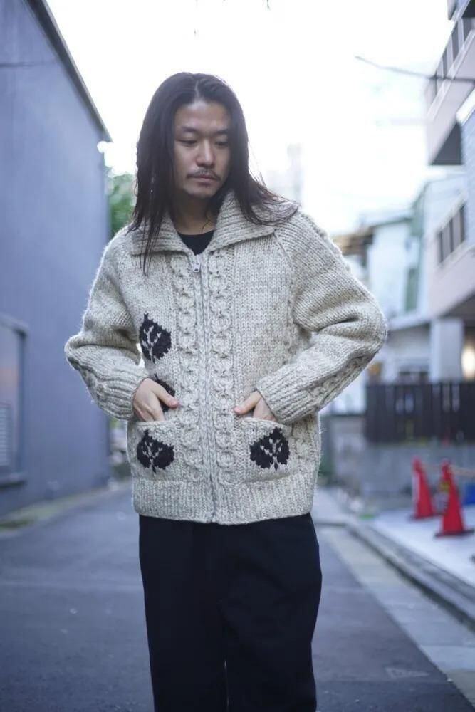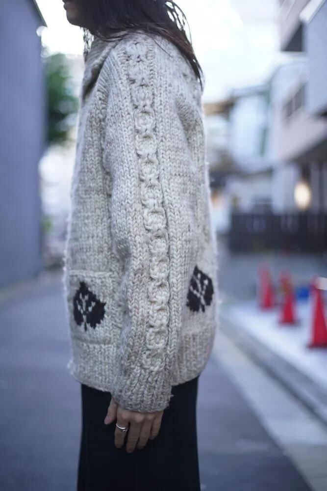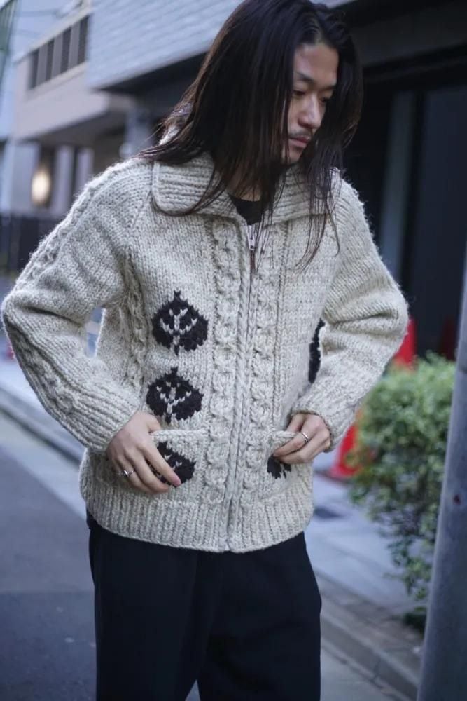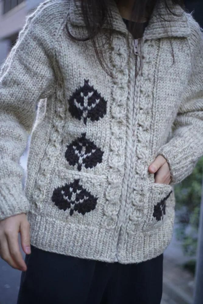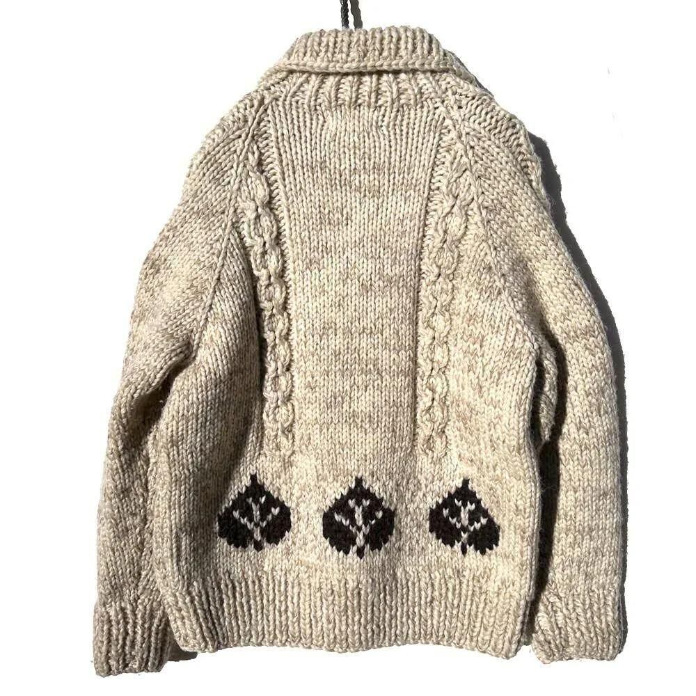 This is a vintage Cowichan sweater made by LONGHOUSE around the 1980s.