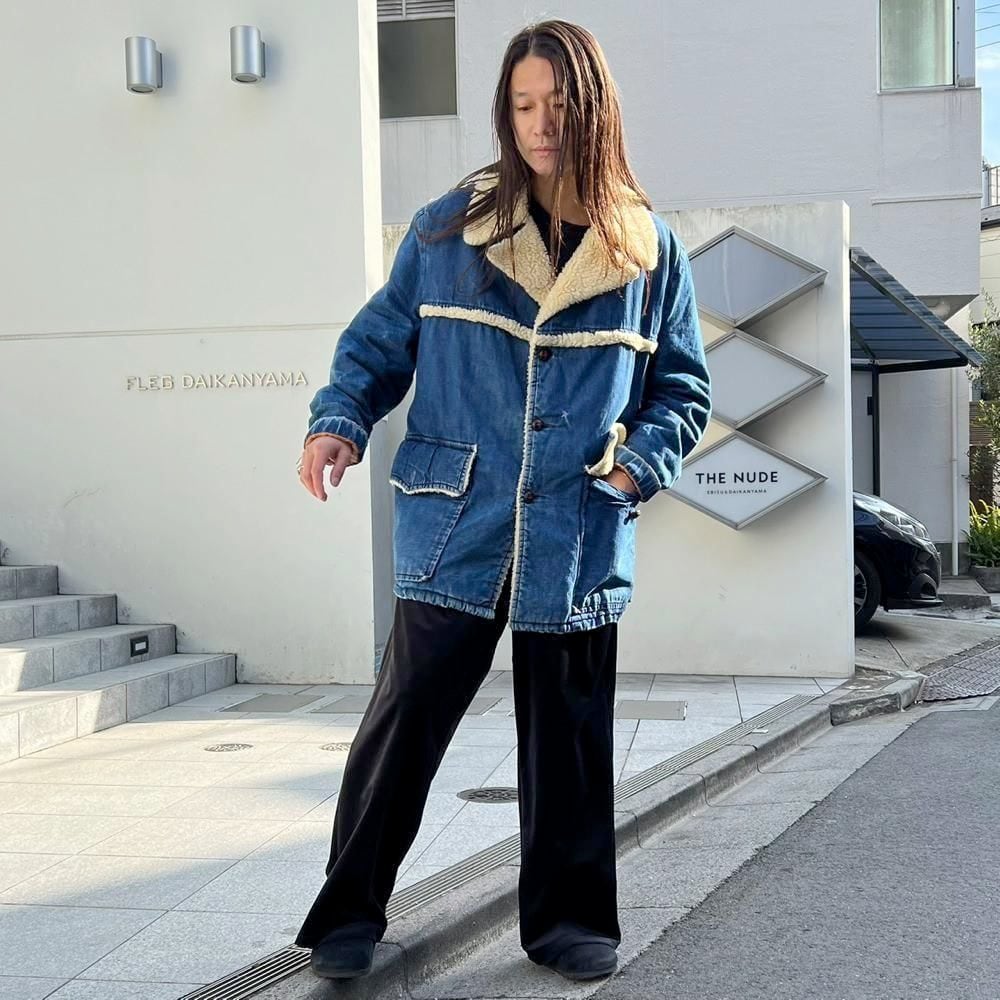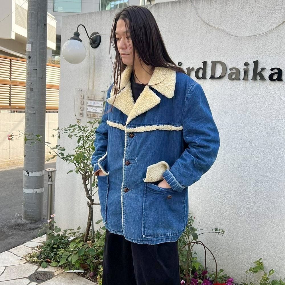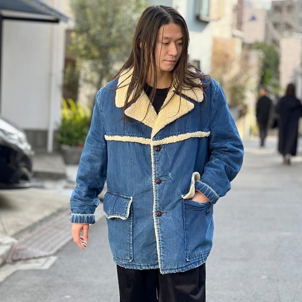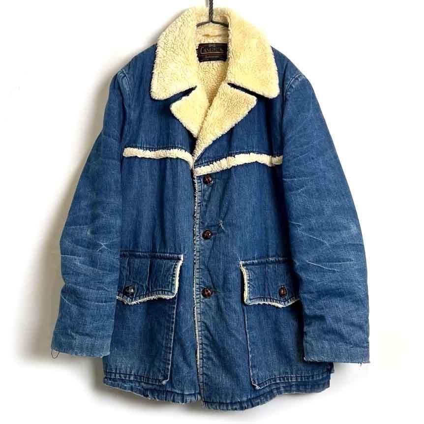 This 70s canvas boa-lined denim jacket is a lunch coat-style design. The beautifully faded blue denim and voluminous boa create a stylish look. Its a size 46 and fits comfortably with a comfortable fit.