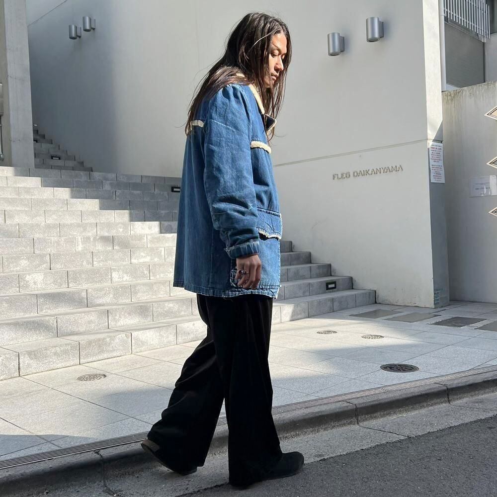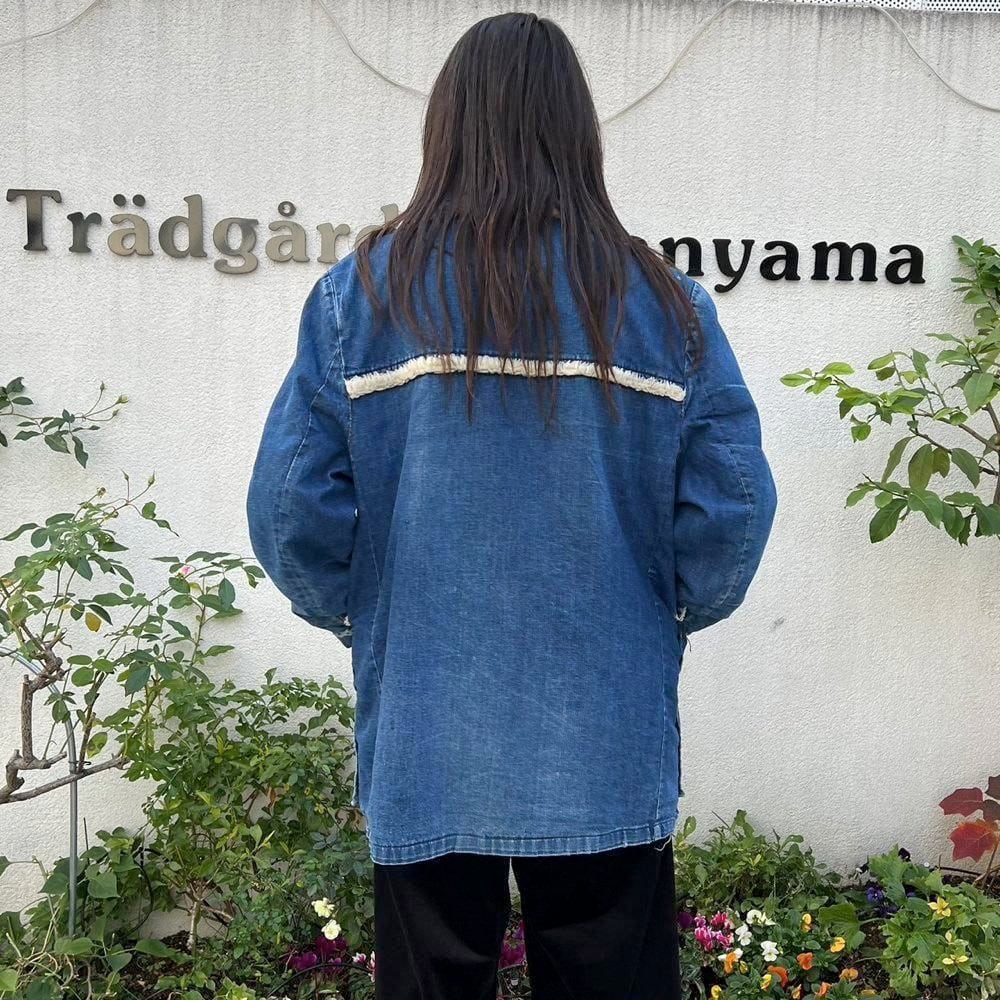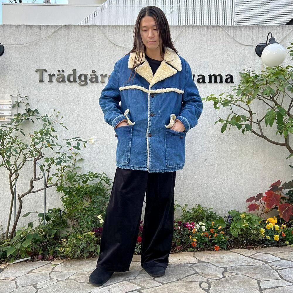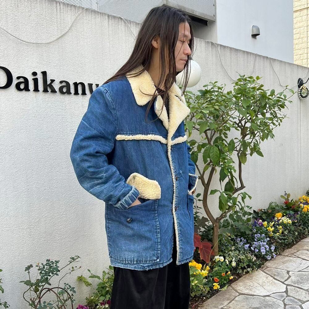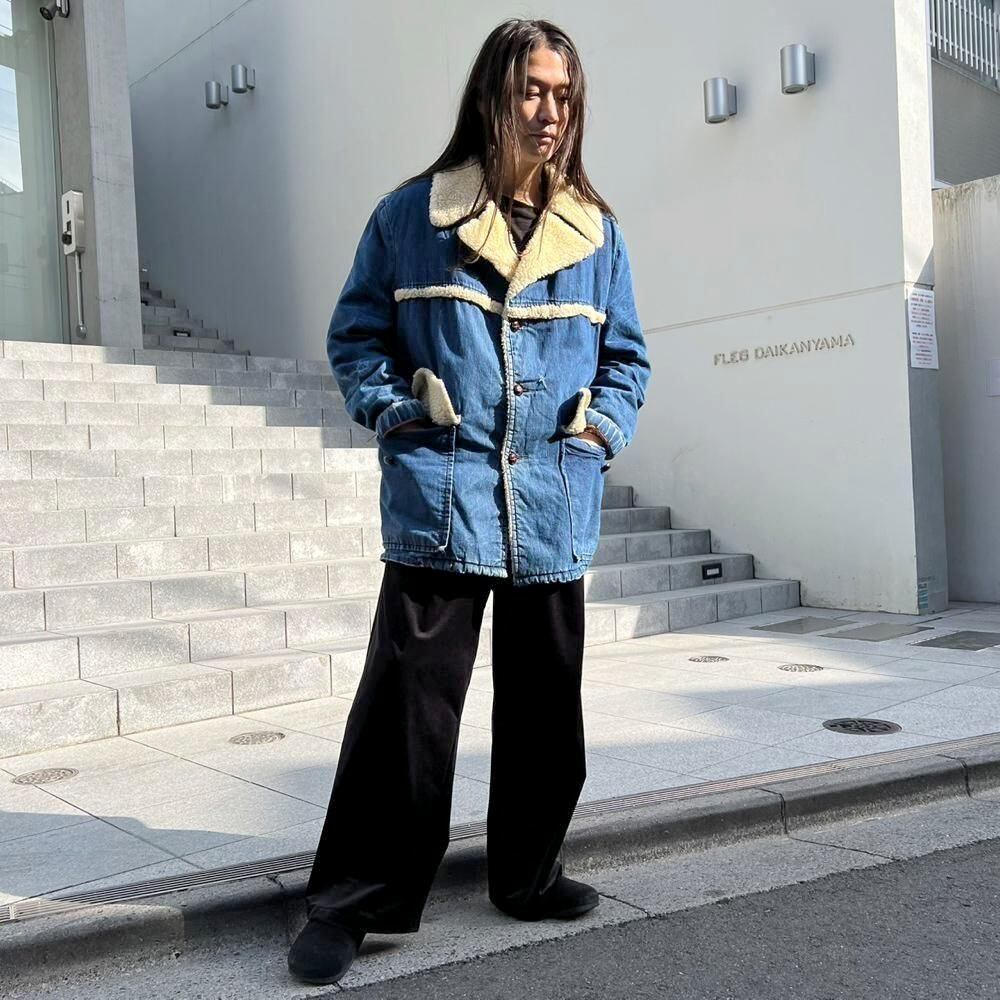 This 70s canvas boa-lined denim jacket is a lunch coat-style design. The beautifully faded blue denim and voluminous boa create a stylish look. Its a size 46 and fits comfortably with a comfortable fit.