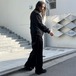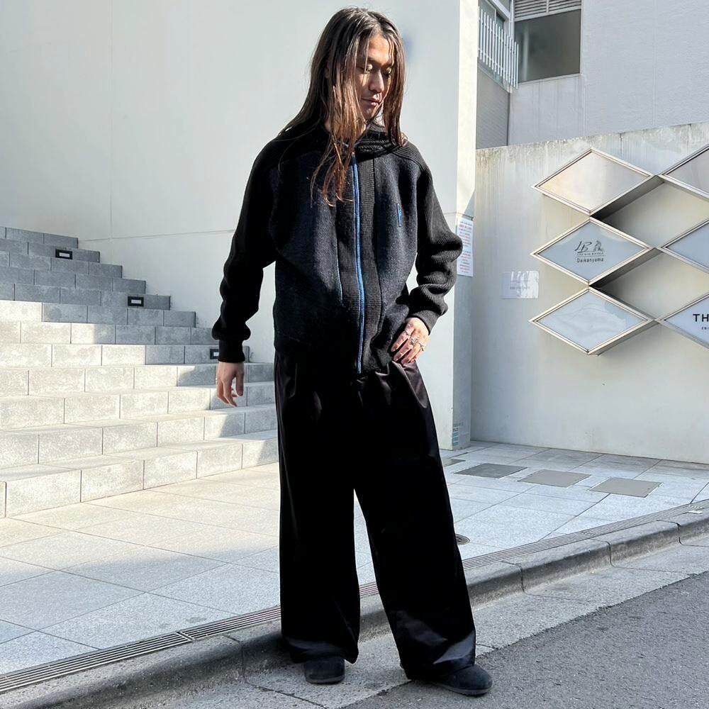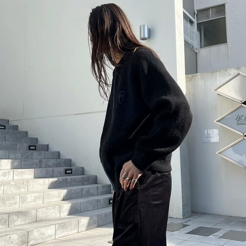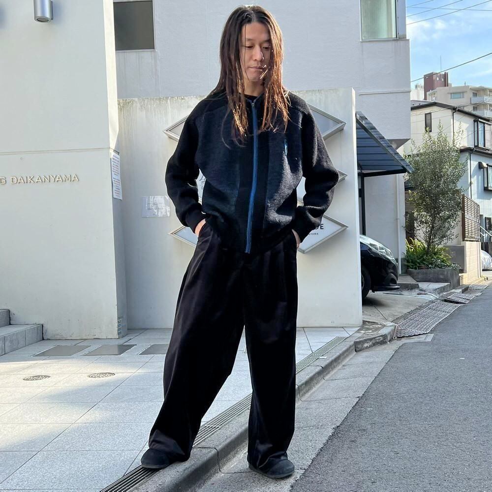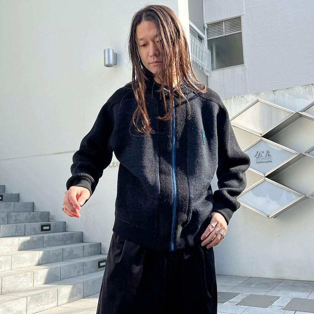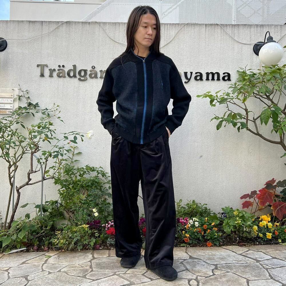 This zip-up cardigan is a classic example of the Seattle knitwear brand Penguin from the 1960s. Its sporty, full-zip design makes it easy to wear inside or outside, and the cool black and blue color scheme makes it a great piece.