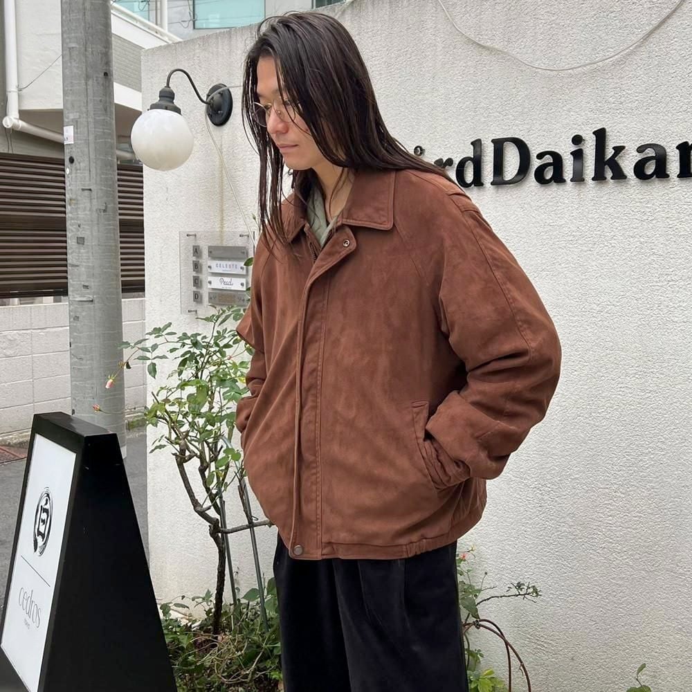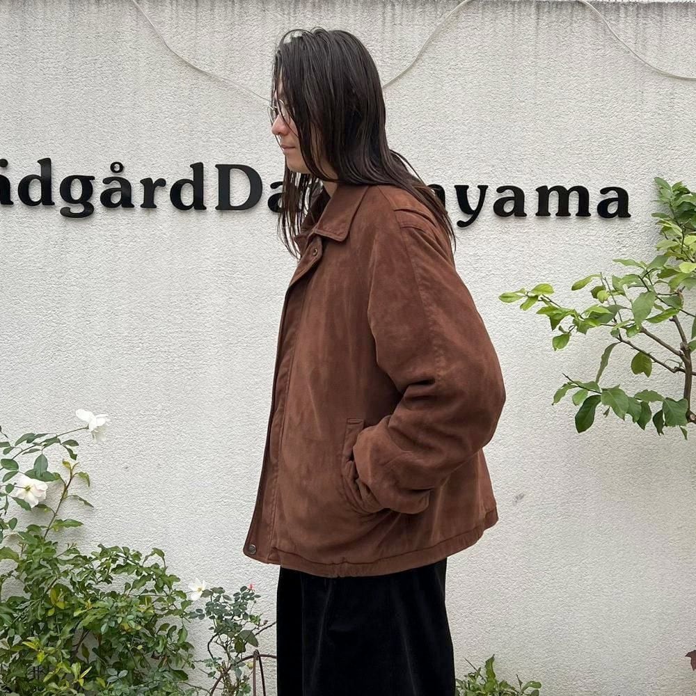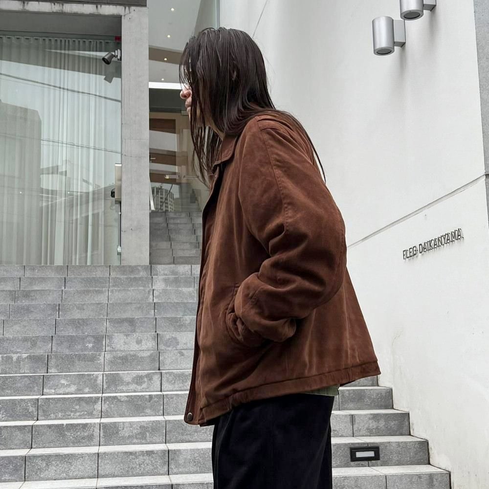 This 90s faux suede jacket is made from polyester fabric that has been brushed to create a smooth, suede-like texture. It has a sophisticated, matte brown color and a relaxed silhouette.