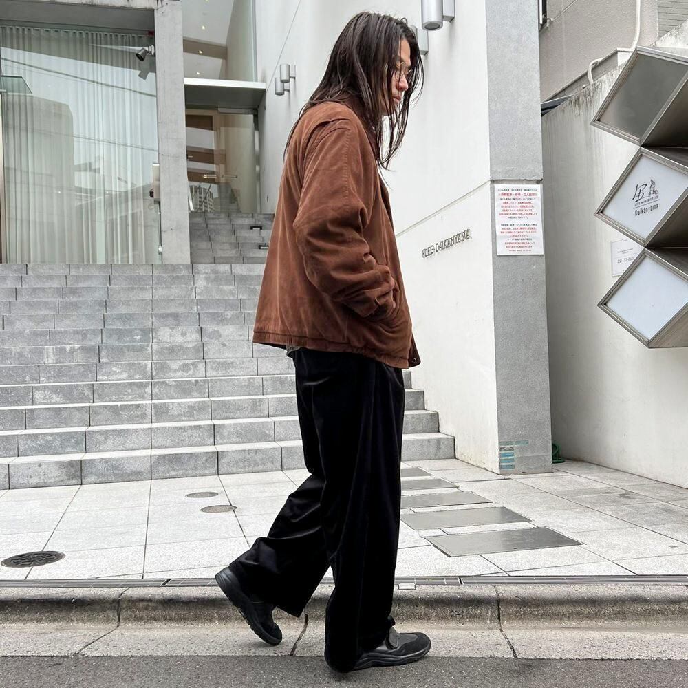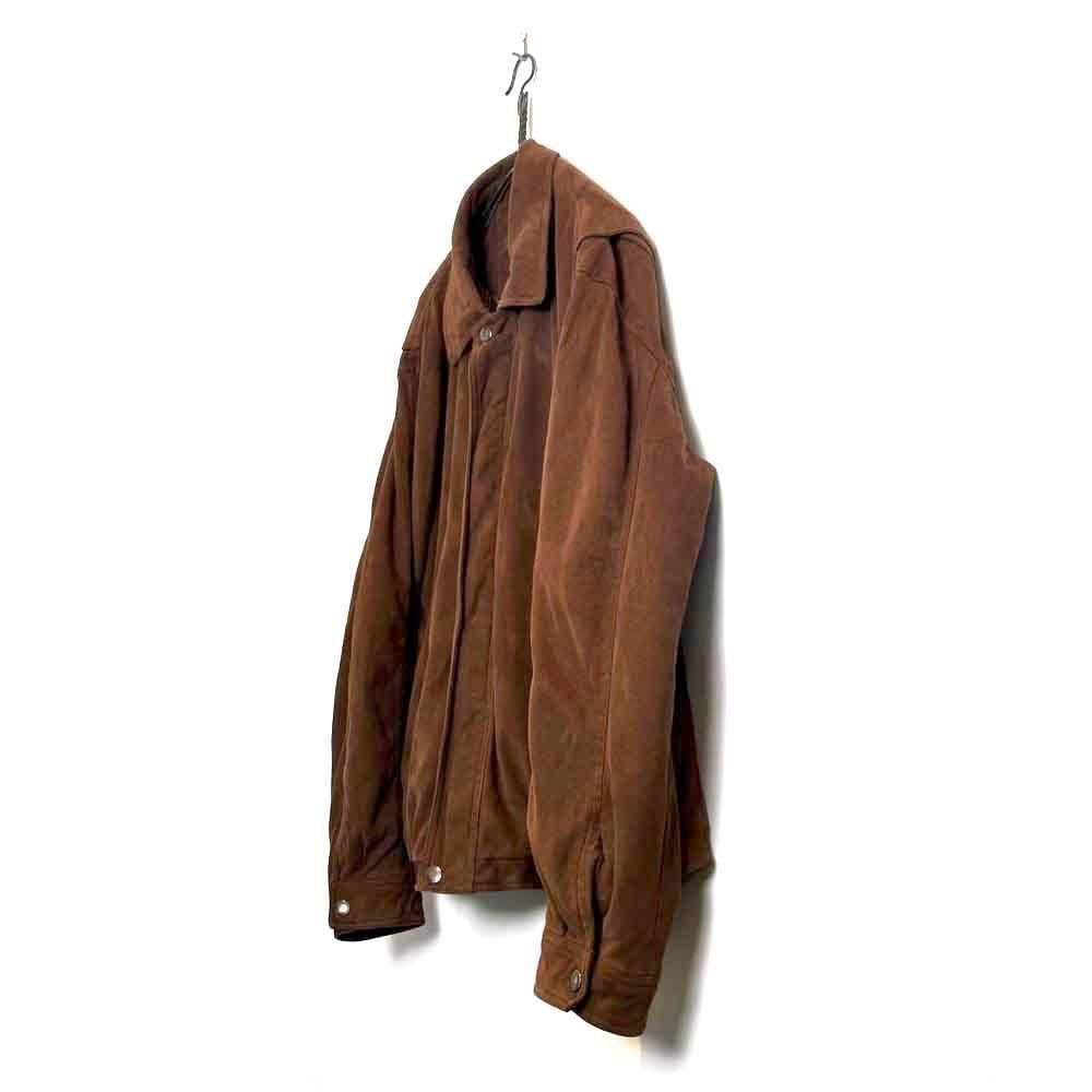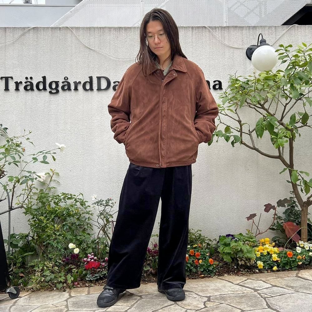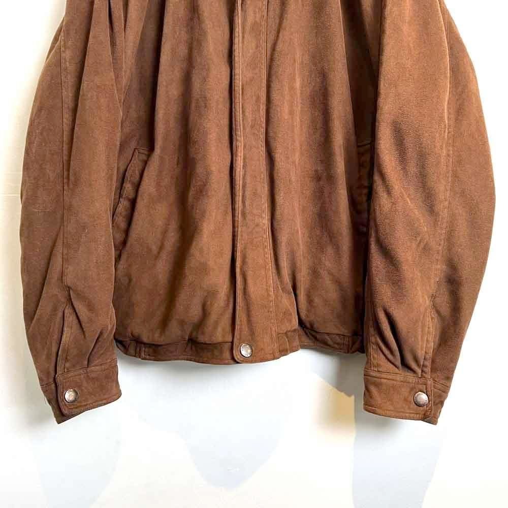 This 90s faux suede jacket is made from polyester fabric that has been brushed to create a smooth, suede-like texture. It has a sophisticated, matte brown color and a relaxed silhouette.
