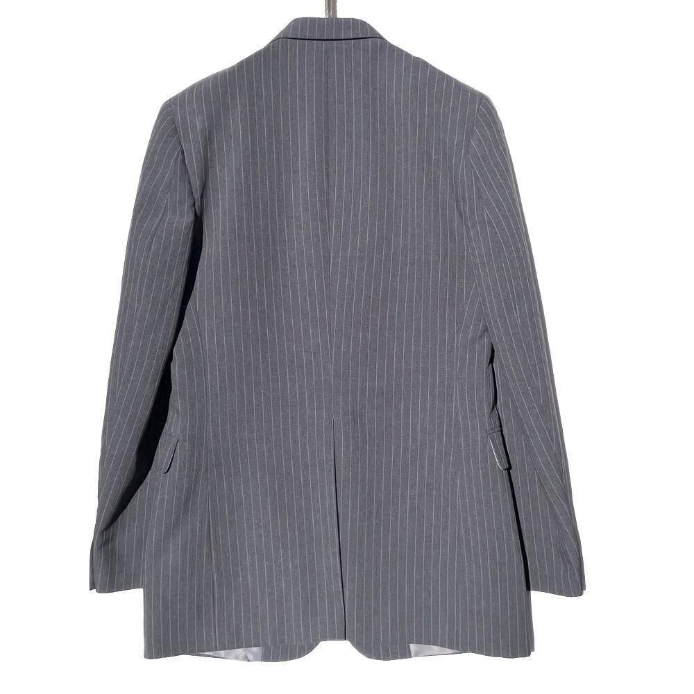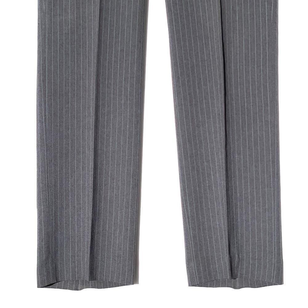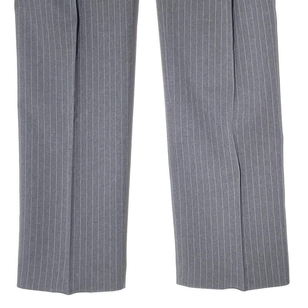 The jacket has two buttons and a vertical silhouette with a moderate shape, while the trousers have a straight silhouette with no pleats, creating a beautiful line that falls diagonally from the thighs, making the legs look long and beautiful.