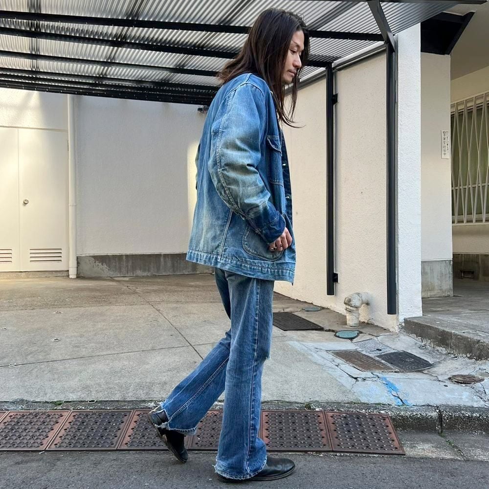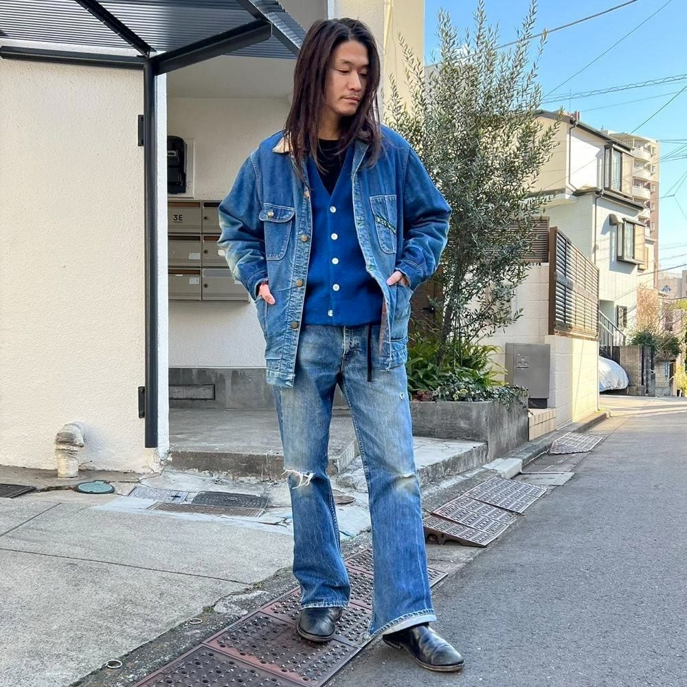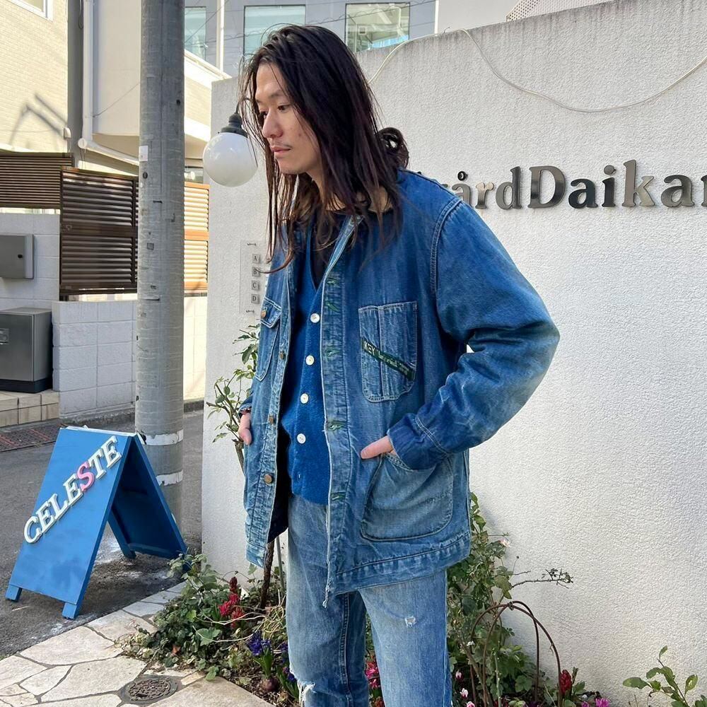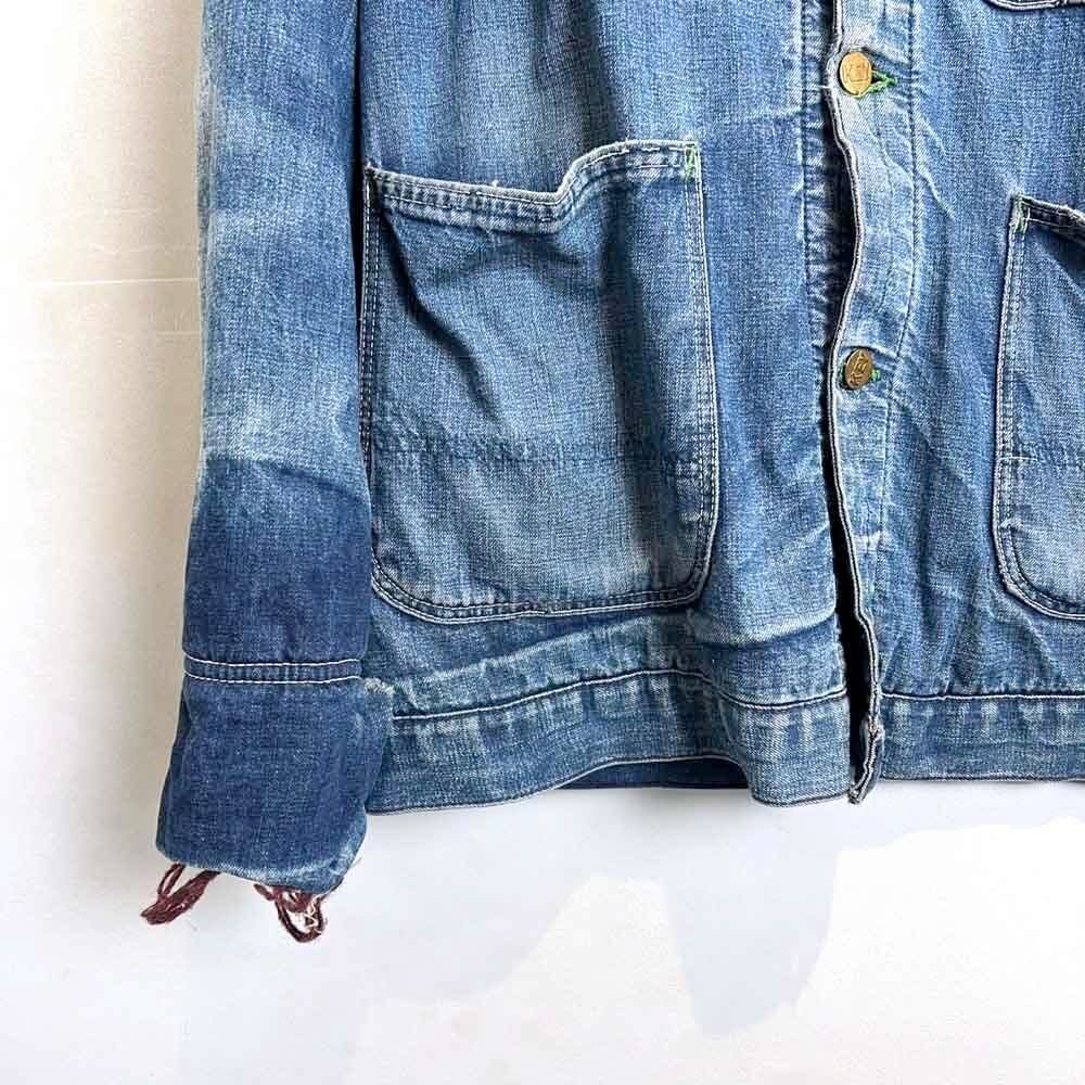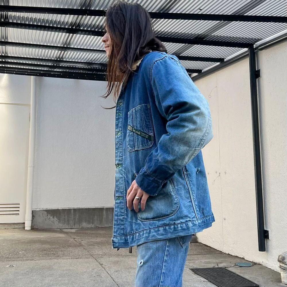 This 1950s Key coverall jacket features a beautiful indigo fade with age and a blanket lining and corduroy collar. Its a perfect fit, neither too big nor too small.