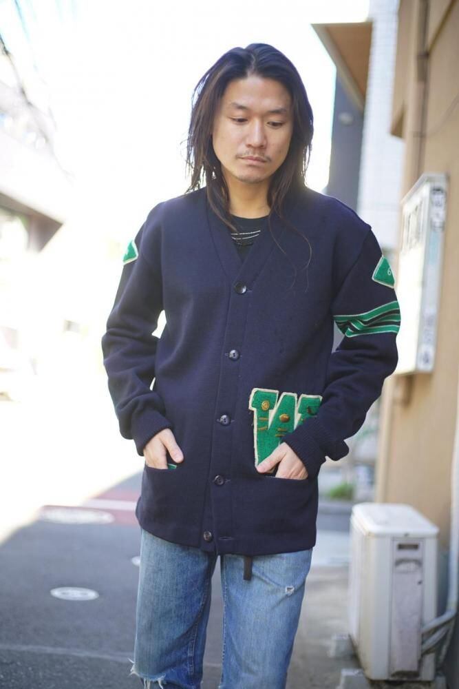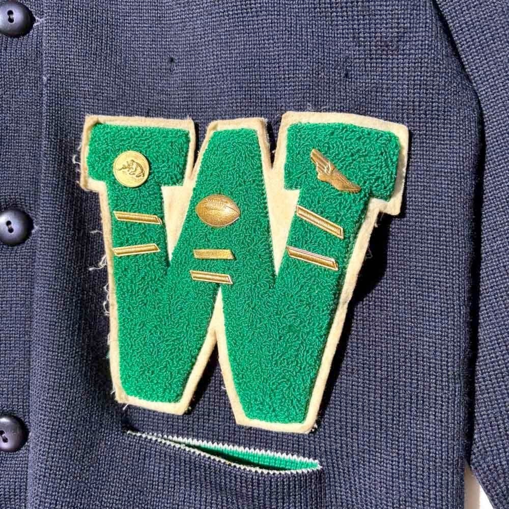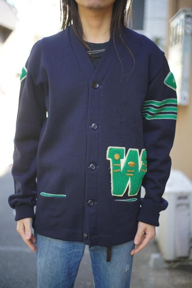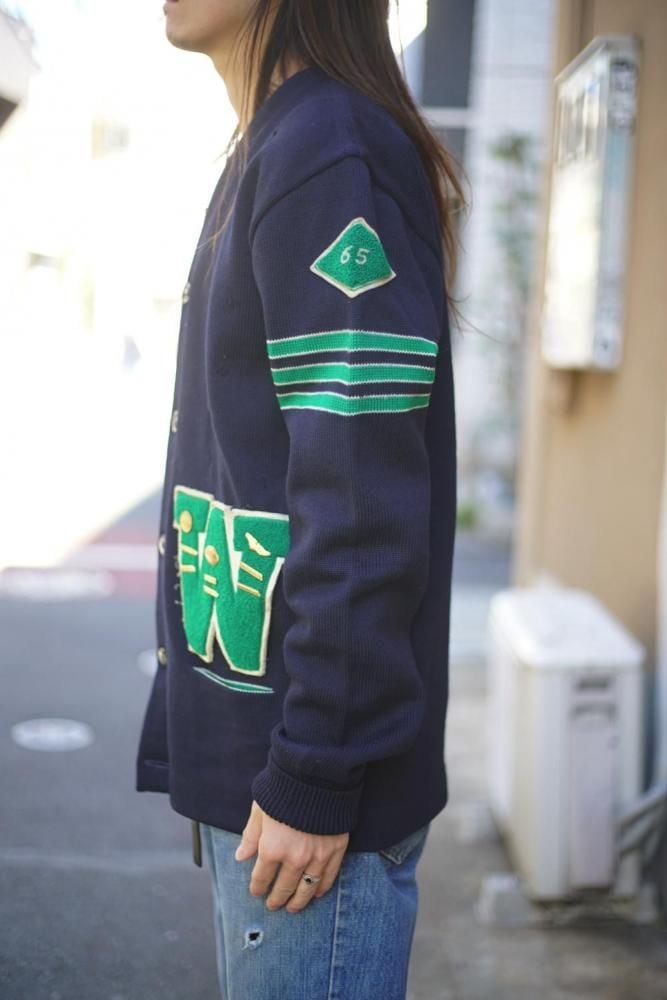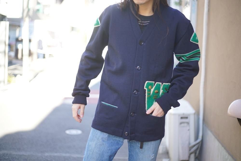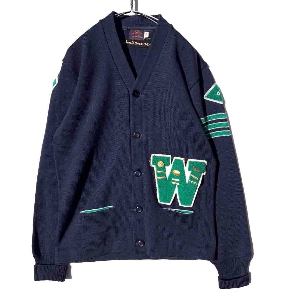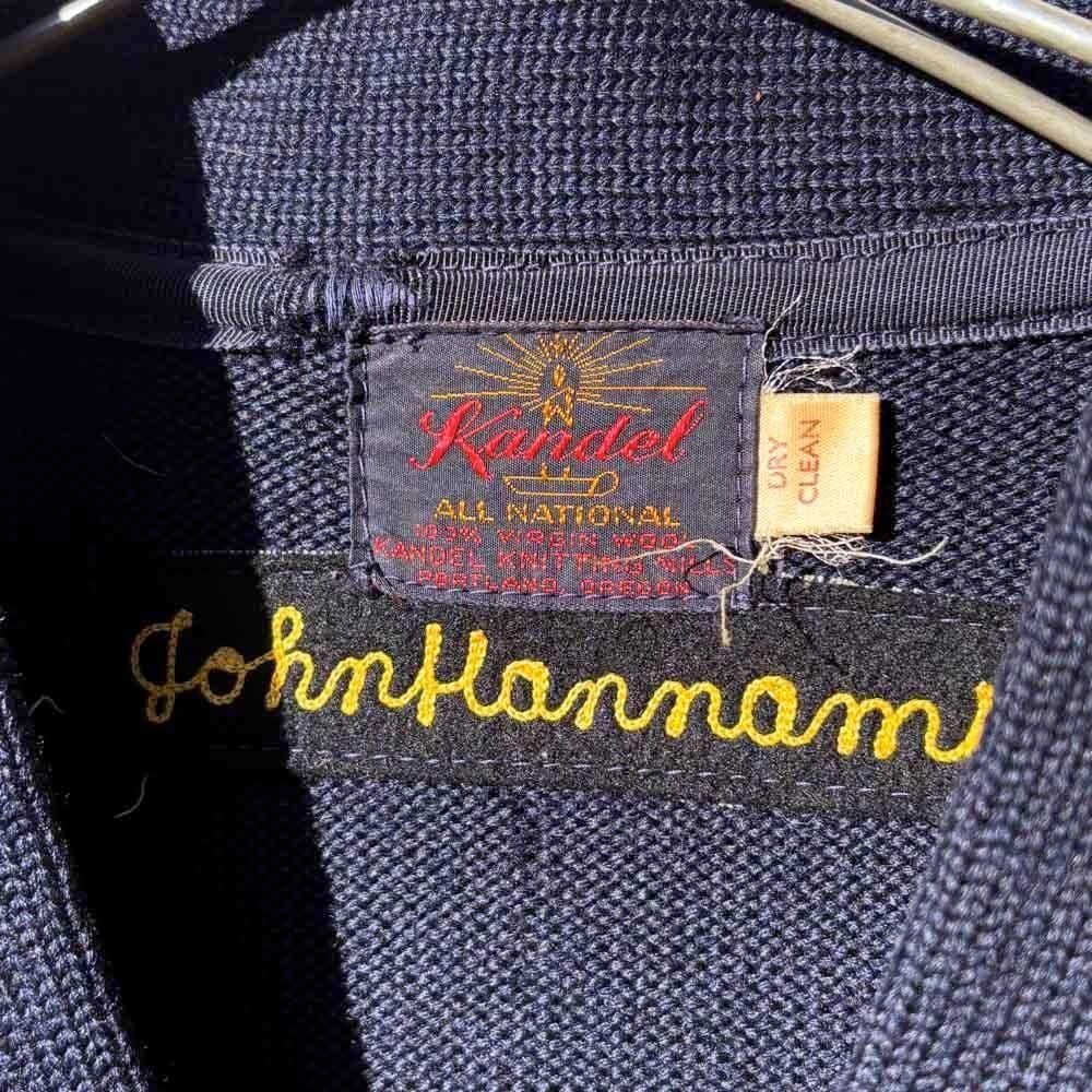This is a vintage lettered cardigan made by Kandel around the 1960s.