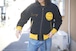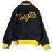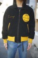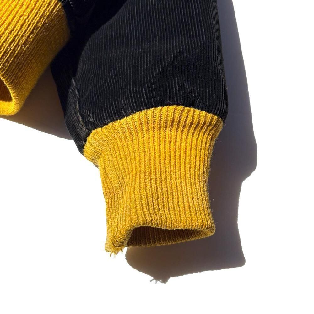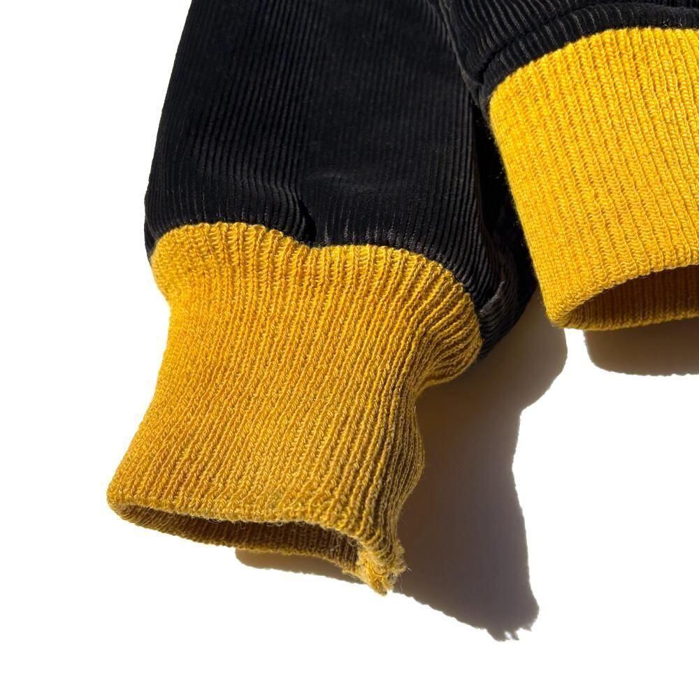 The contrast between the deep black and yellow is eye-catching, and the retro patchwork and long ribbed design give it a 50s feel.