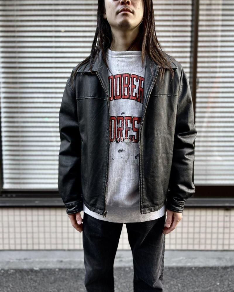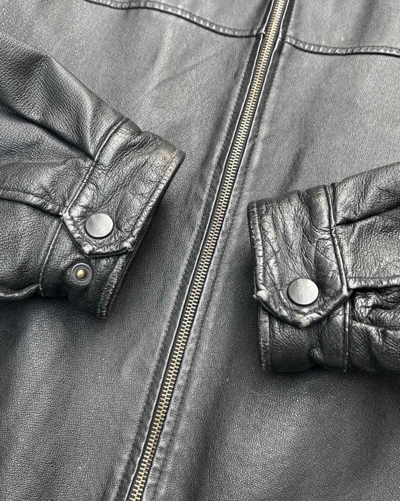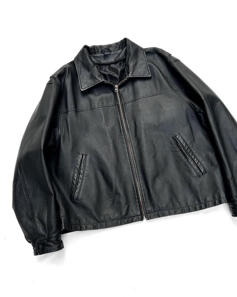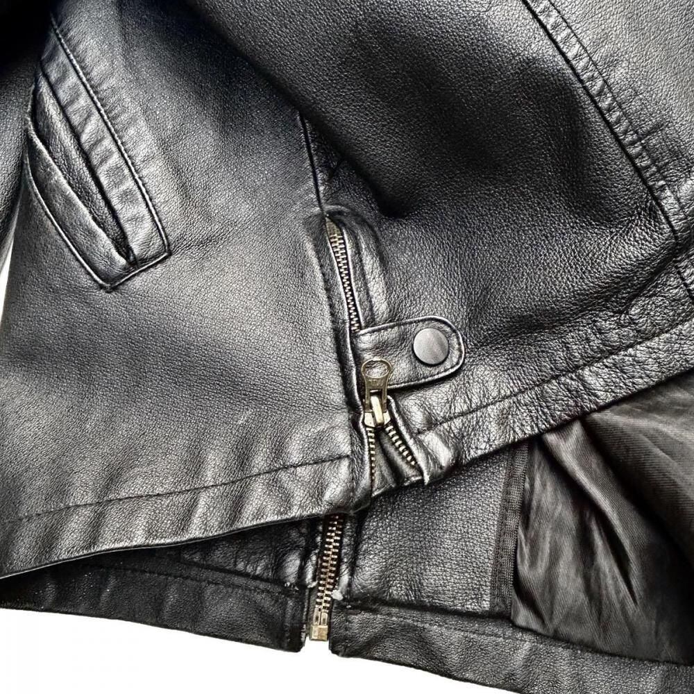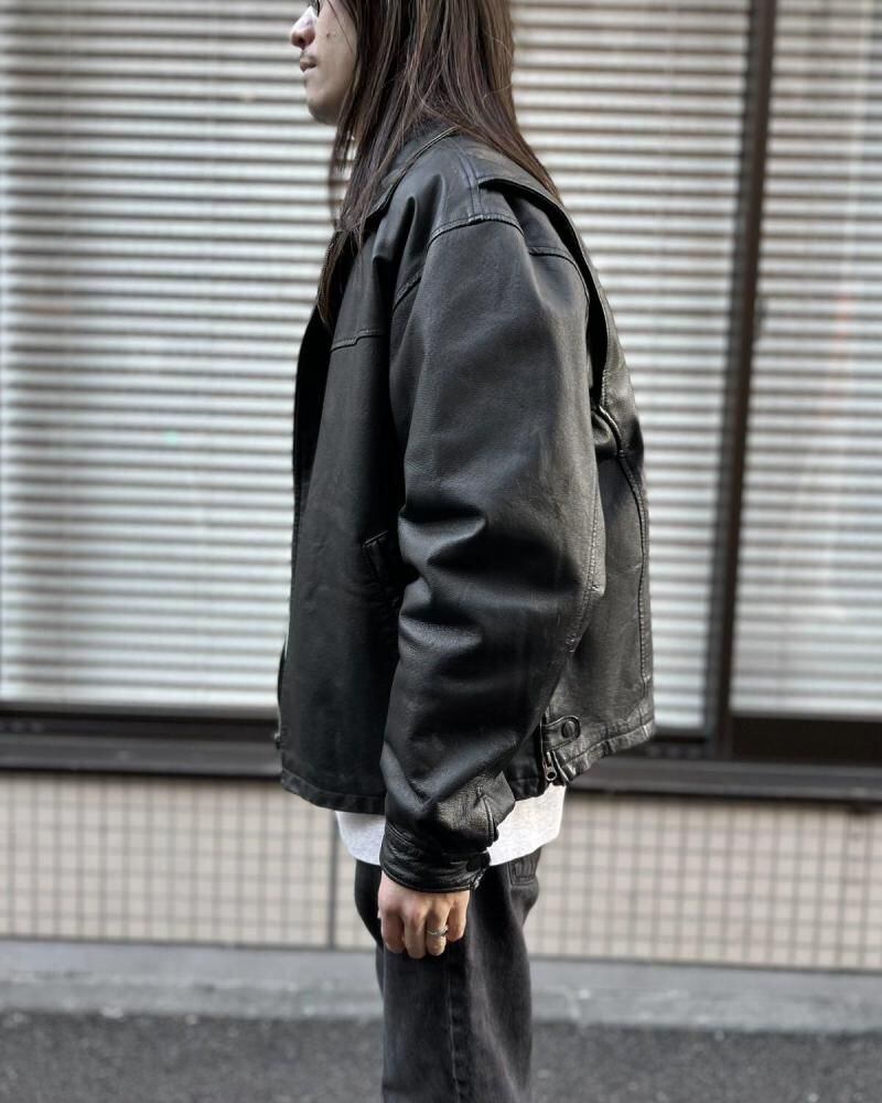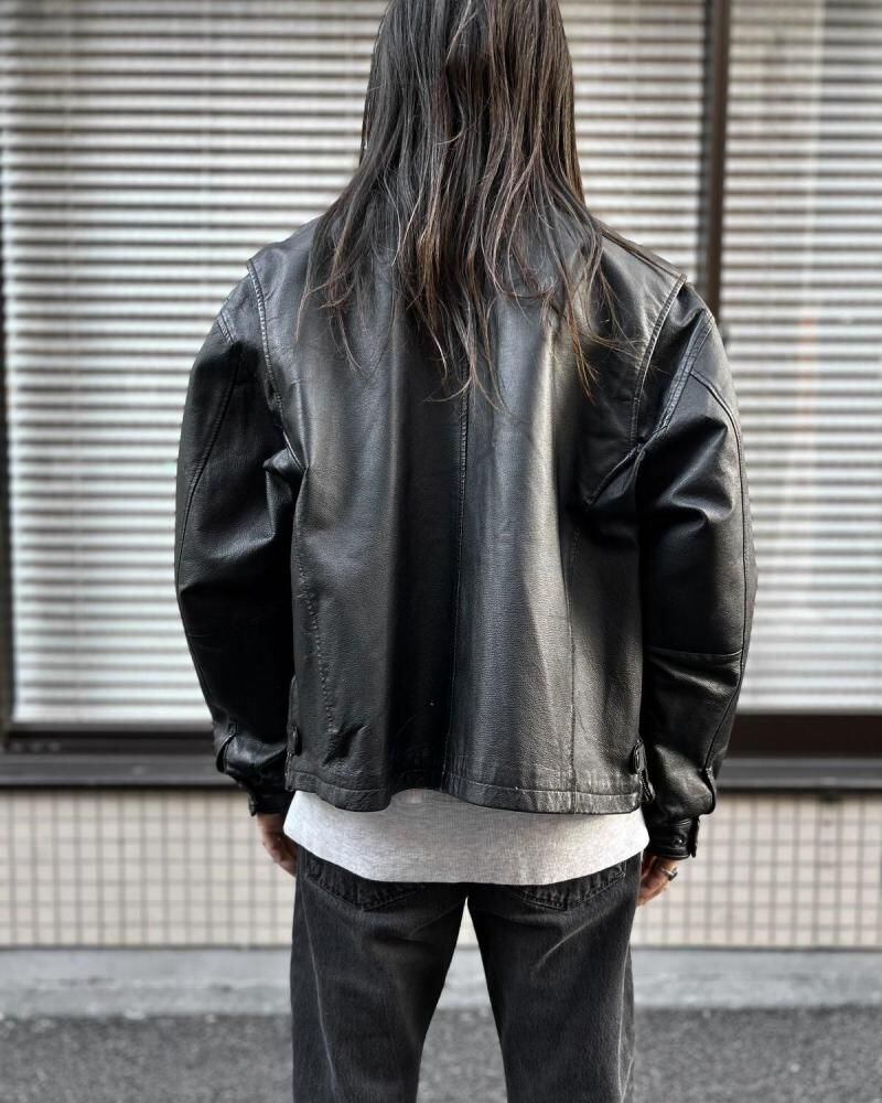 This leather jacket dates back to the 1990s. Its simple, single-breasted rider silhouette offers a clean look while providing just the right amount of room for a well-balanced silhouette. Made from slightly thicker lamb leather, it has a more mannish look, but is not too heavy and comfortable to wear. As this is an old item, there may be some fading over time. Please check the photos and understand the characteristics of vintage items before purchasing.