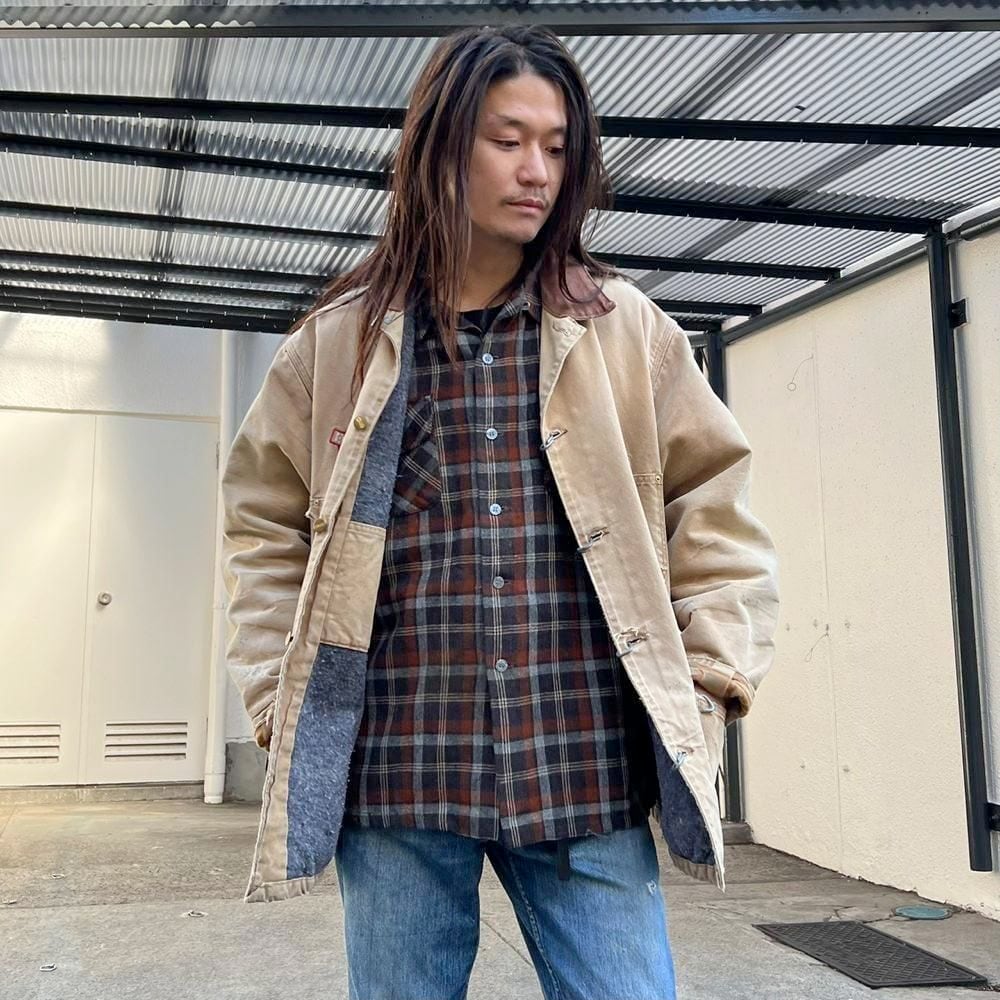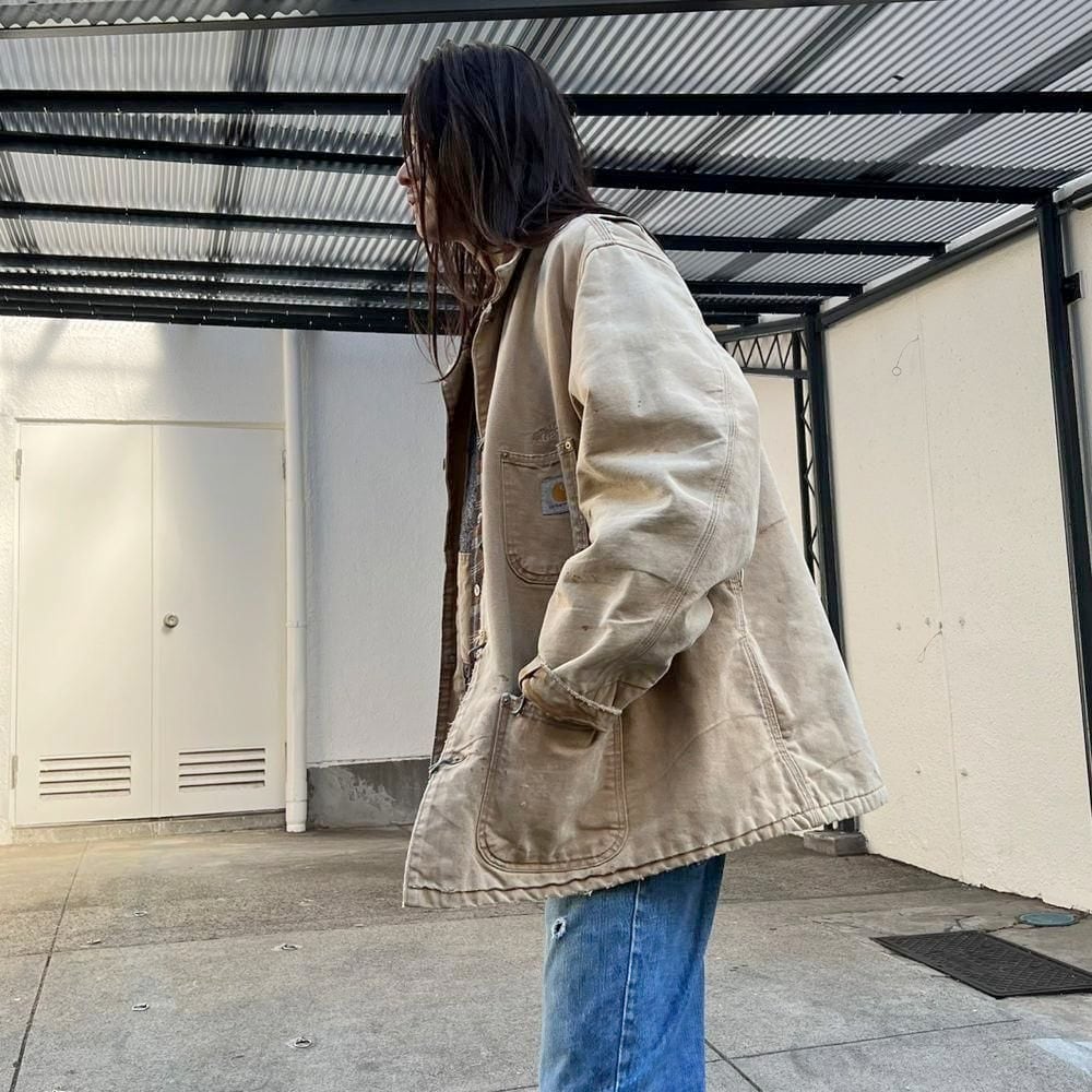 This loose, oversized piece is about 2XL. Its a faded beige color and has a nice texture. The blanket lining makes it great for keeping you warm.