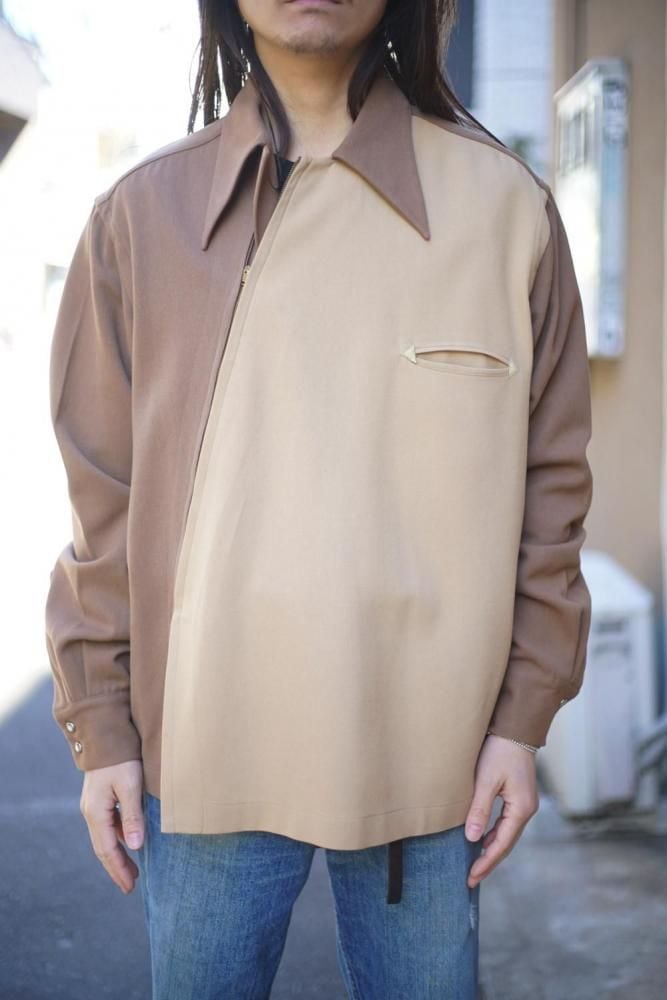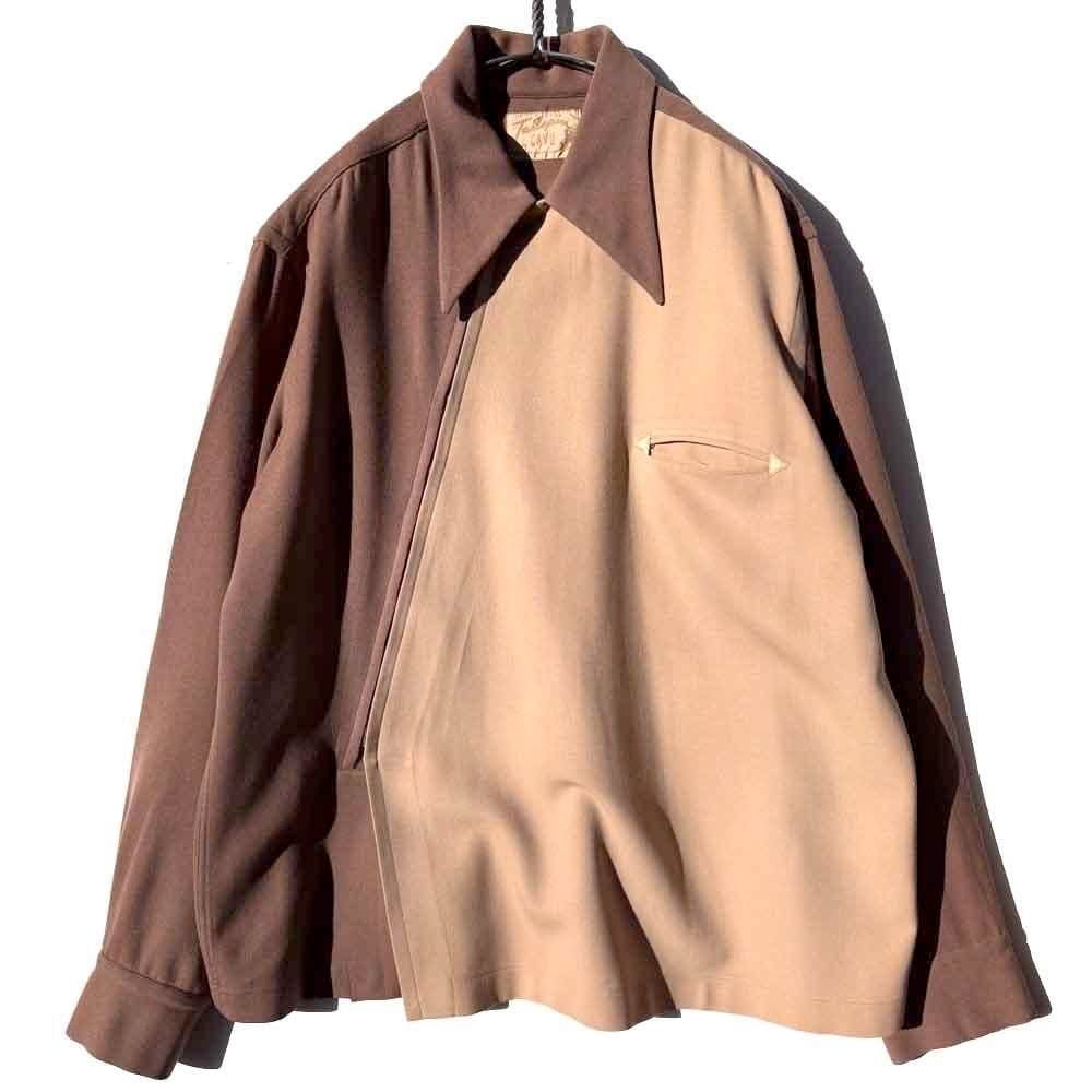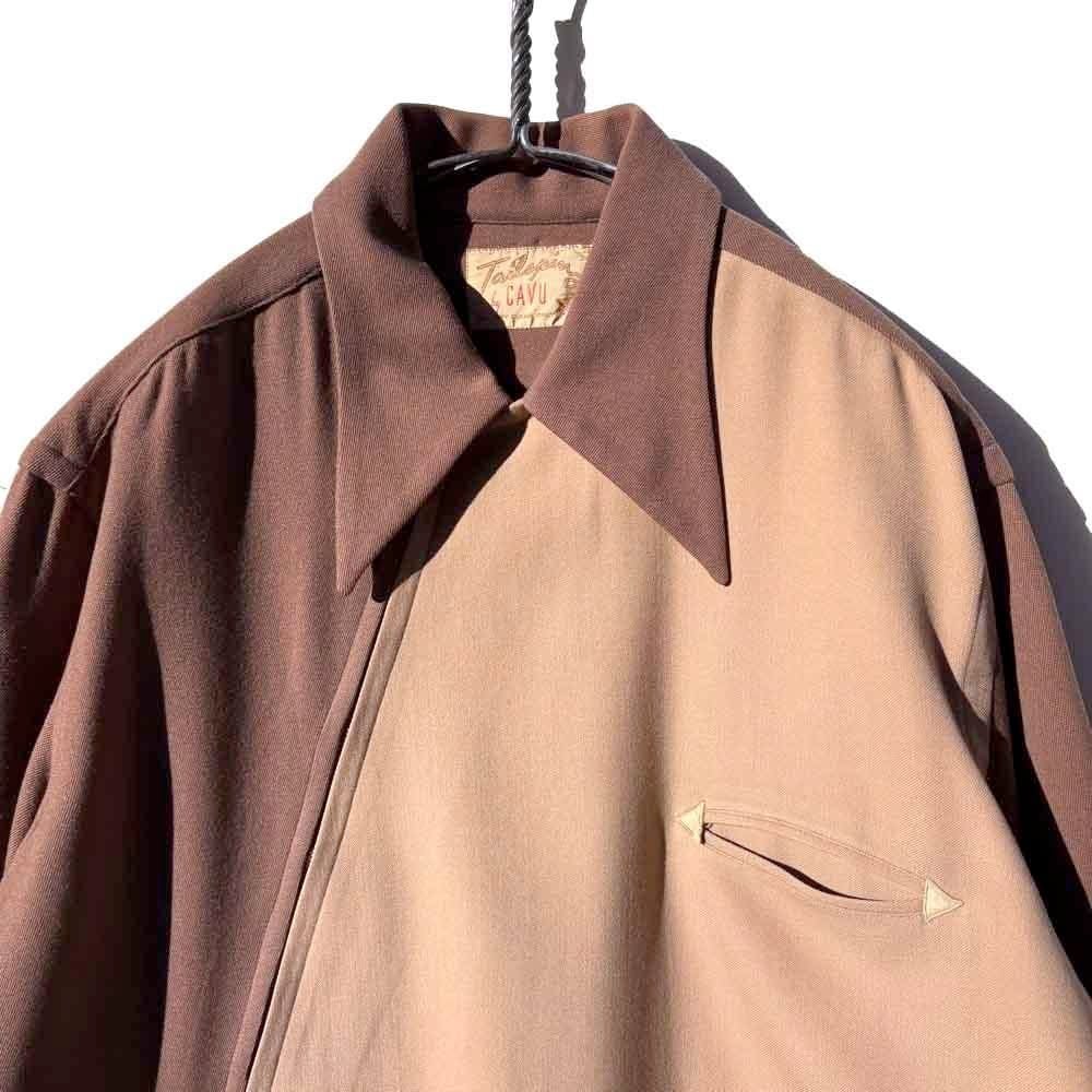 This is a diagonal zip wool shirt made by Tailspin by CAVU around the 1940s.