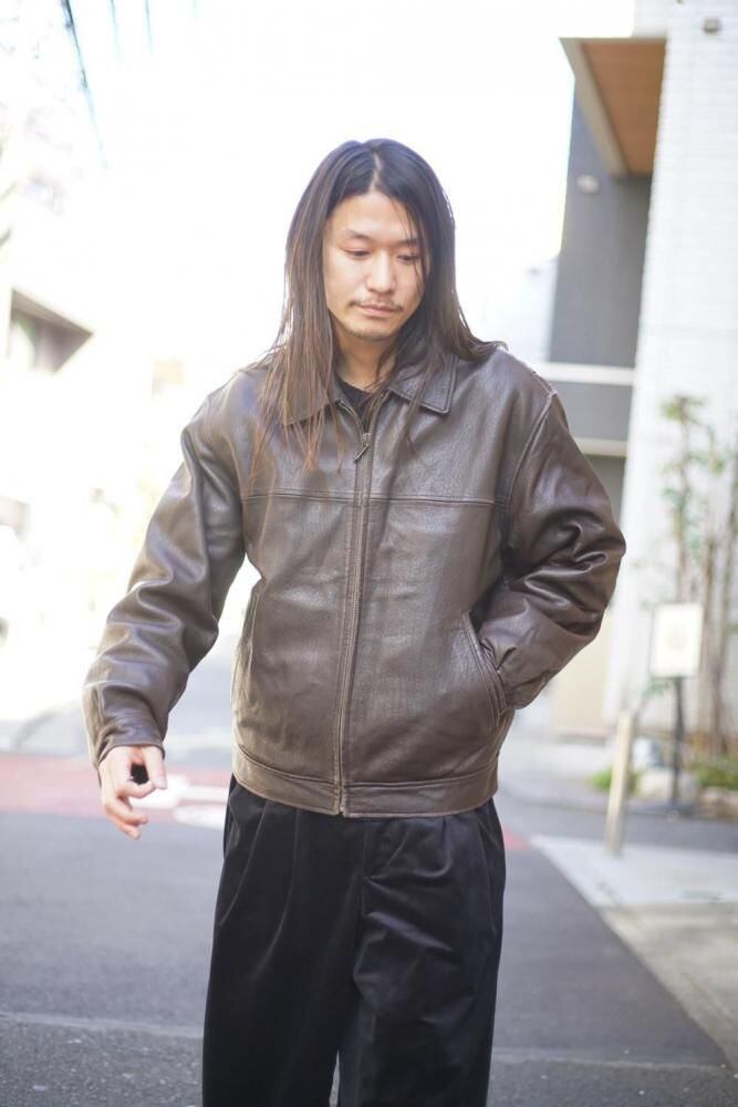 This is a zip-up leather jacket made by ROUNDTREE & YORKE around the 1990s.