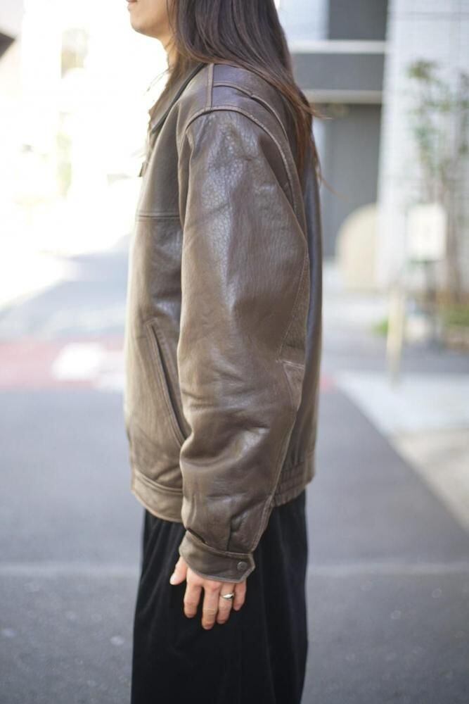 The simple, minimalist design creates a luxurious atmosphere, with a moderately loose silhouette and softly falling shoulder lines, giving it a relaxed and light impression without compromising the weightiness of the leather.
