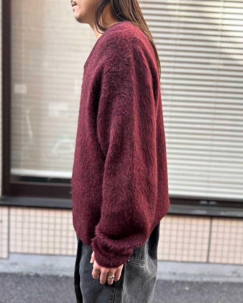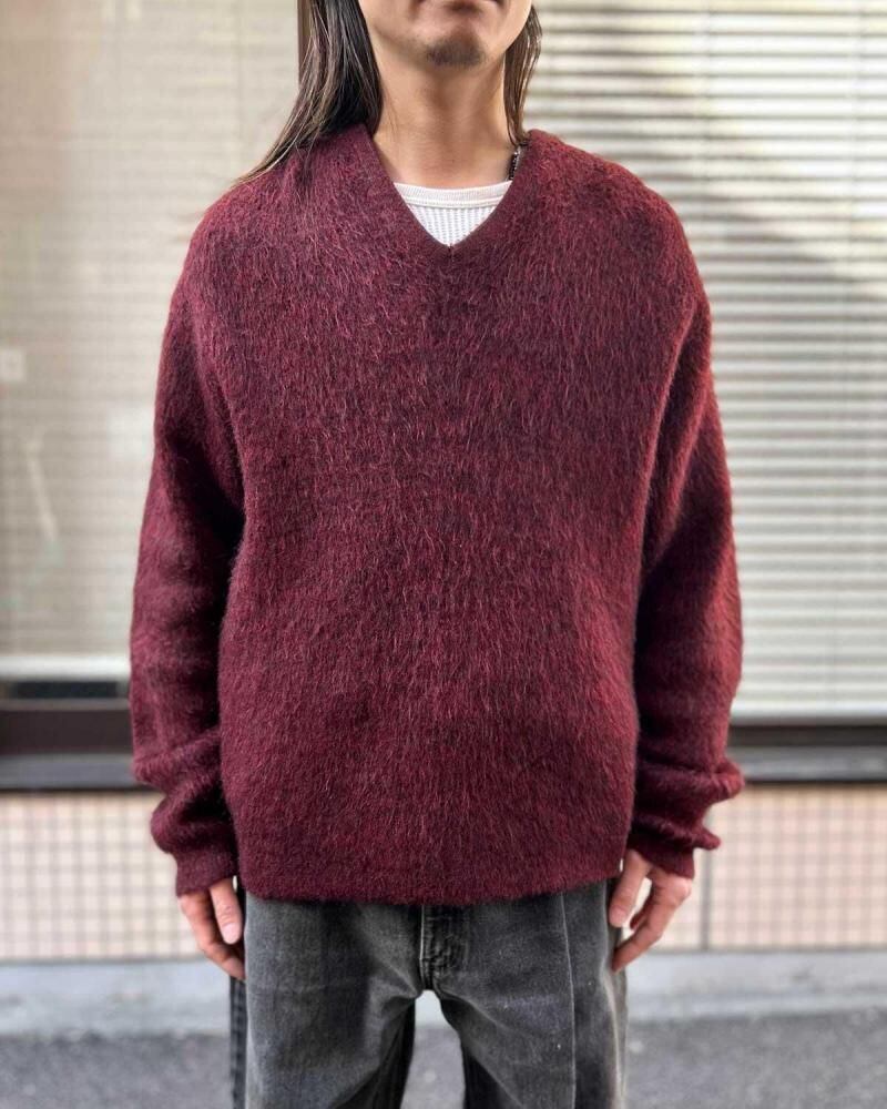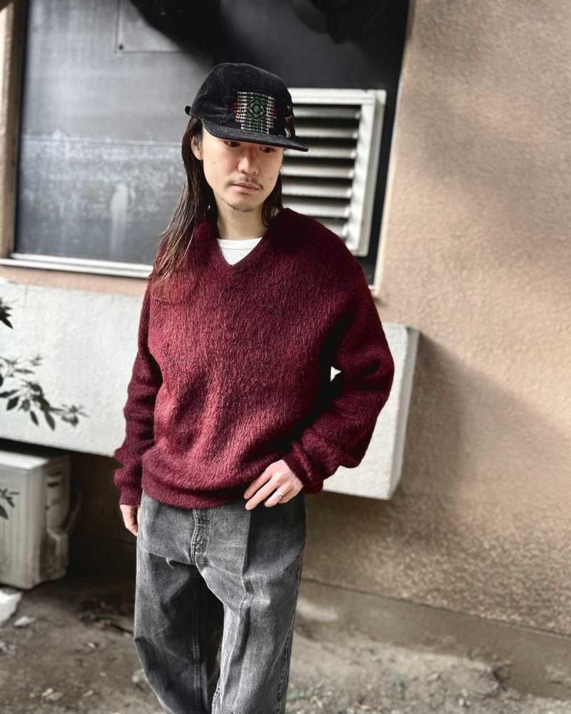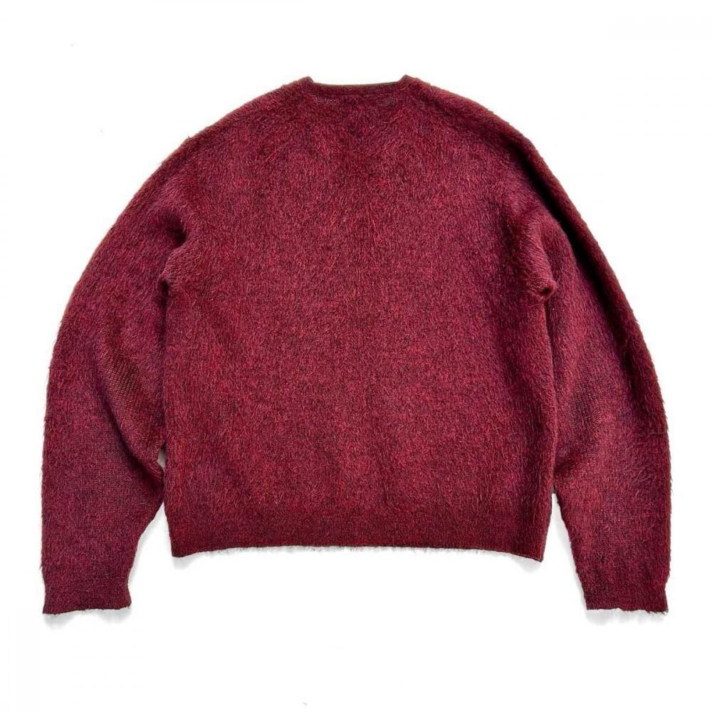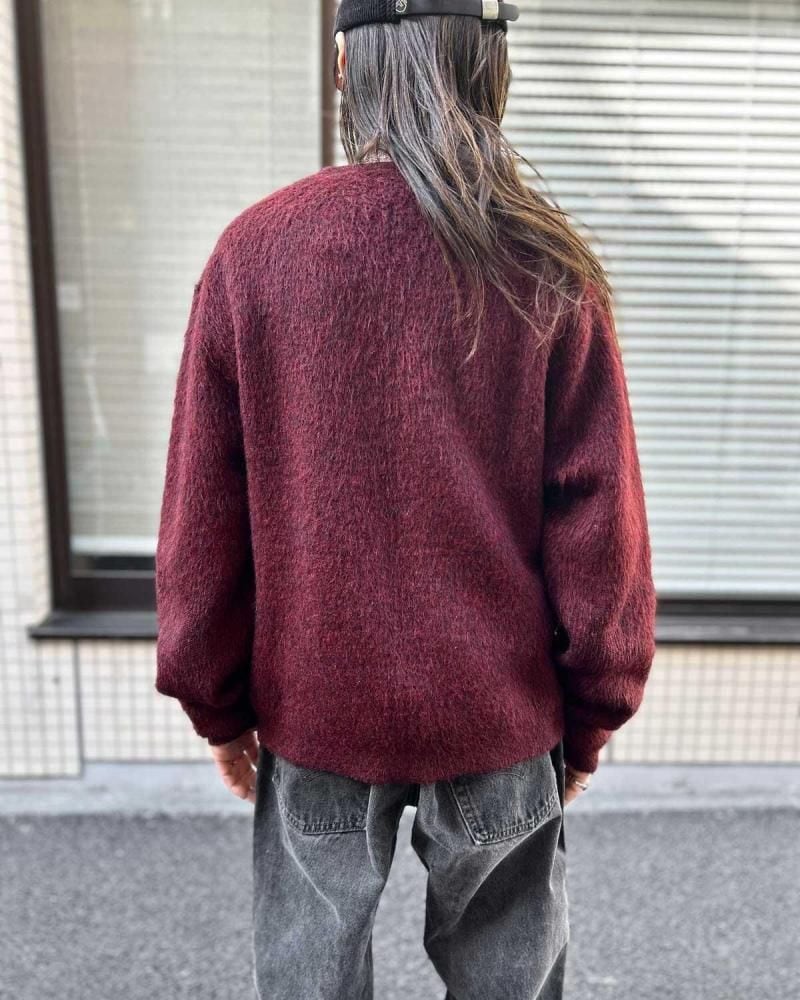 This mohair-blend pullover knit is from the 1960s. Its burgundy coloring and subdued, vintage look are a testament to its depth. Its silhouette offers a rare, relaxed feel, creating a well-balanced silhouette. The 75/25 blend of mohair provides a comfortable, comfortable feel, though this one varies depending on the mohair. As this is an old item, there may be occasional signs of aging. Please review the photos and understand the unique characteristics of vintage items before purchasing.